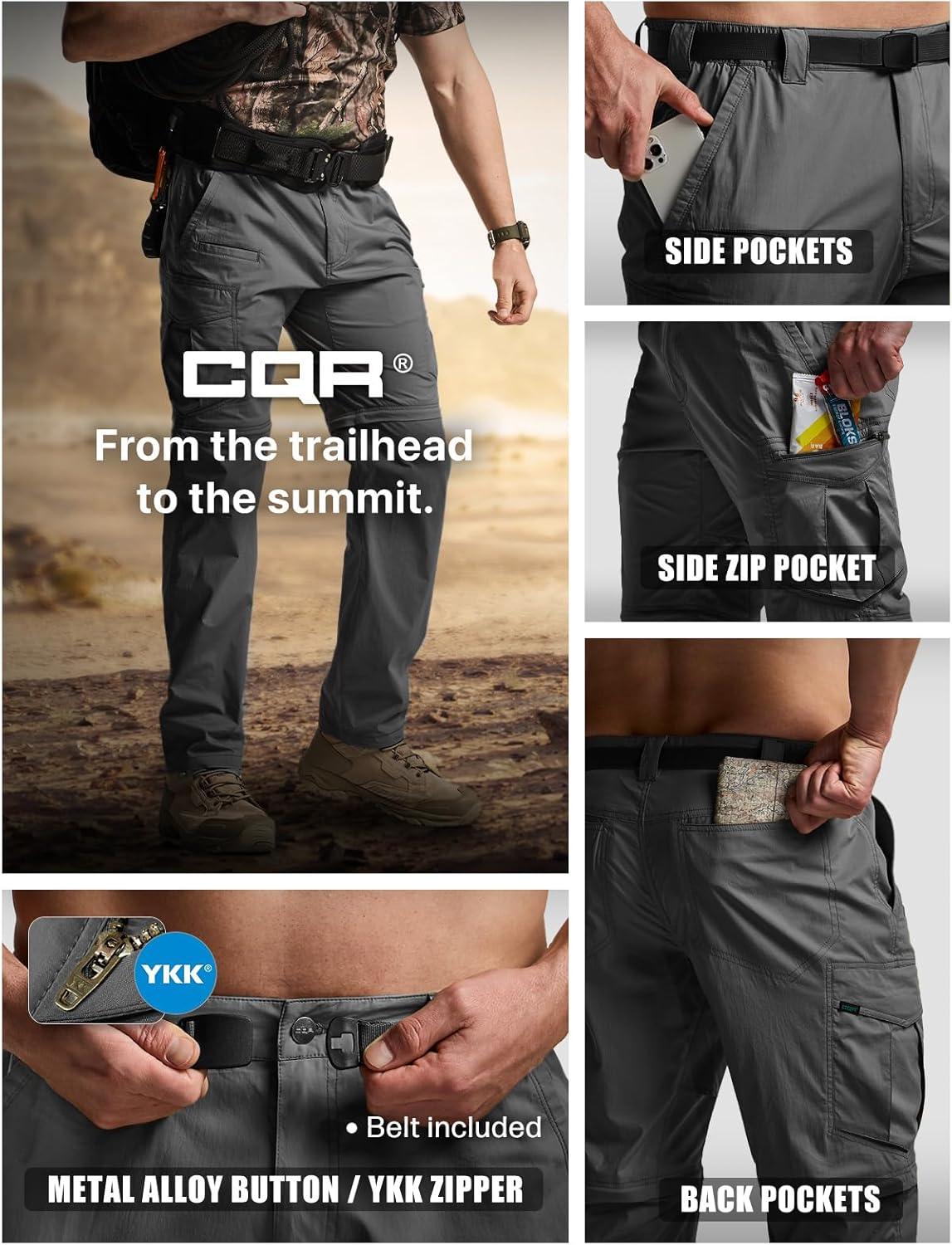 CQR Men’s Convertible Cargo Tactical Pants, Water Resistant Outdoor Hiking Pants, Zip Off Lightweight Stretch Work Pants(Runyon Cargo W/Belt Charcoal)