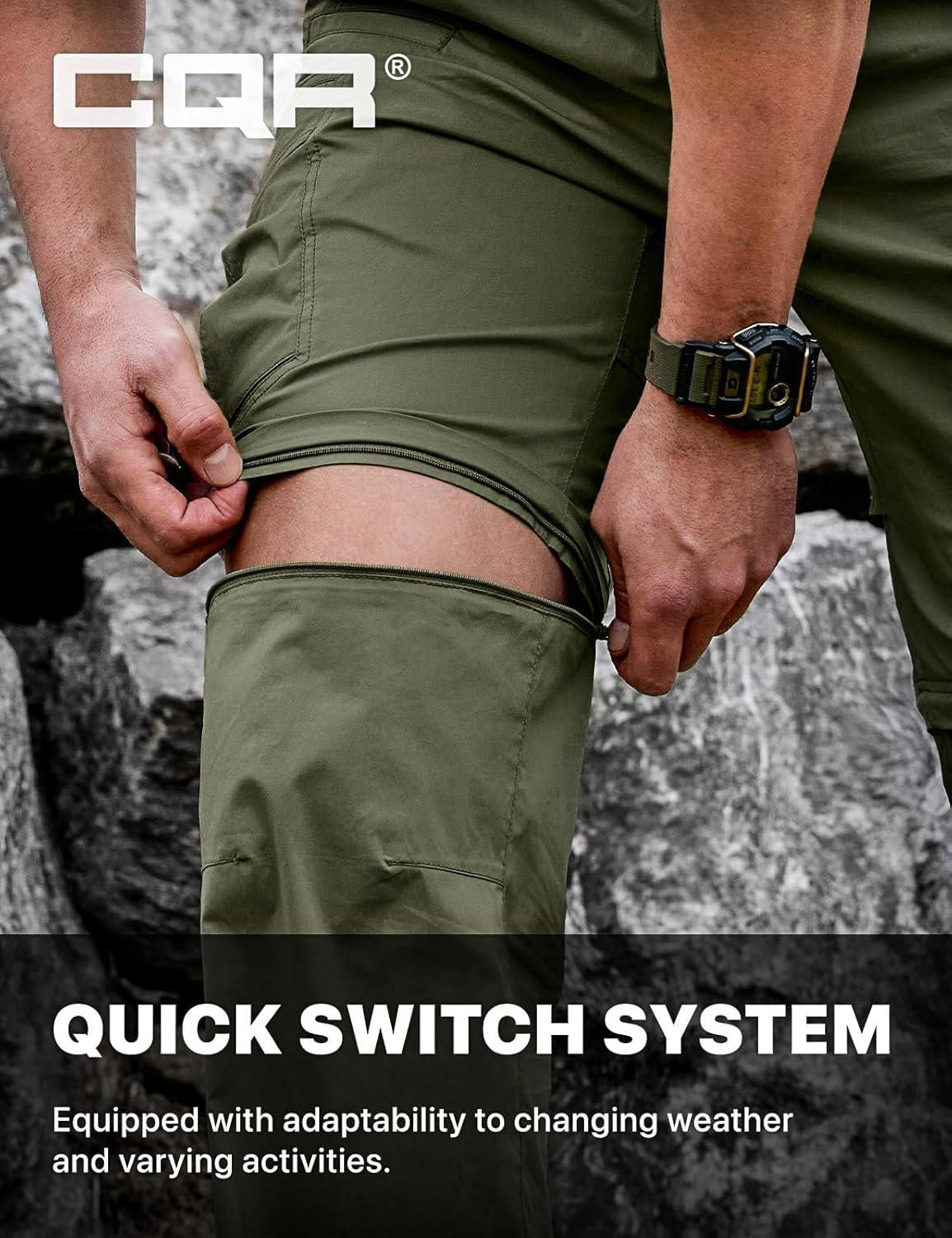 CQR Men’s Convertible Cargo Tactical Pants, Water Resistant Outdoor Hiking Pants, Zip Off Lightweight Stretch Work Pants(Runyon Cargo W/Belt Green Kelp)