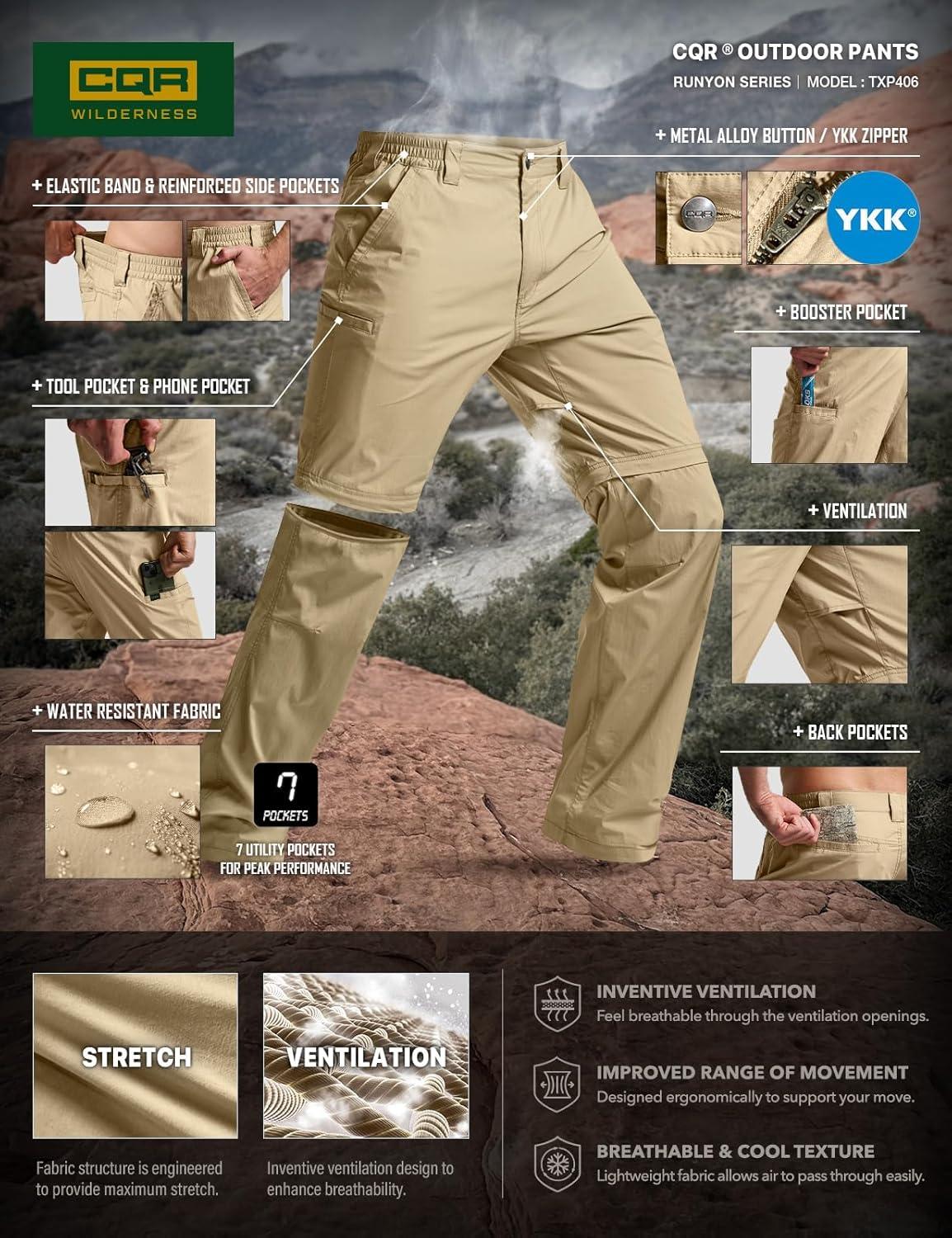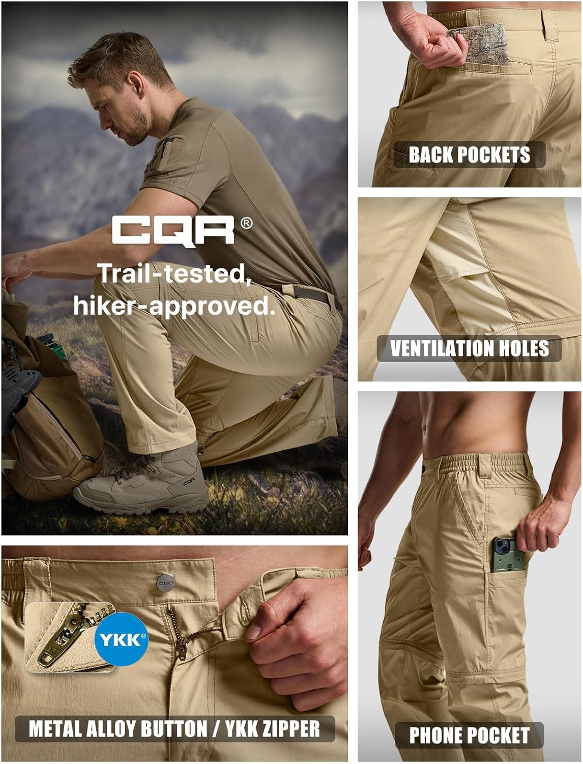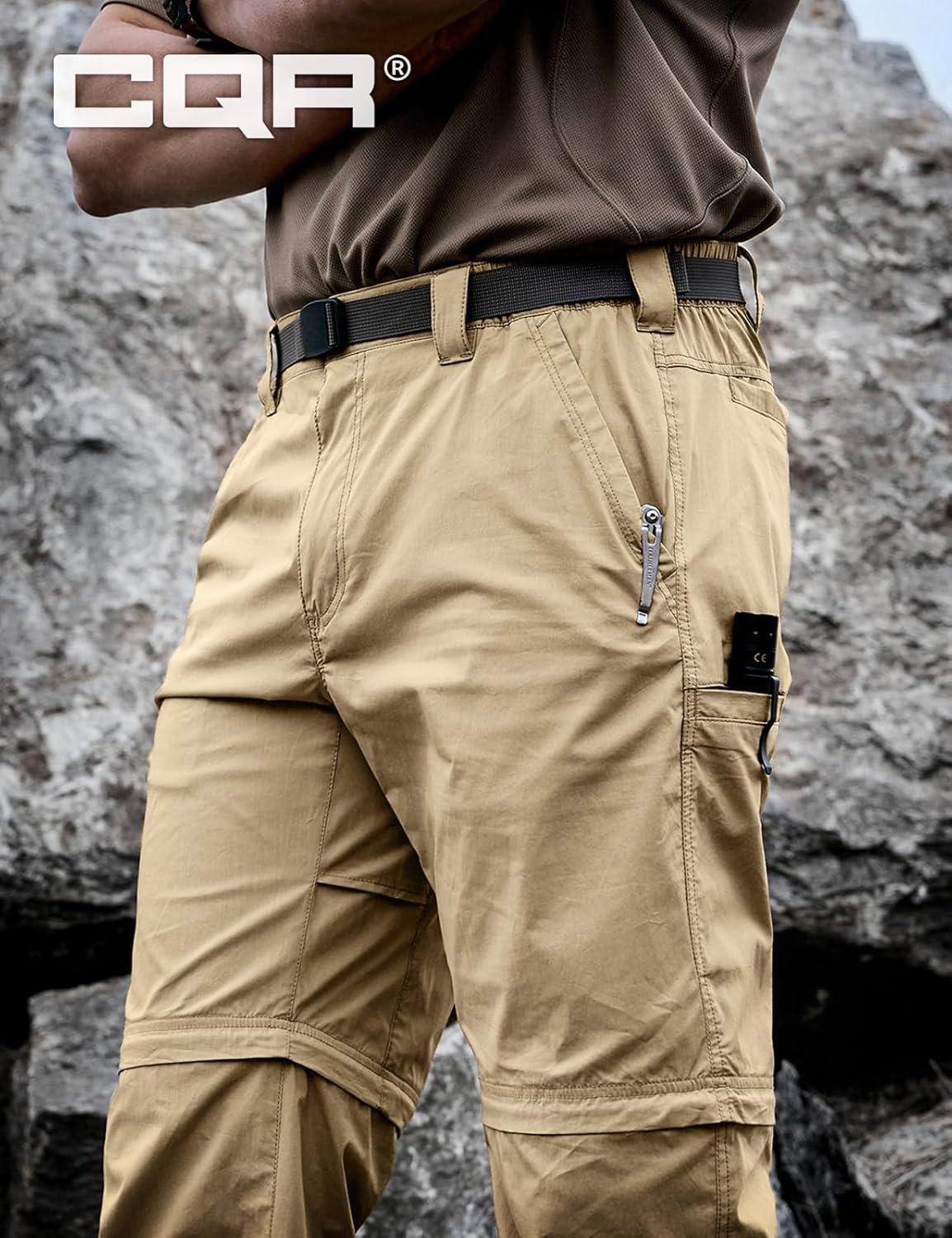 CQR Men’s Convertible Cargo Tactical Pants, Water Resistant Outdoor Hiking Pants, Zip Off Lightweight Stretch Work Pants(Runyon Dune Khaki)