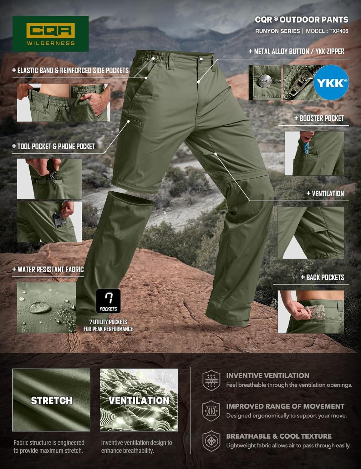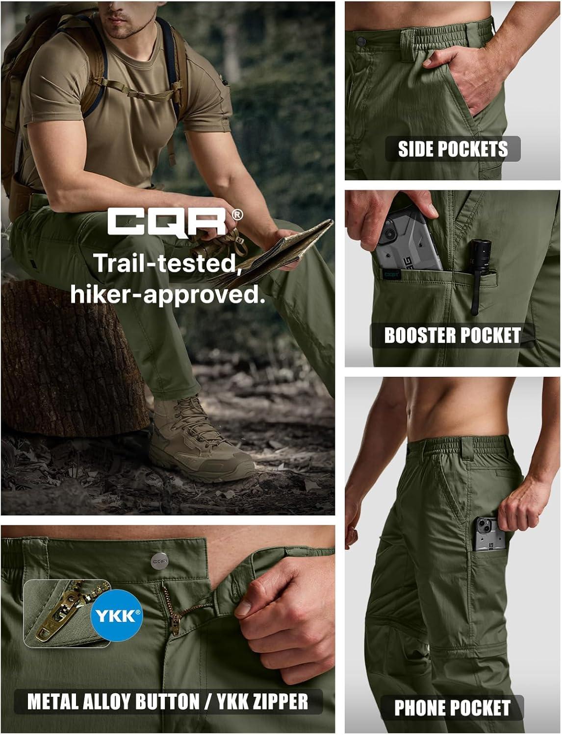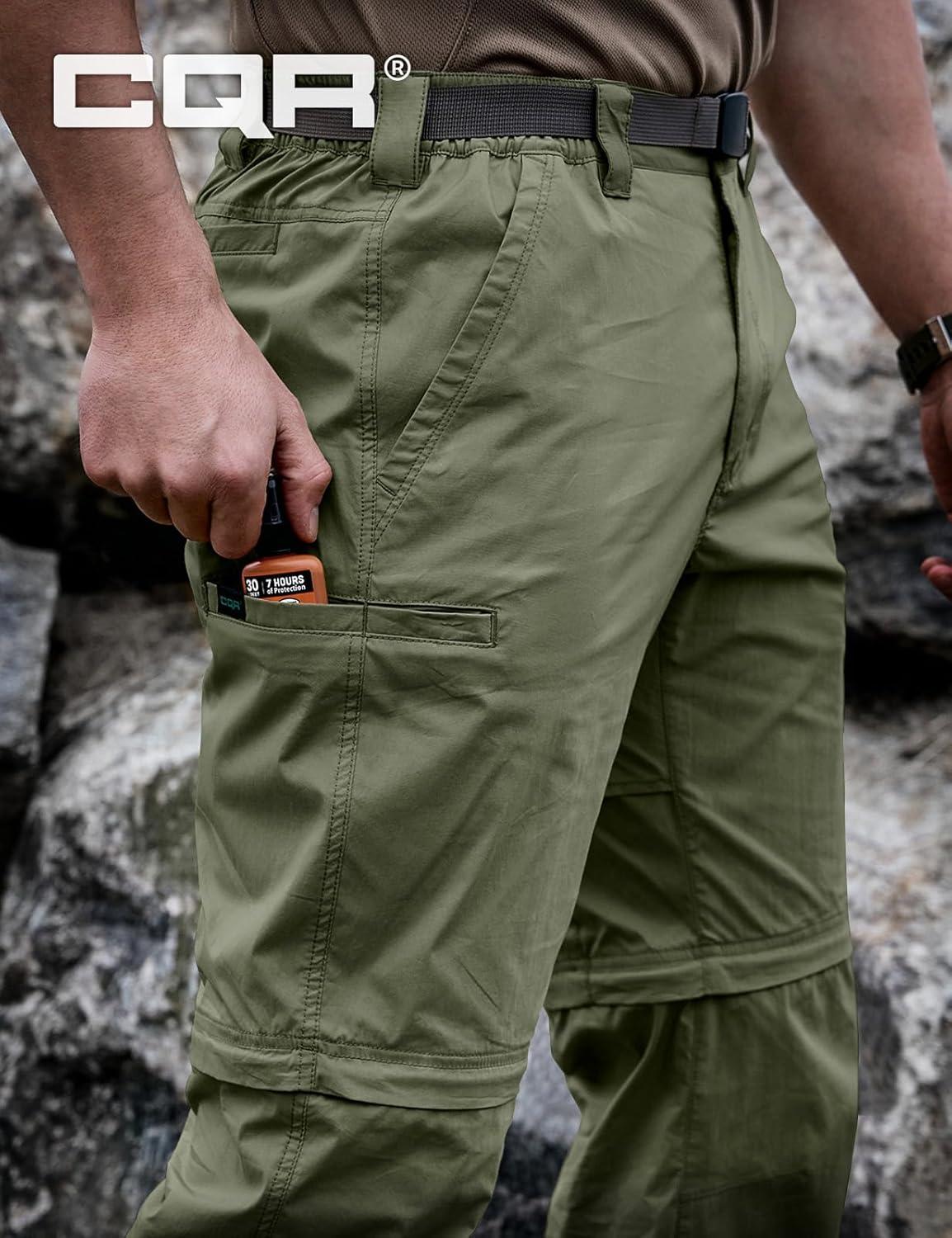 CQR Men’s Convertible Cargo Tactical Pants, Water Resistant Outdoor Hiking Pants, Zip Off Lightweight Stretch Work Pants(Runyon Green Kelp)