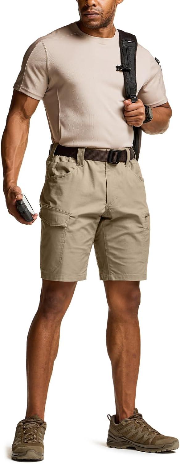 CQR Men’s Flex Casual Cargo Shorts, Lightweight Water Resistant Golf Shorts, Stretch Tactical Work Shorts with Multi-Pocket(Sentinel Alamo Khaki)