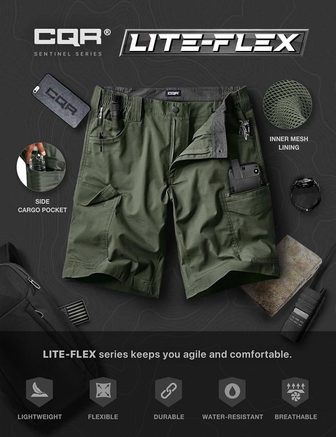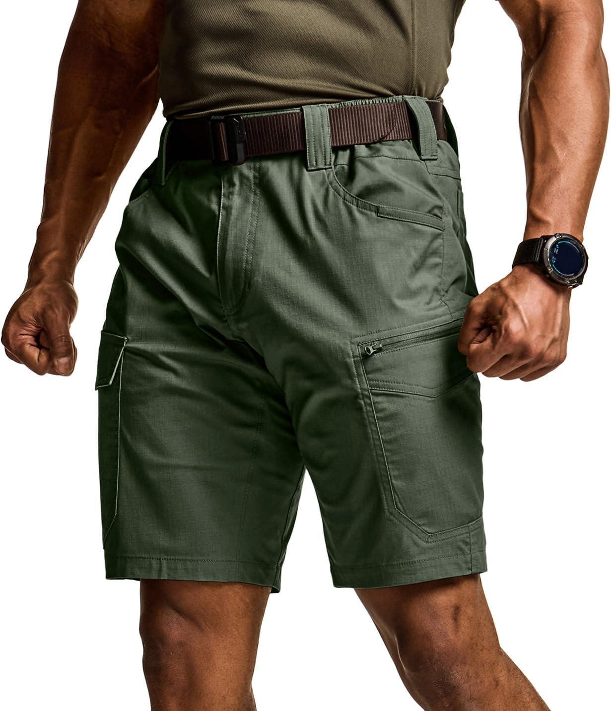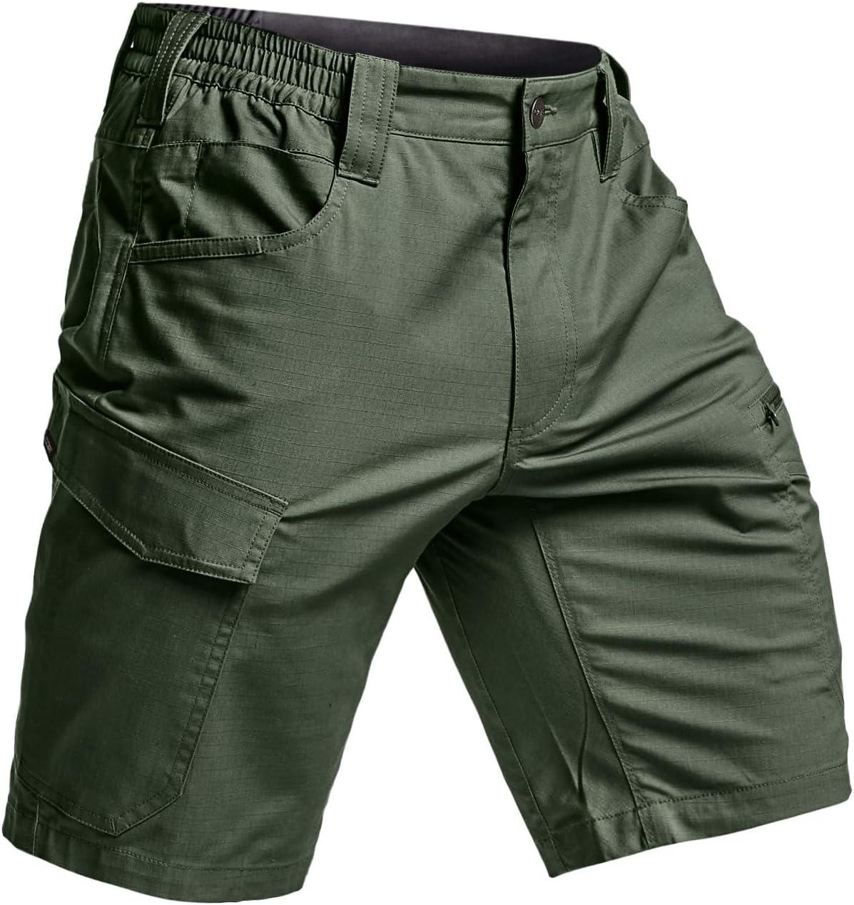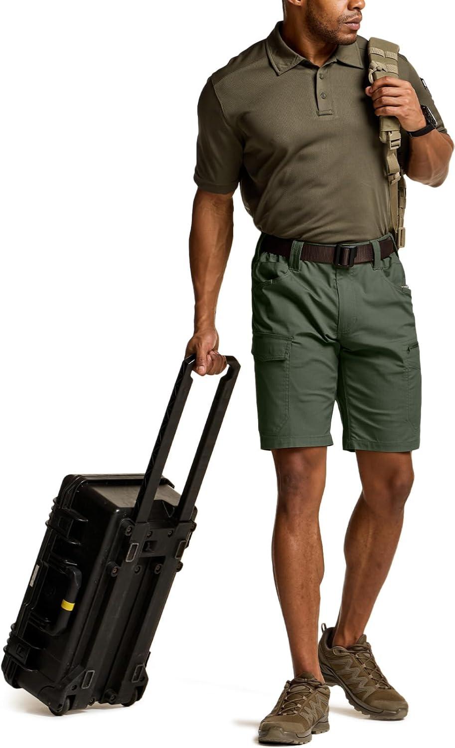 CQR Men’s Flex Casual Cargo Shorts, Lightweight Water Resistant Golf Shorts, Stretch Tactical Work Shorts with Multi-Pocket(Sentinel Green Kelp)