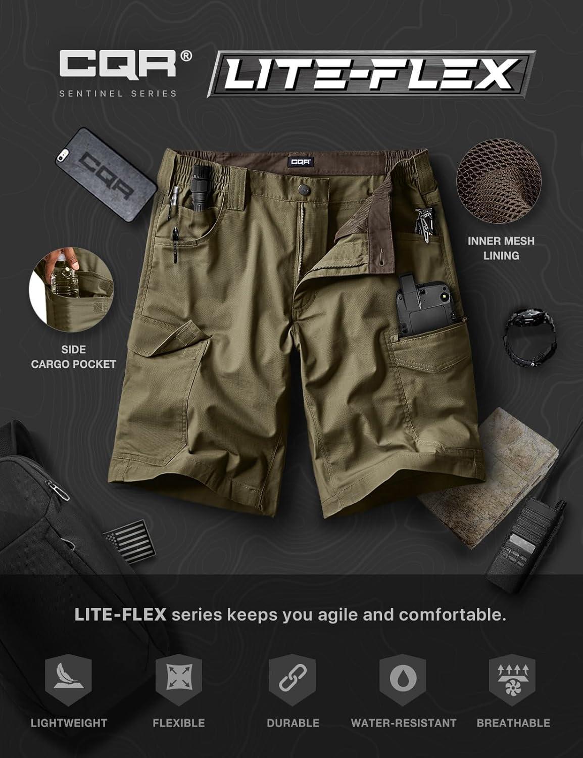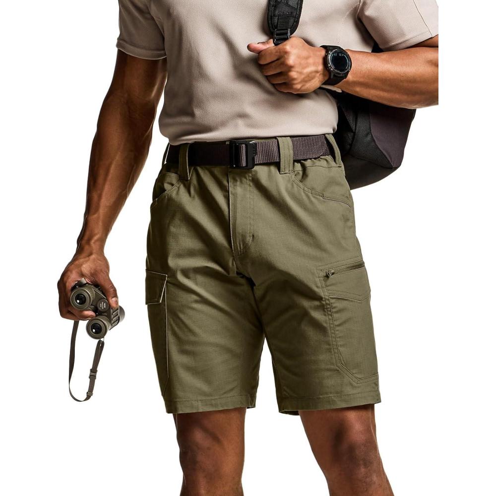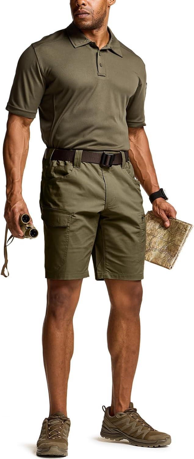 CQR Men’s Flex Casual Cargo Shorts, Lightweight Water Resistant Golf Shorts, Stretch Tactical Work Shorts with Multi-Pocket(Sentinel Soil Green)