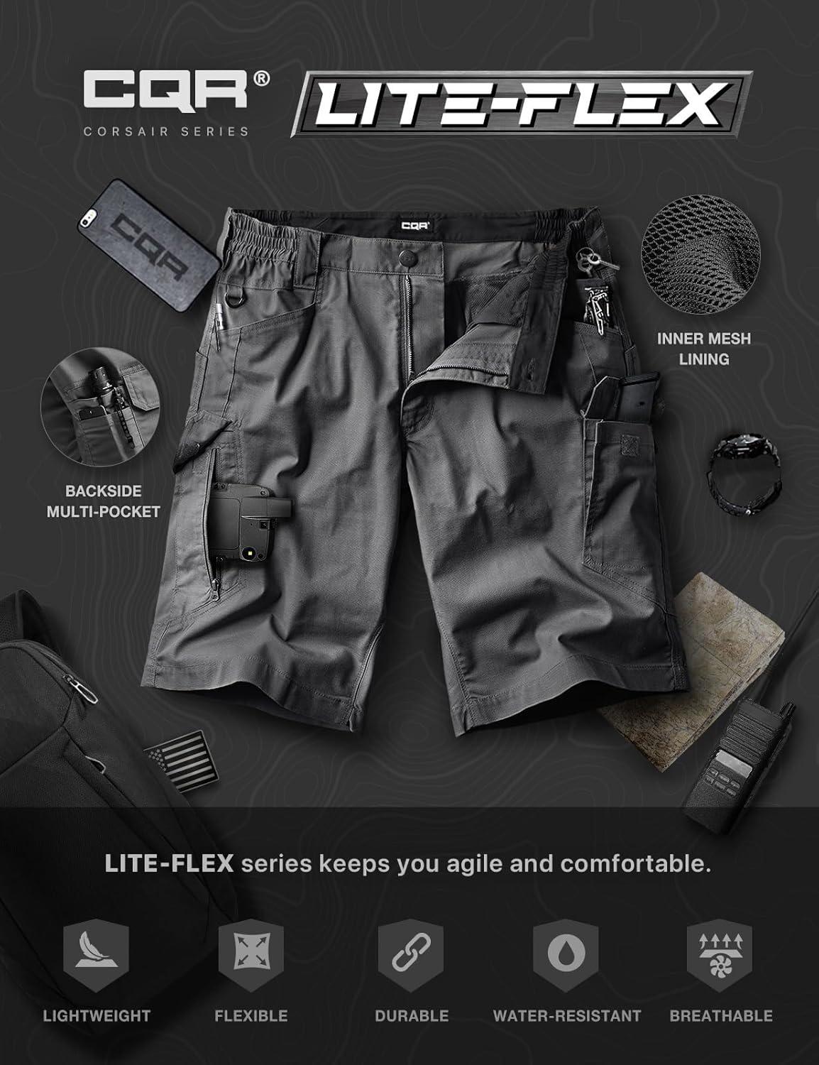 CQR Men’s Flex Casual Cargo Shorts, Lightweight Water Resistant Golf Shorts, Stretch Tactical Work Shorts with Multi-Pocket(Tac Charcoal)