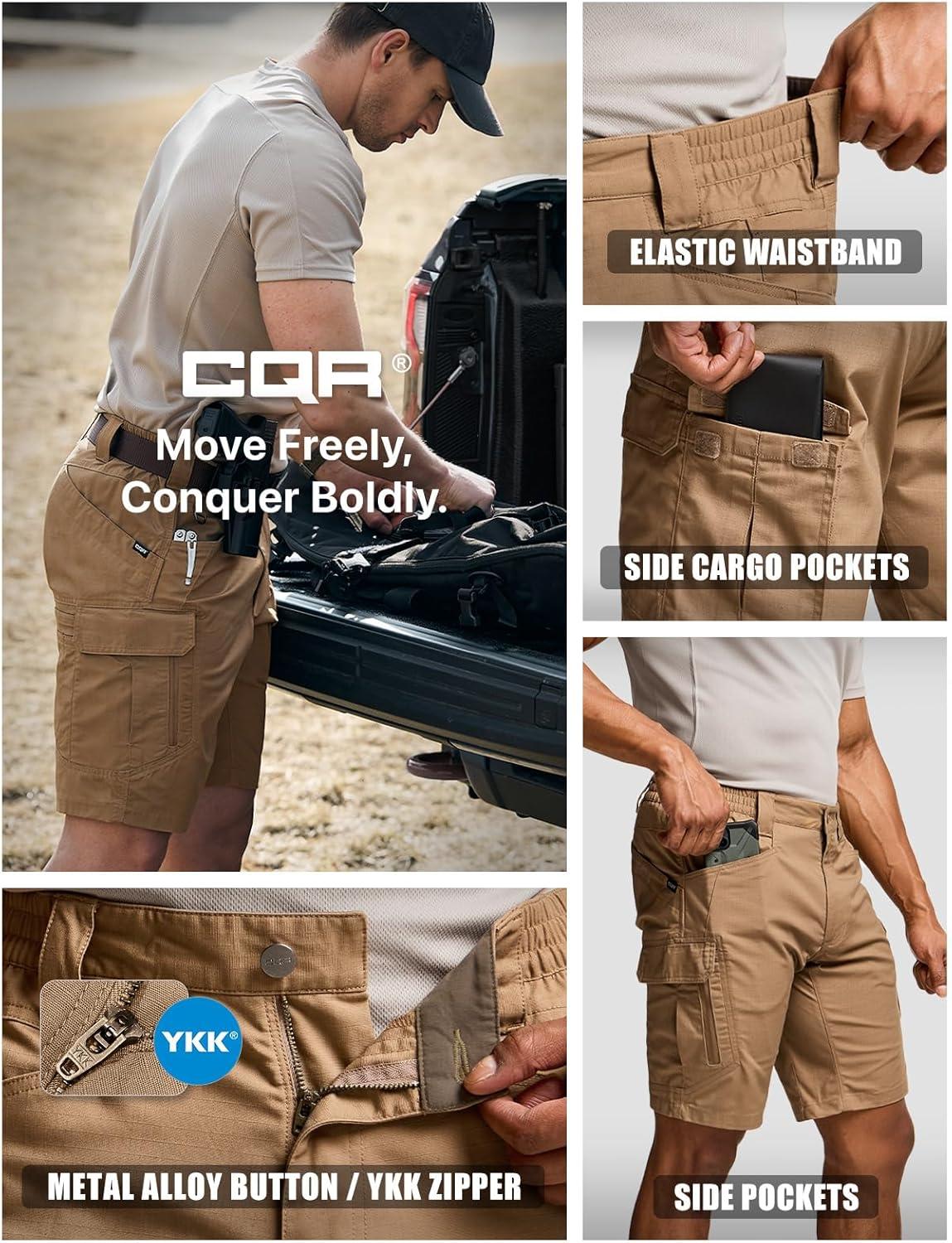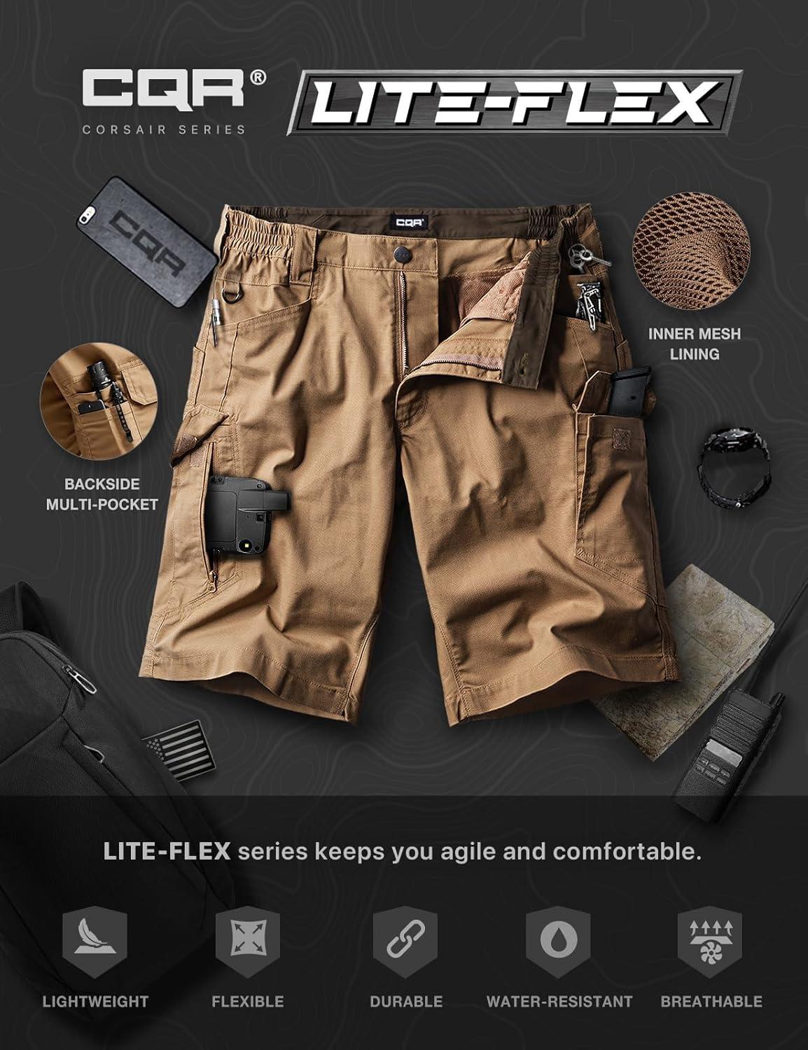 CQR Men’s Flex Casual Cargo Shorts, Lightweight Water Resistant Golf Shorts, Stretch Tactical Work Shorts with Multi-Pocket(Tac Cougar)