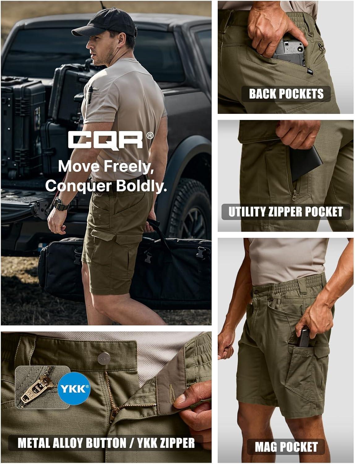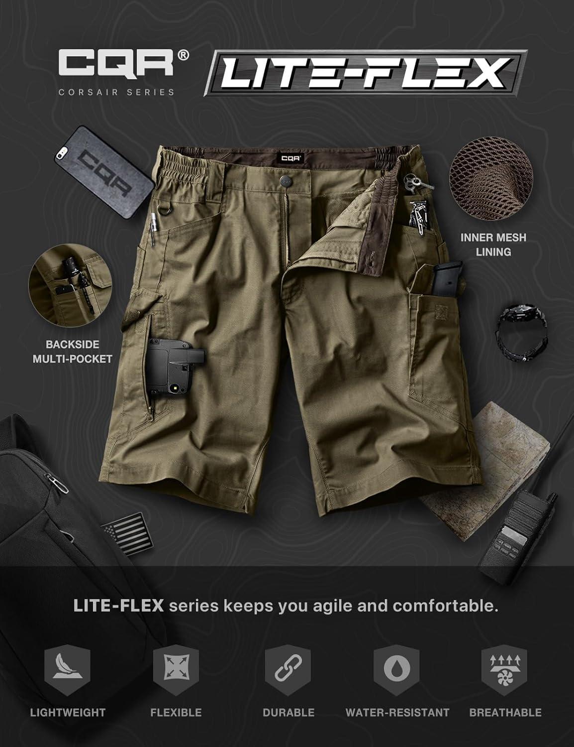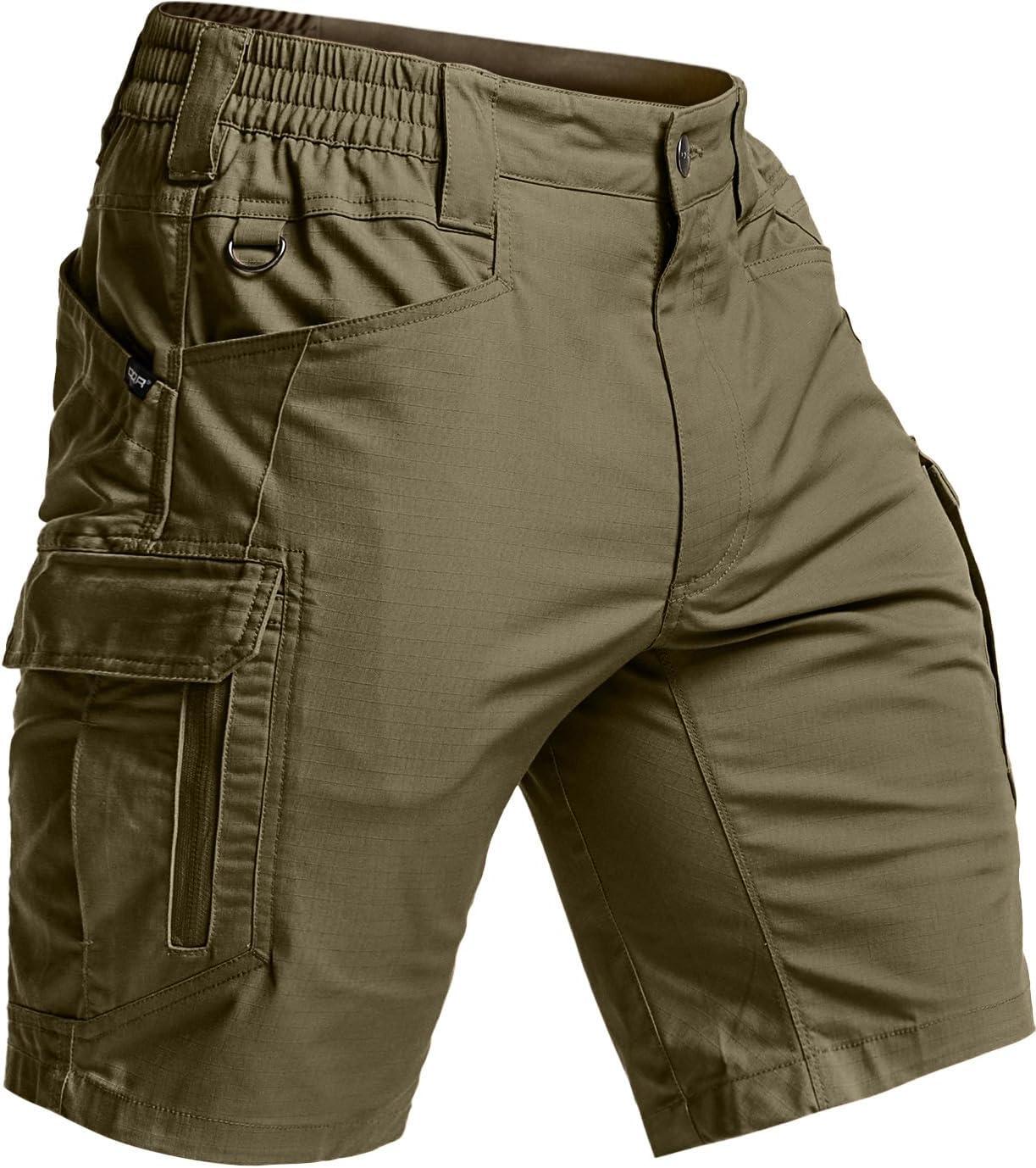 CQR Men’s Flex Casual Cargo Shorts, Lightweight Water Resistant Golf Shorts, Stretch Tactical Work Shorts with Multi-Pocket(Tac Soil Green)