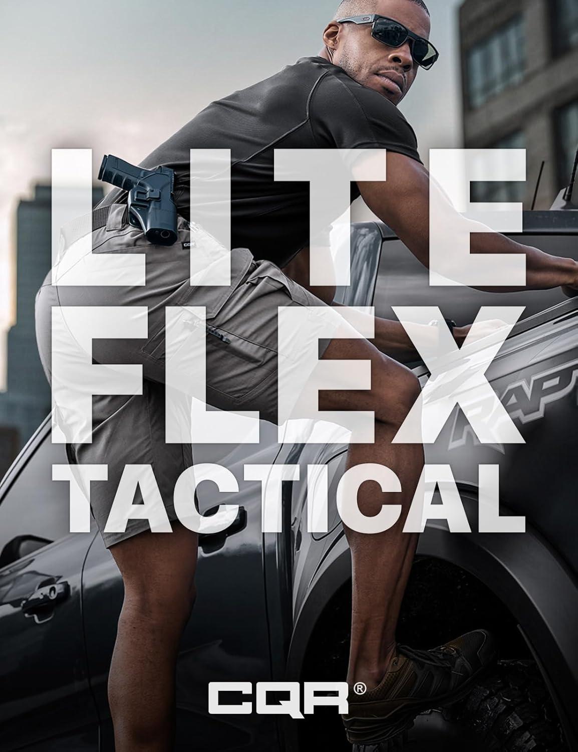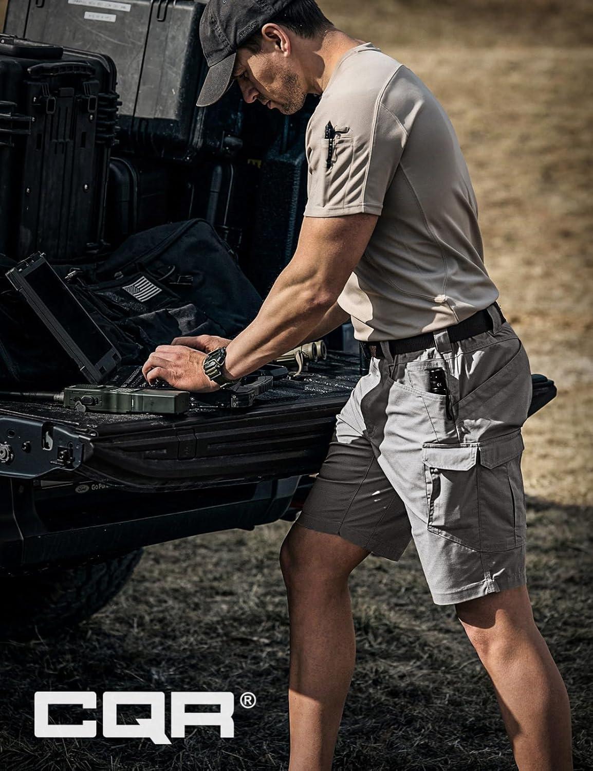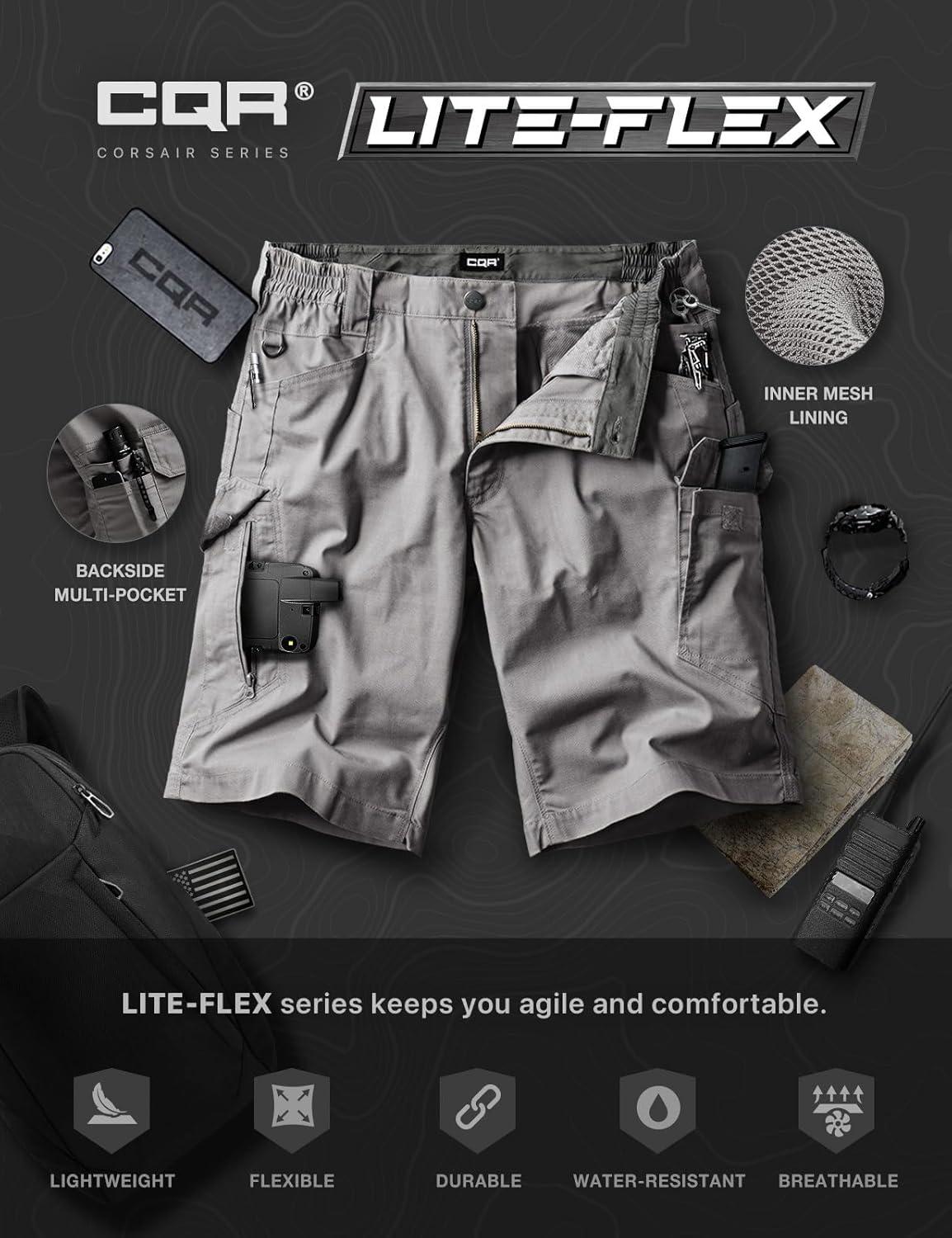 CQR Men’s Flex Casual Cargo Shorts, Lightweight Water Resistant Golf Shorts, Stretch Tactical Work Shorts with Multi-Pocket(Tac Stone)