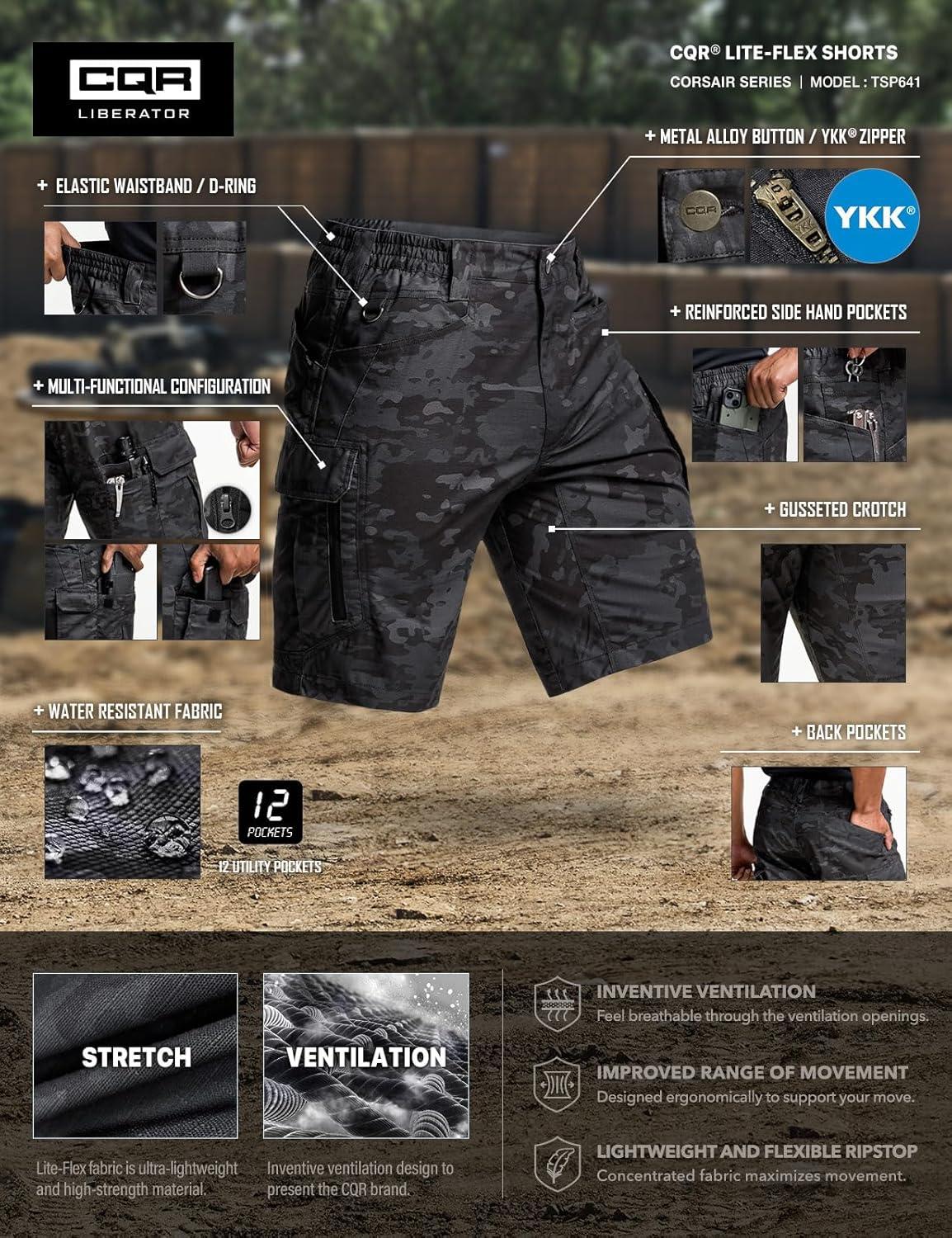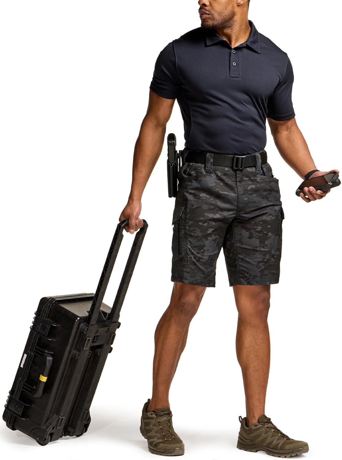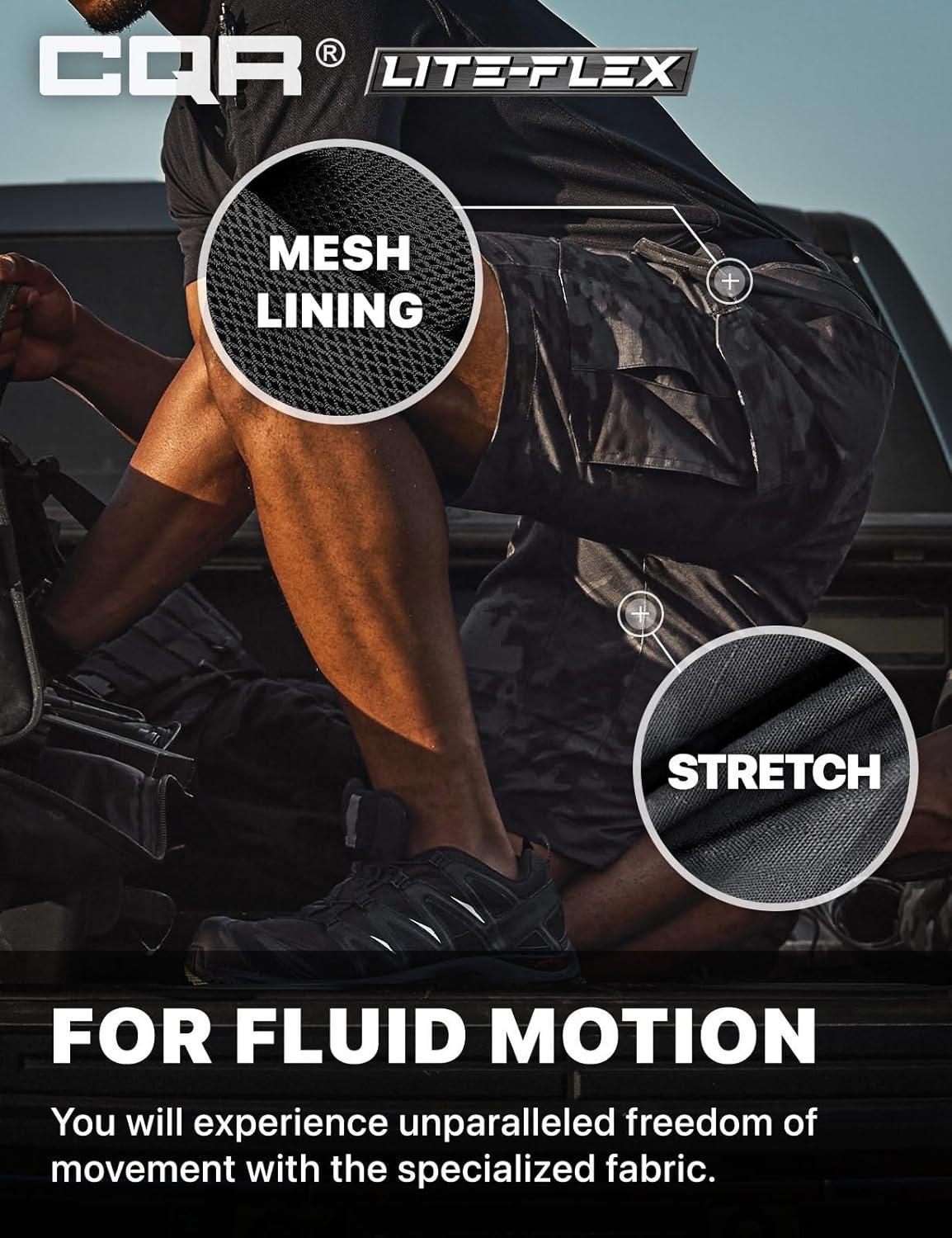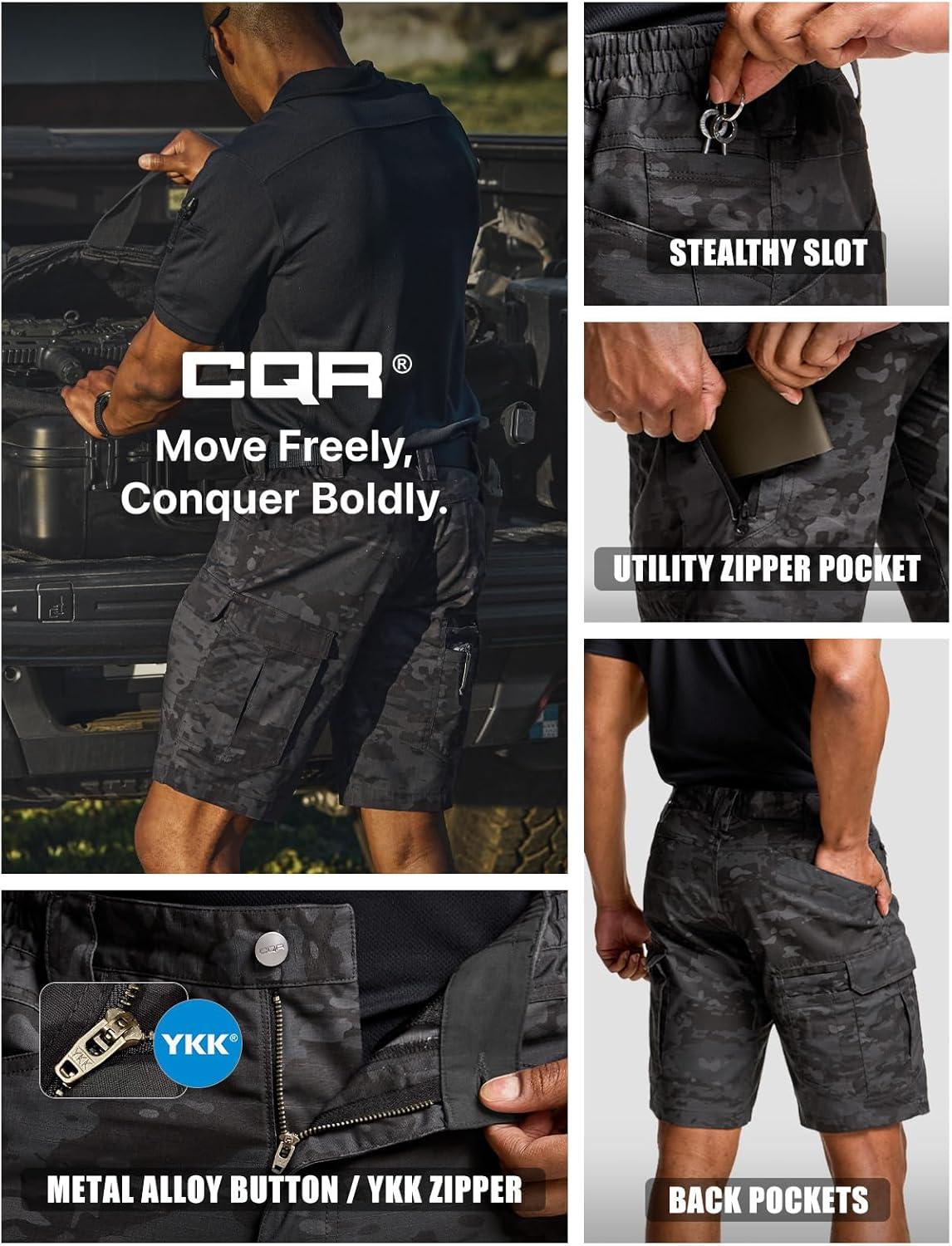 CQR Men’s Flex Casual Cargo Shorts, Lightweight Water Resistant Golf Shorts, Stretch Tactical Work Shorts with Multi-Pocket(Tac Utility Camo Black)