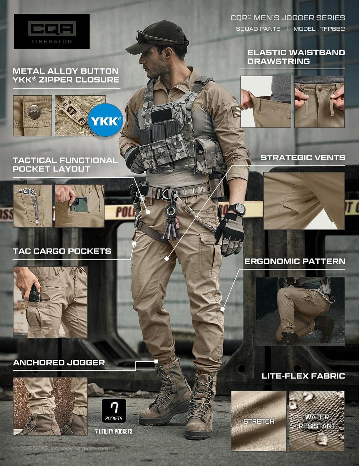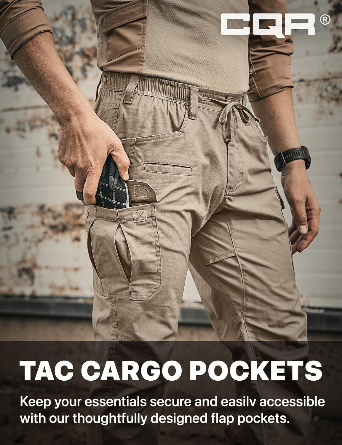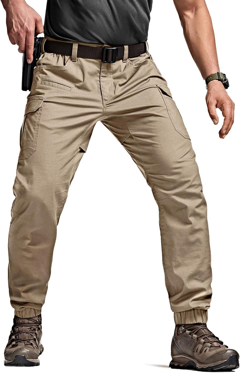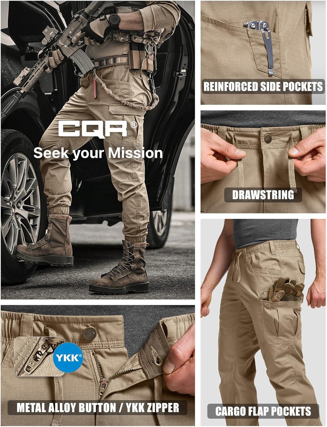 CQR Men’s Flex Lightweight Joggers, Elastic Waist Drawstring Casual Pants, Tapered Fit Water Resistant Outdoor Cargo Pants(Squad Alamo Khaki)
