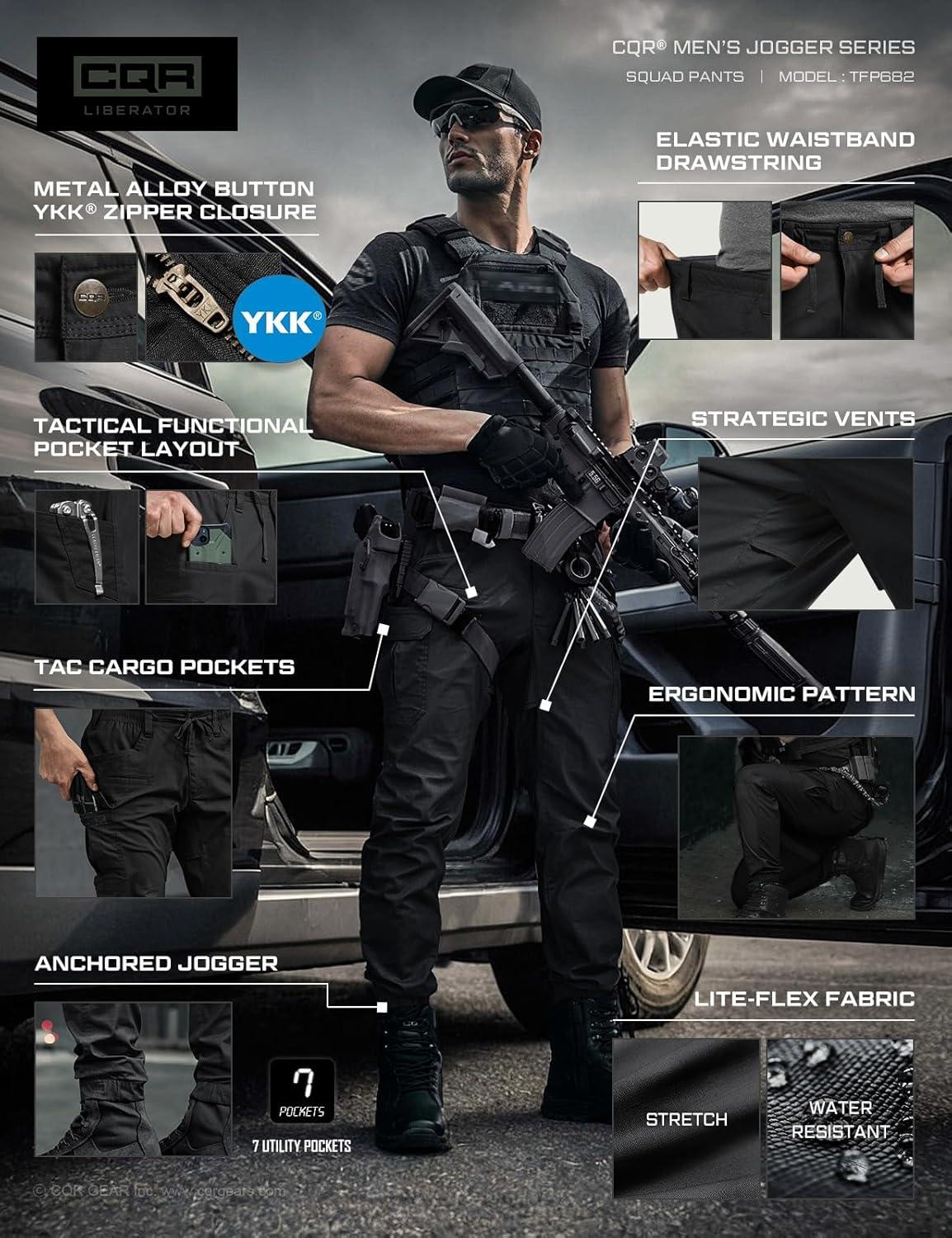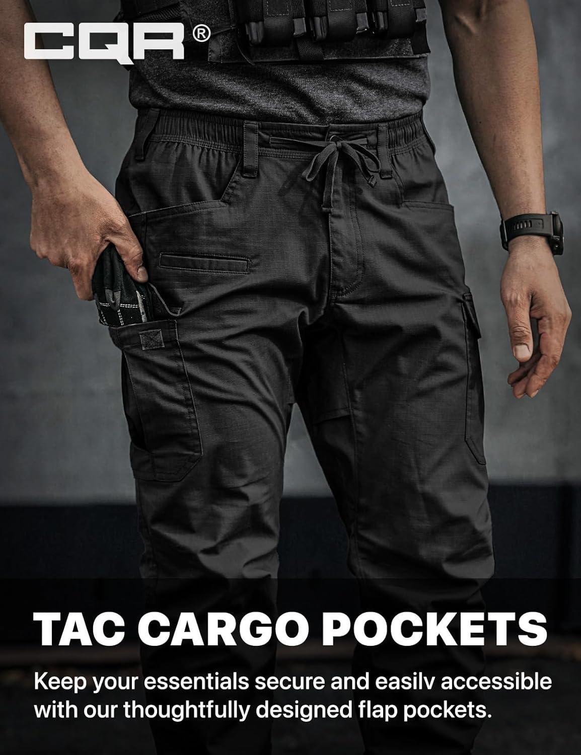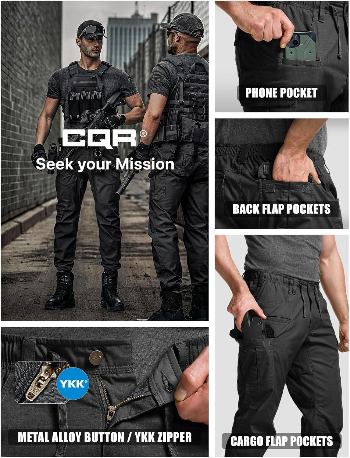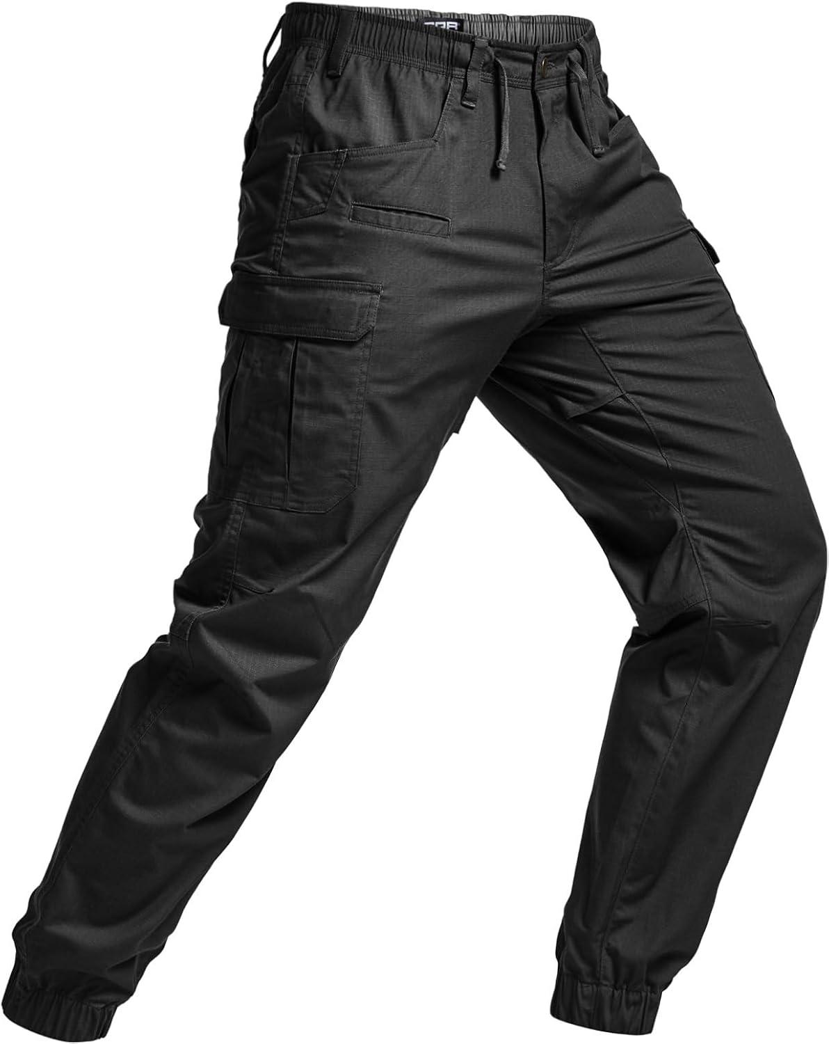 CQR Men’s Flex Lightweight Joggers, Elastic Waist Drawstring Casual Pants, Tapered Fit Water Resistant Outdoor Cargo Pants(Squad Black)