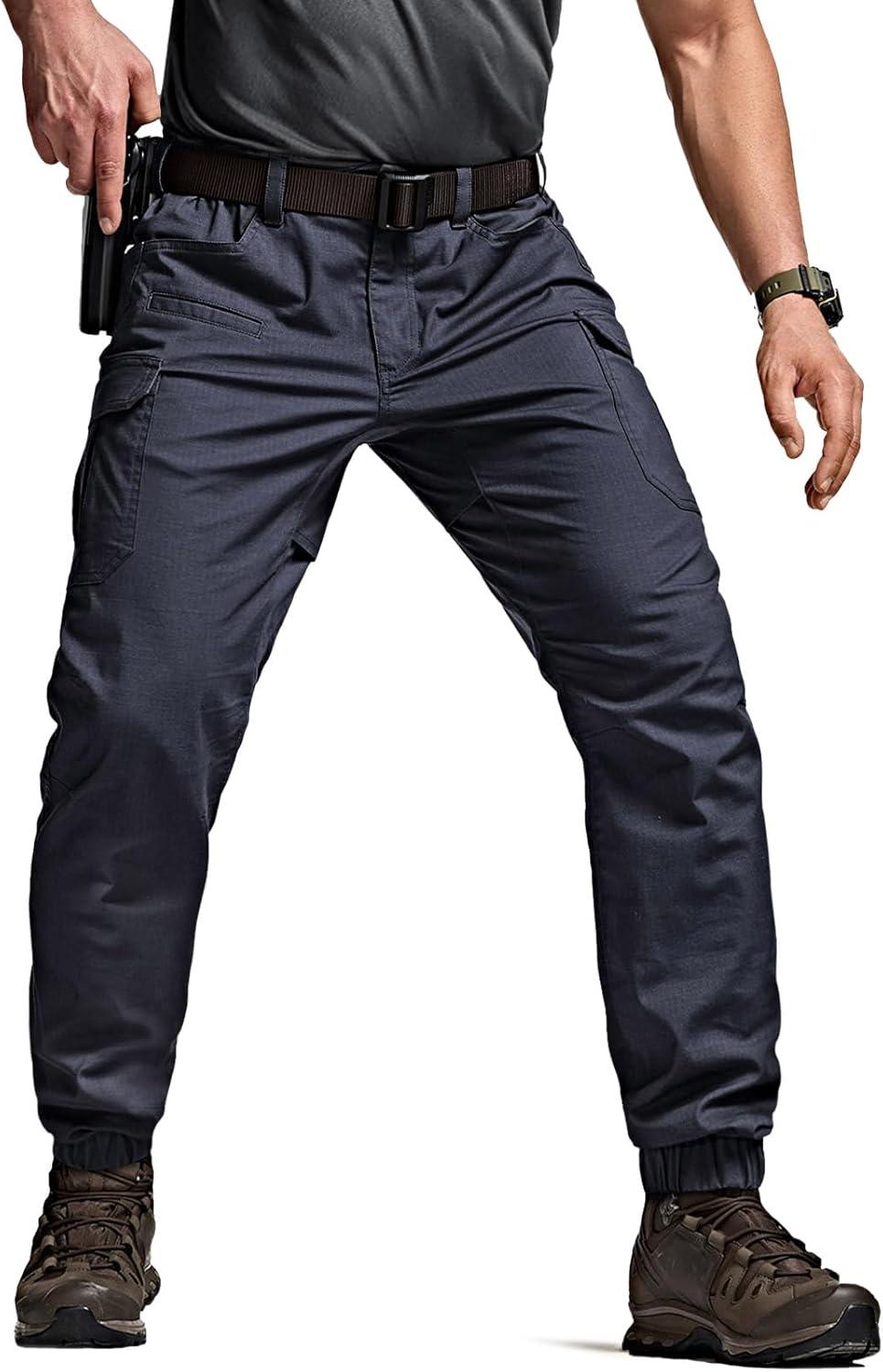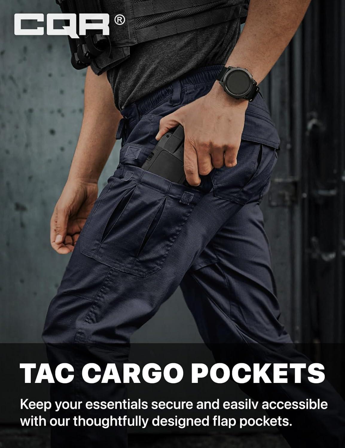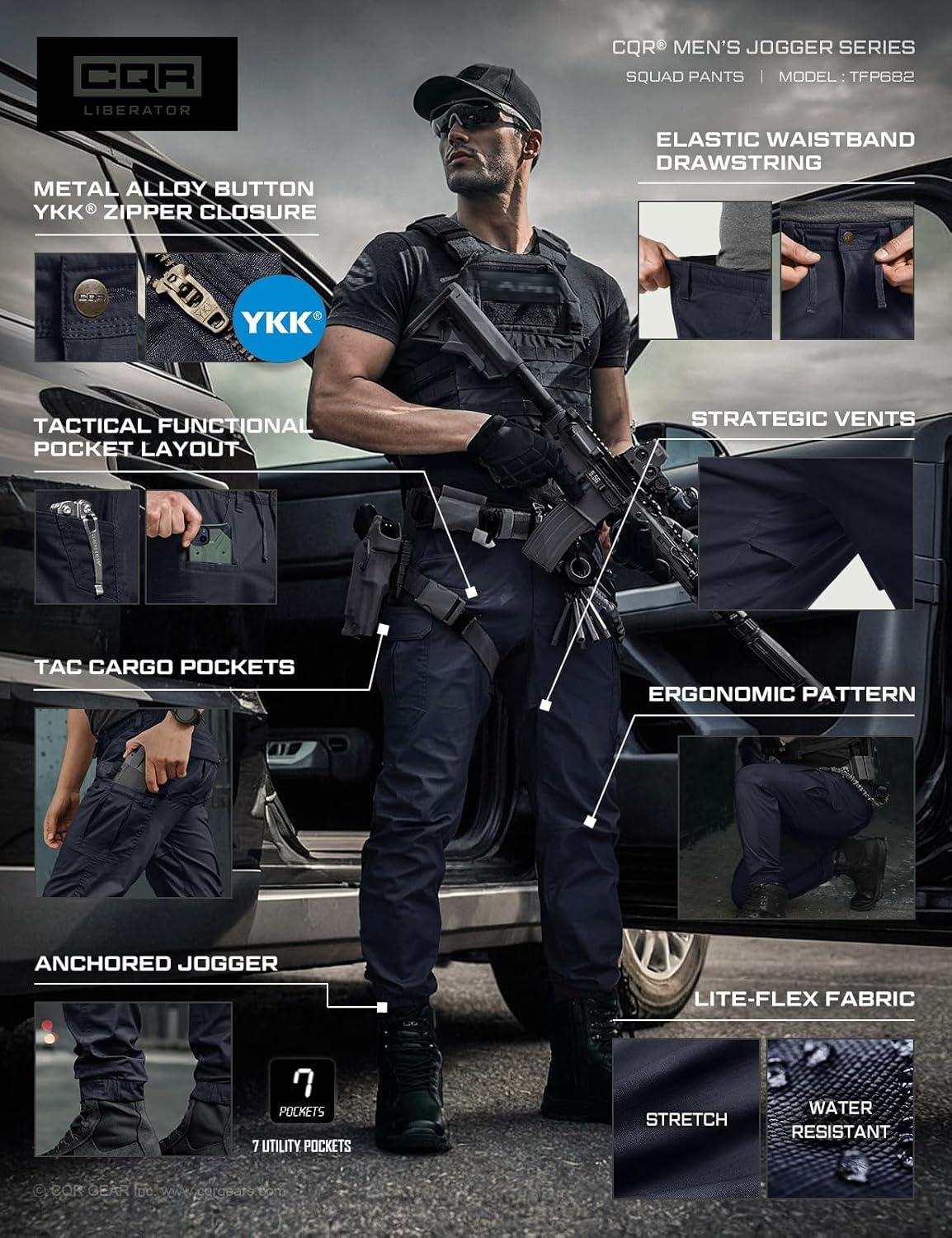 CQR Men’s Flex Lightweight Joggers, Elastic Waist Drawstring Casual Pants, Tapered Fit Water Resistant Outdoor Cargo Pants(Squad Operator Navy)
