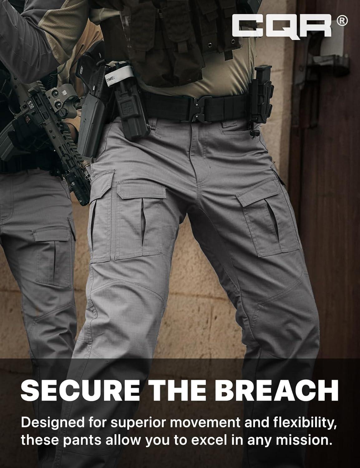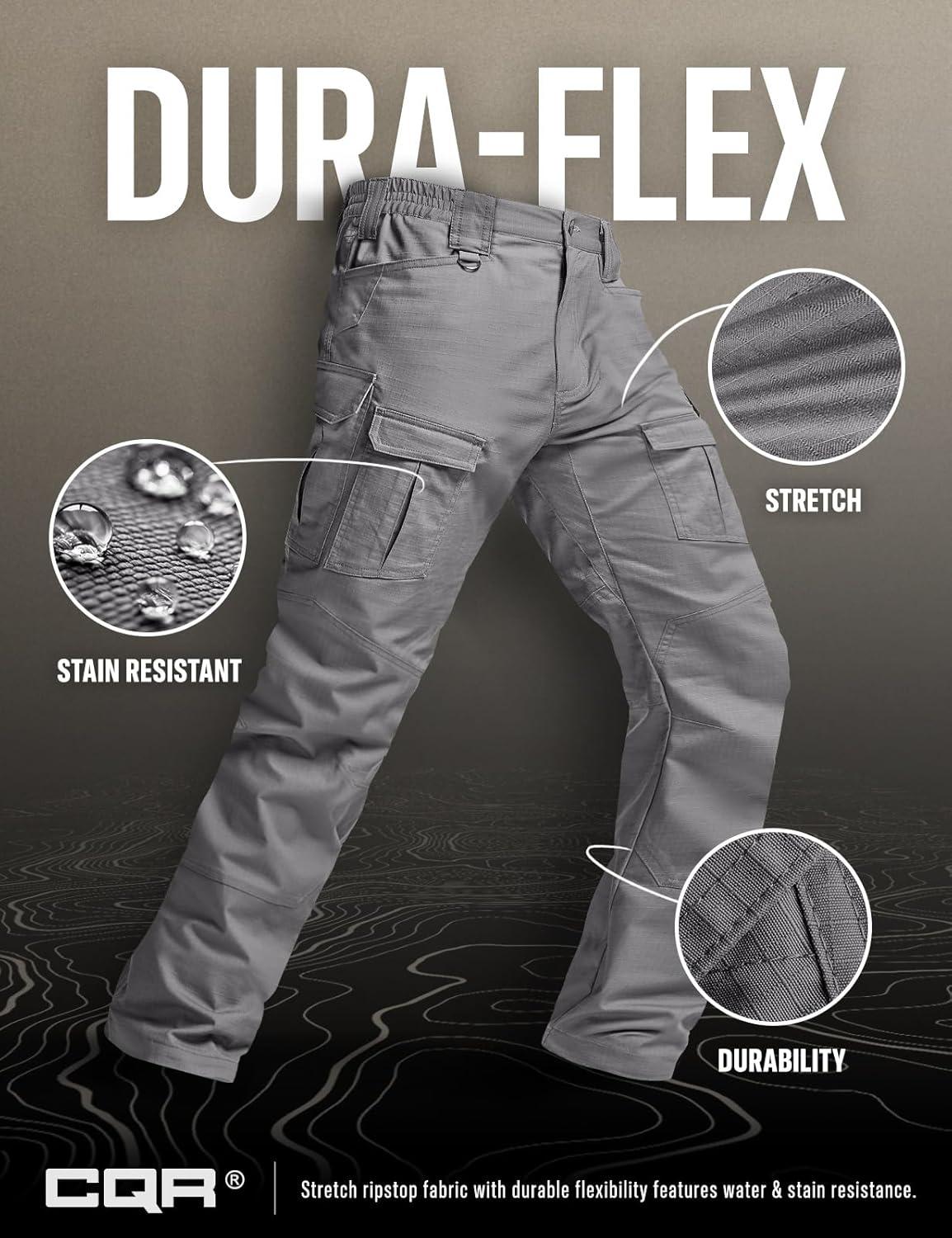 CQR Men’s Flex Ripstop Tactical Pants, Water Resistant Stretch Cargo Pants, Lightweight EDC Hiking Work Pants