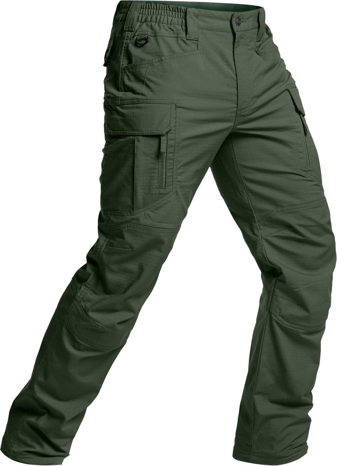 CQR Men’s Flex Stretch Tactical Pants, Water Resistant Ripstop Cargo Pants, Lightweight EDC Outdoor Work Hiking Pants(Intense Green Kelp)