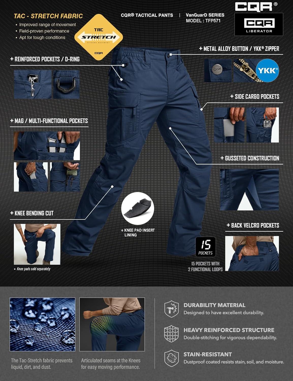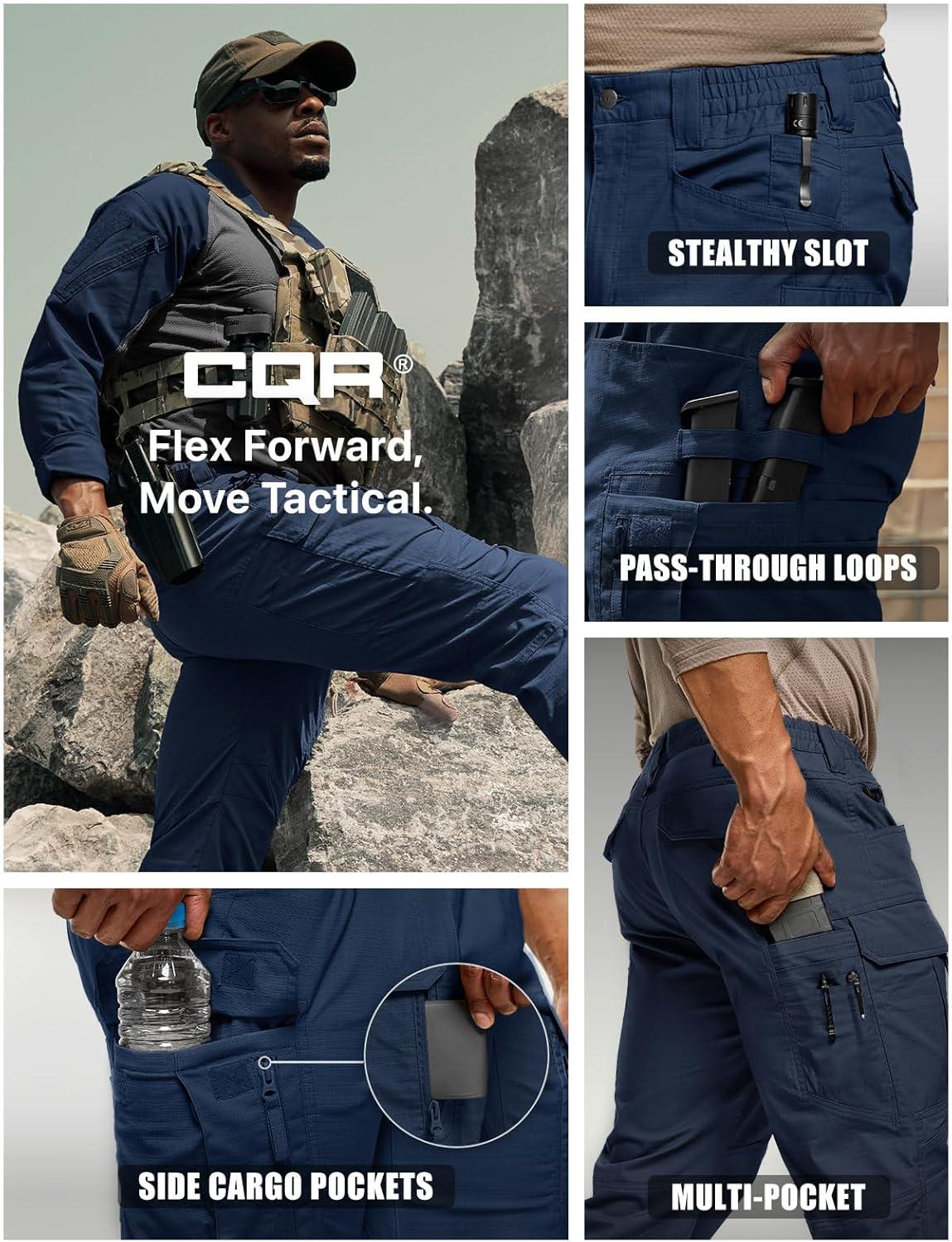 CQR Men’s Flex Stretch Tactical Pants, Water Resistant Ripstop Cargo Pants, Lightweight EDC Outdoor Work Hiking Pants(Intense Midnight Blue)