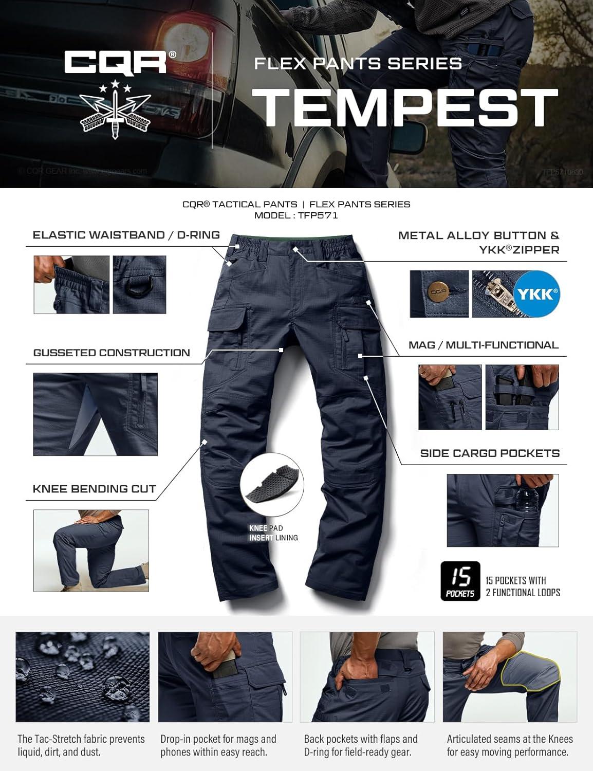CQR Men’s Flex Stretch Tactical Pants, Water Resistant Ripstop Cargo Pants, Lightweight EDC Outdoor Work Hiking Pants(Intense Operator Navy)