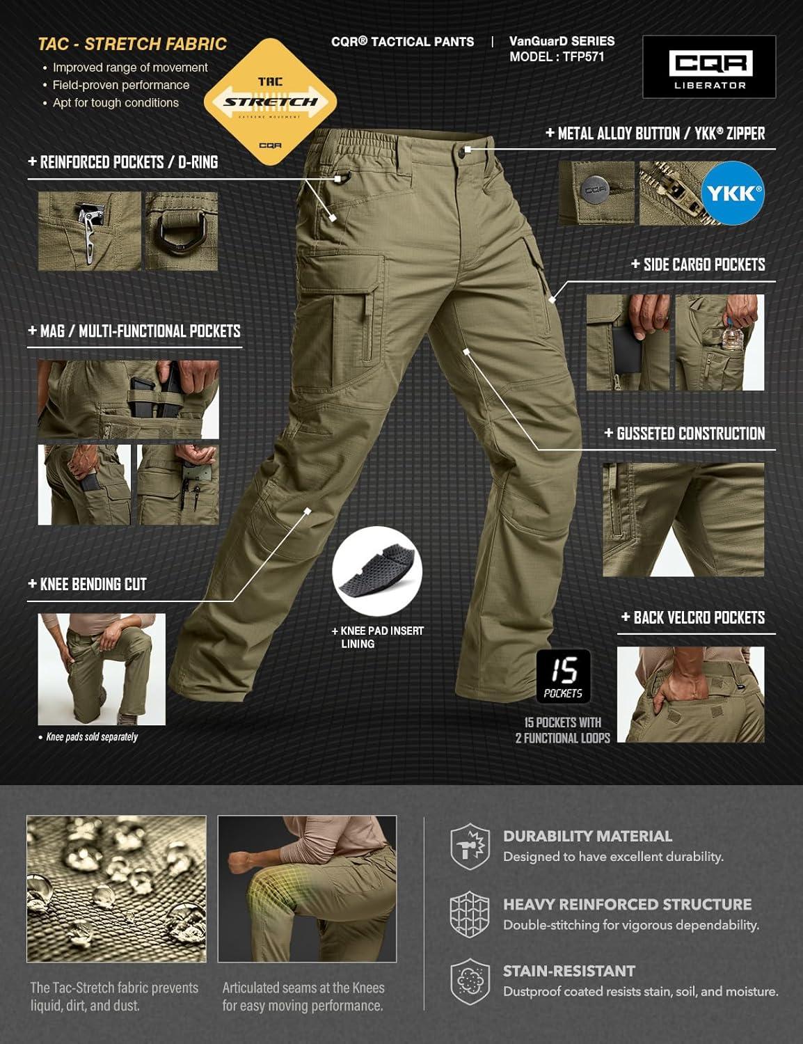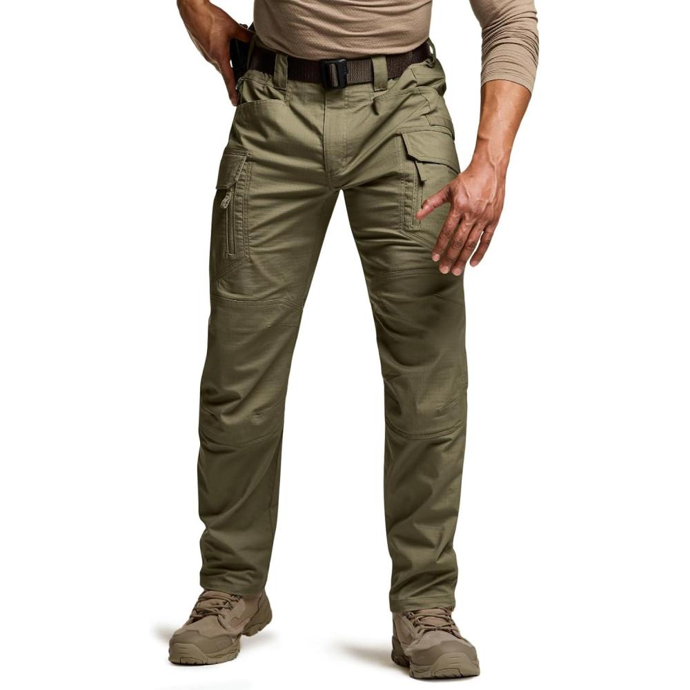 CQR Men’s Flex Stretch Tactical Pants, Water Resistant Ripstop Cargo Pants, Lightweight EDC Outdoor Work Hiking Pants(Intense Soil Green)