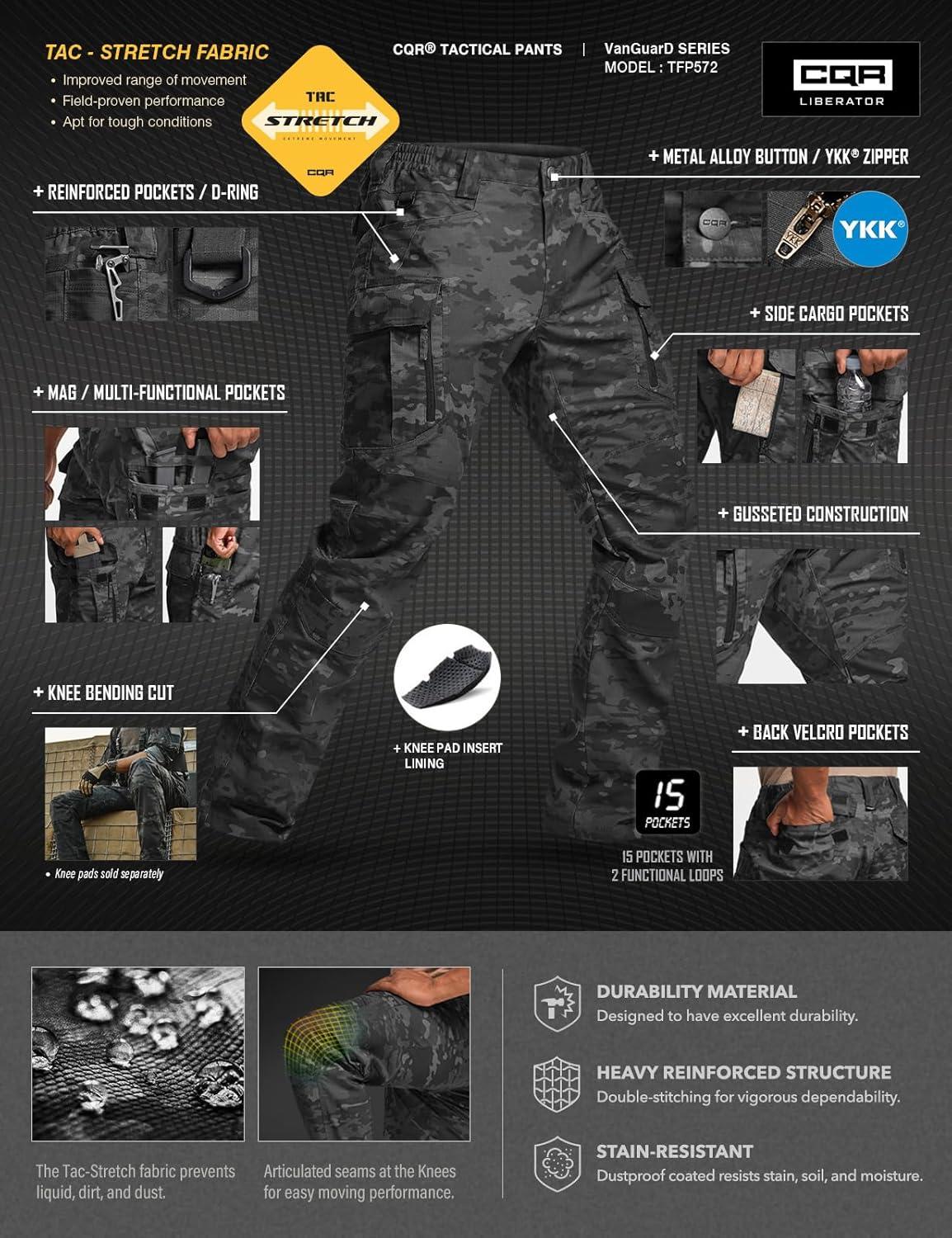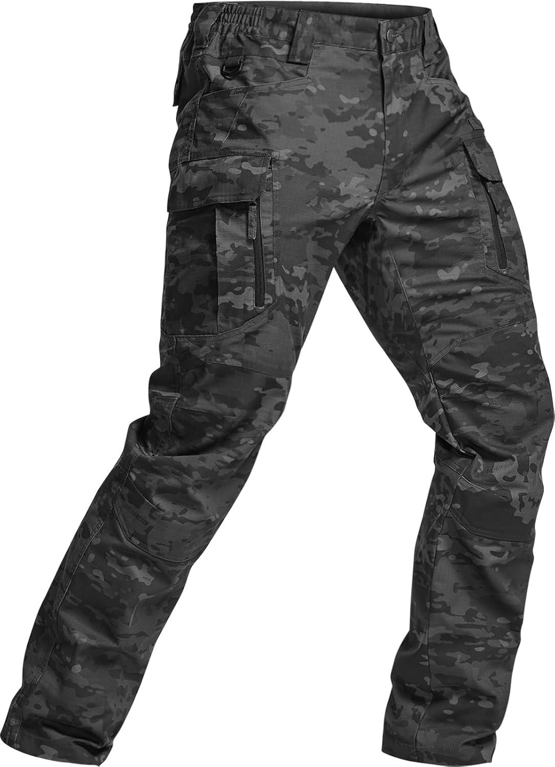 CQR Men’s Flex Stretch Tactical Pants, Water Resistant Ripstop Cargo Pants, Lightweight EDC Outdoor Work Hiking Pants(Intense Utility Camo Black)