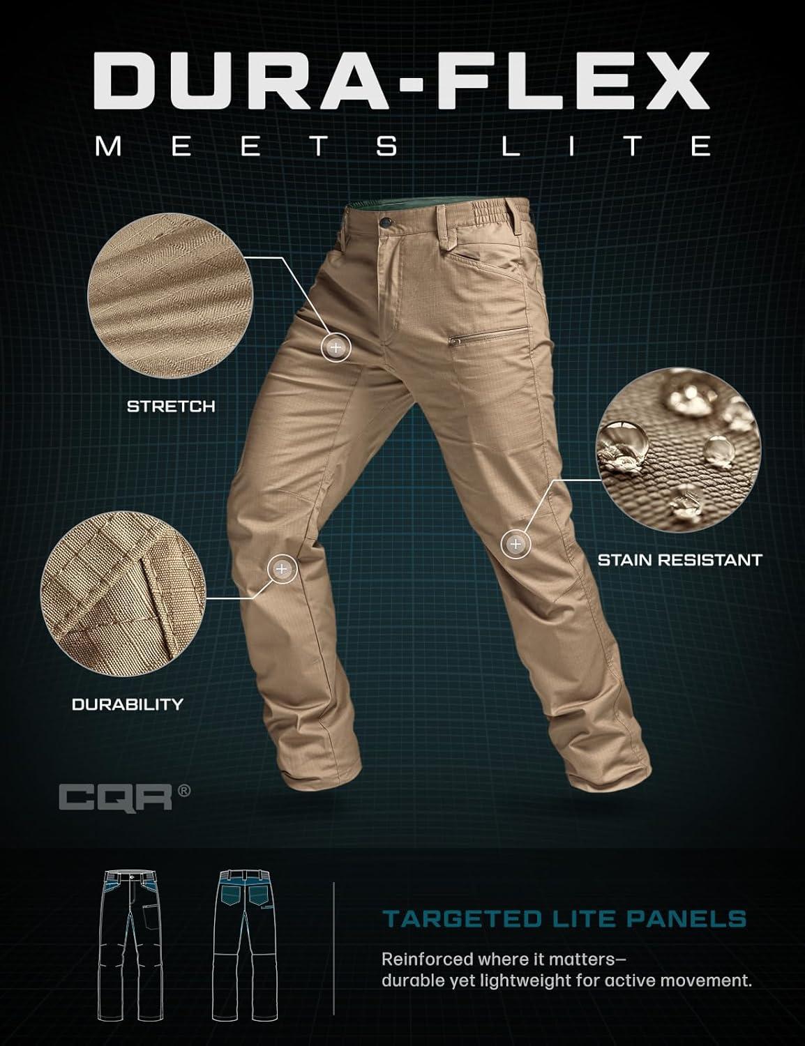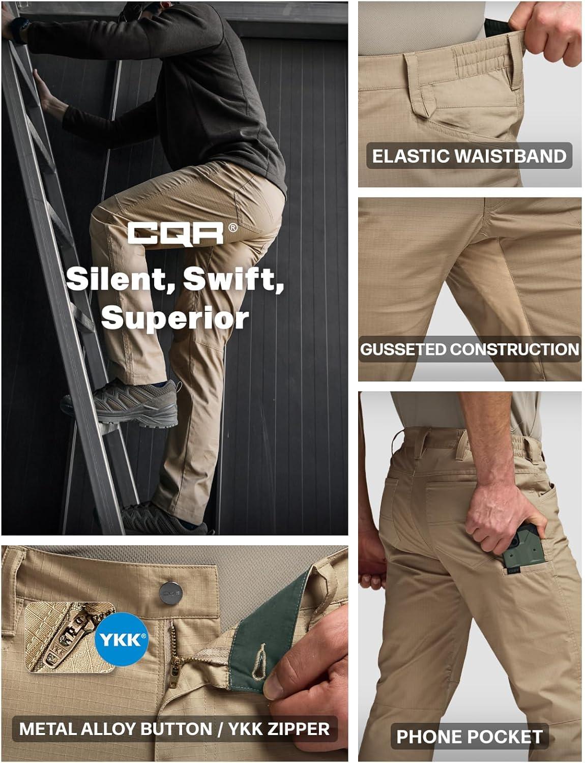CQR Men’s Flex Stretch Tactical Pants, Water Resistant Ripstop Cargo Pants, Lightweight EDC Outdoor Work Hiking Pants(Sneak Alamo Khaki)