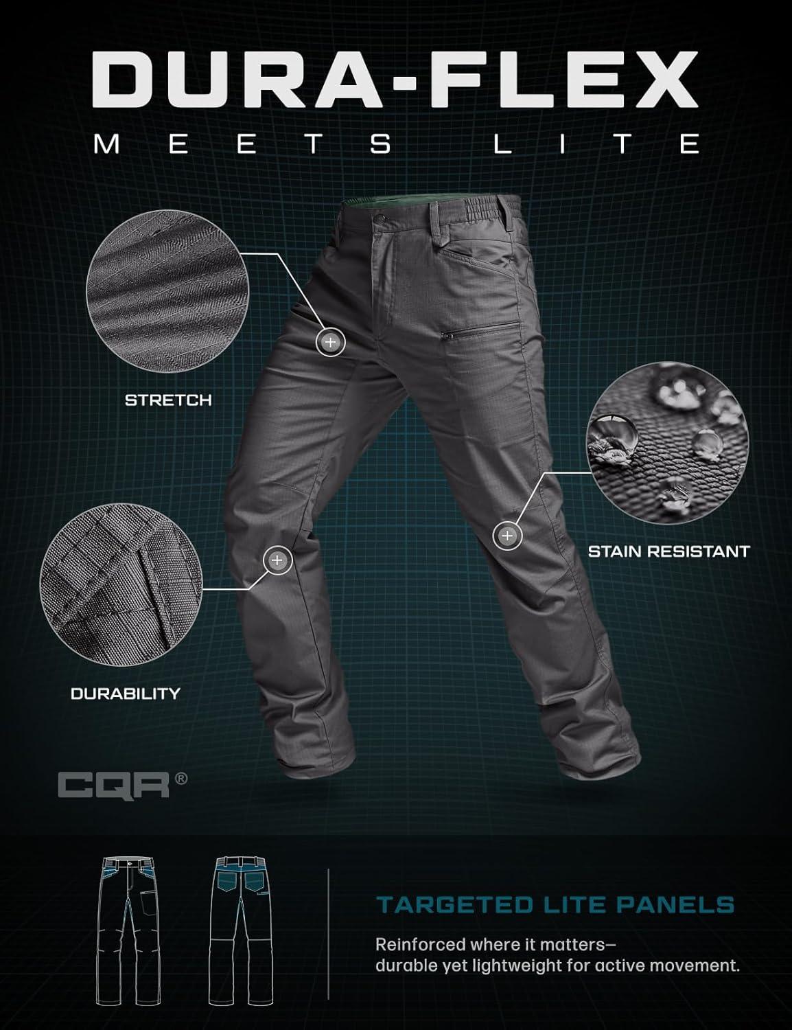 CQR Men’s Flex Stretch Tactical Pants, Water Resistant Ripstop Cargo Pants, Lightweight EDC Outdoor Work Hiking Pants(Sneak Charcoal)