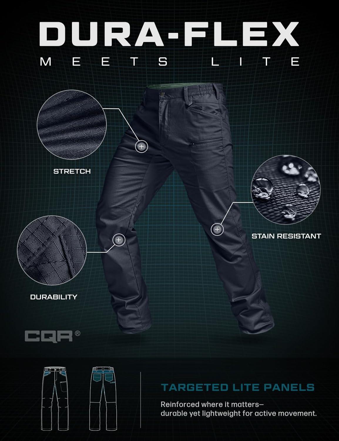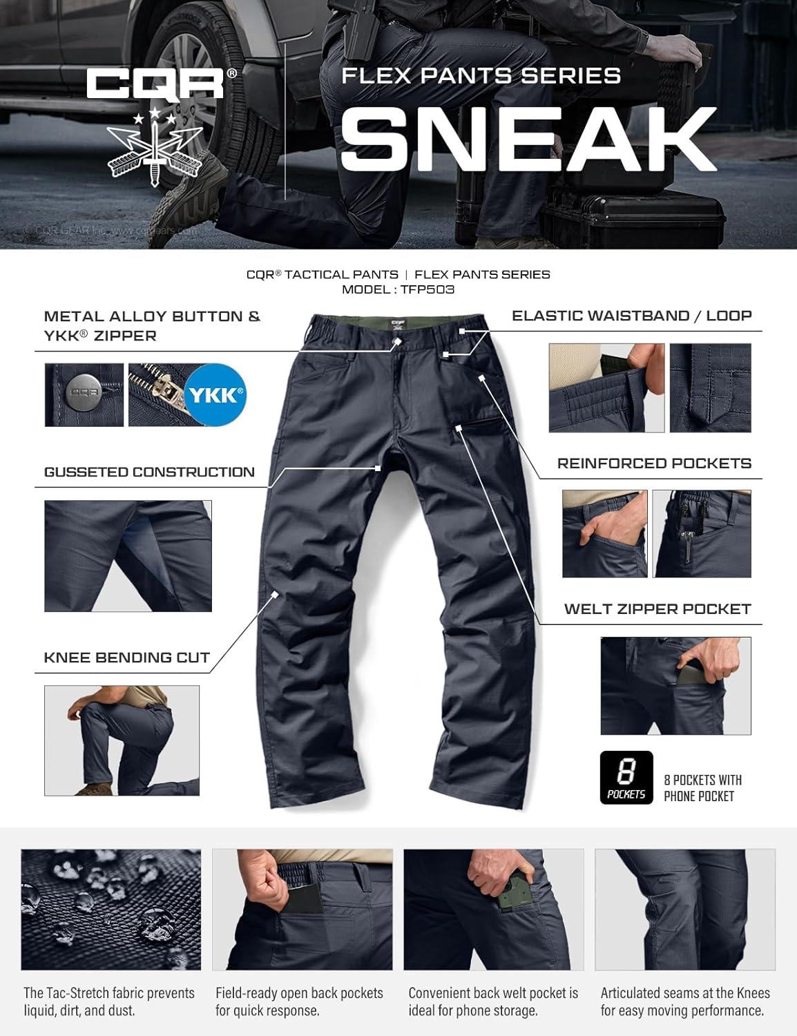 CQR Men’s Flex Stretch Tactical Pants, Water Resistant Ripstop Cargo Pants, Lightweight EDC Outdoor Work Hiking Pants(Sneak Operator Navy)