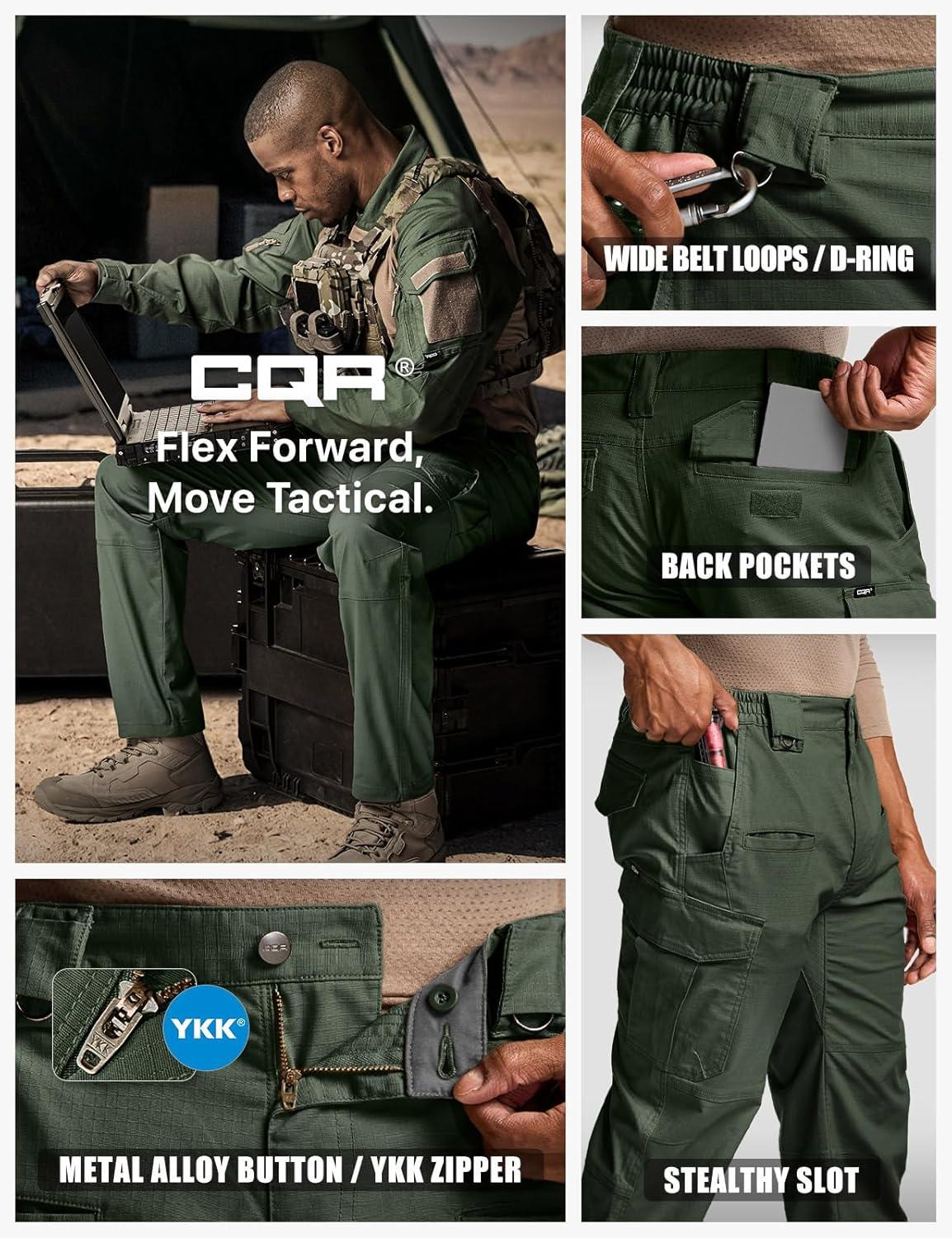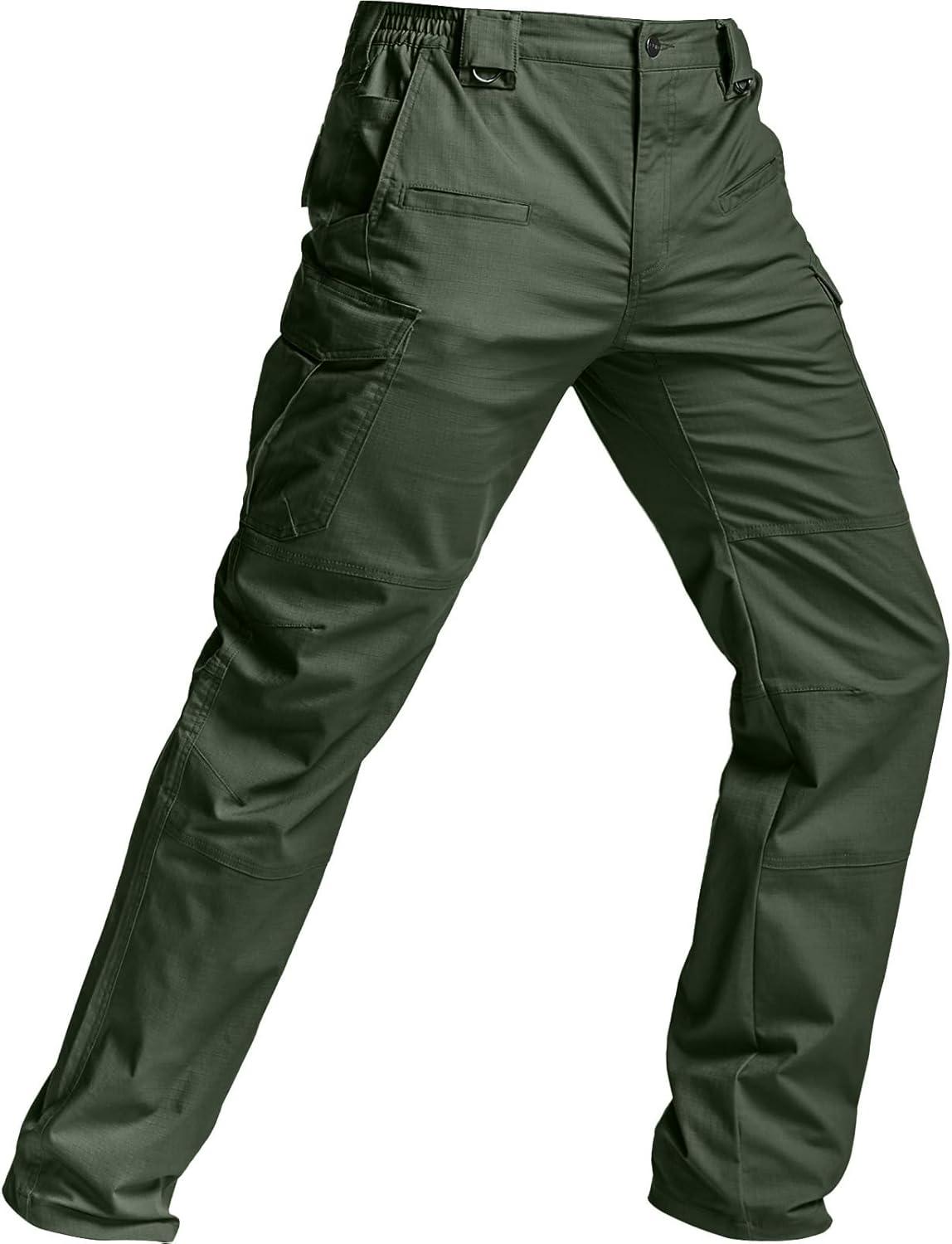 CQR Men’s Flex Stretch Tactical Pants, Water Resistant Ripstop Cargo Pants, Lightweight EDC Outdoor Work Hiking Pants(Tac-stretch Cargo Green Kelp)