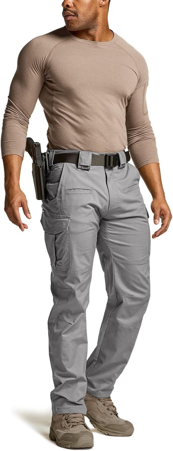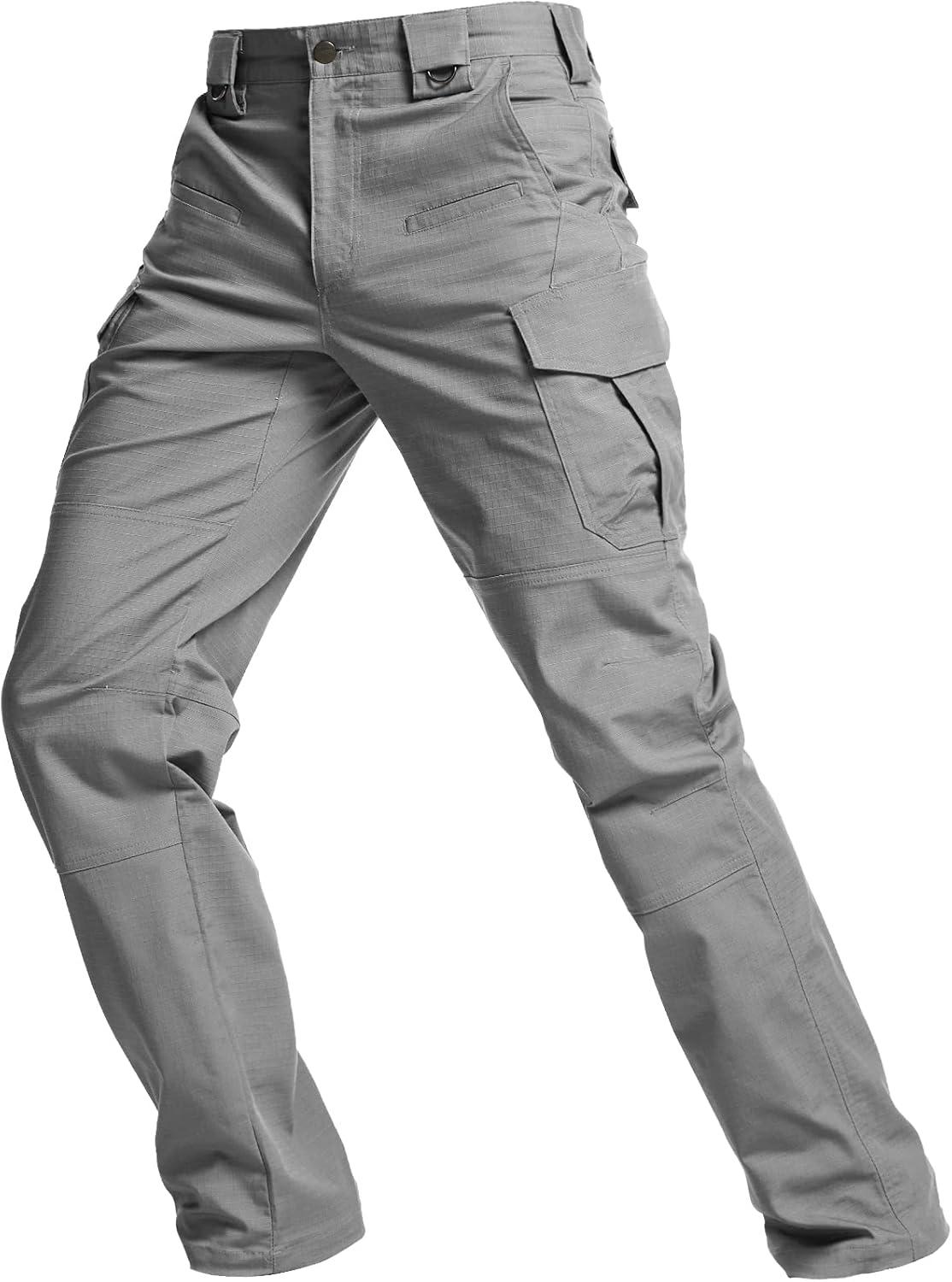 CQR Men’s Flex Stretch Tactical Pants, Water Resistant Ripstop Cargo Pants, Lightweight EDC Outdoor Work Hiking Pants(Tac-stretch Cargo Regular Stone)