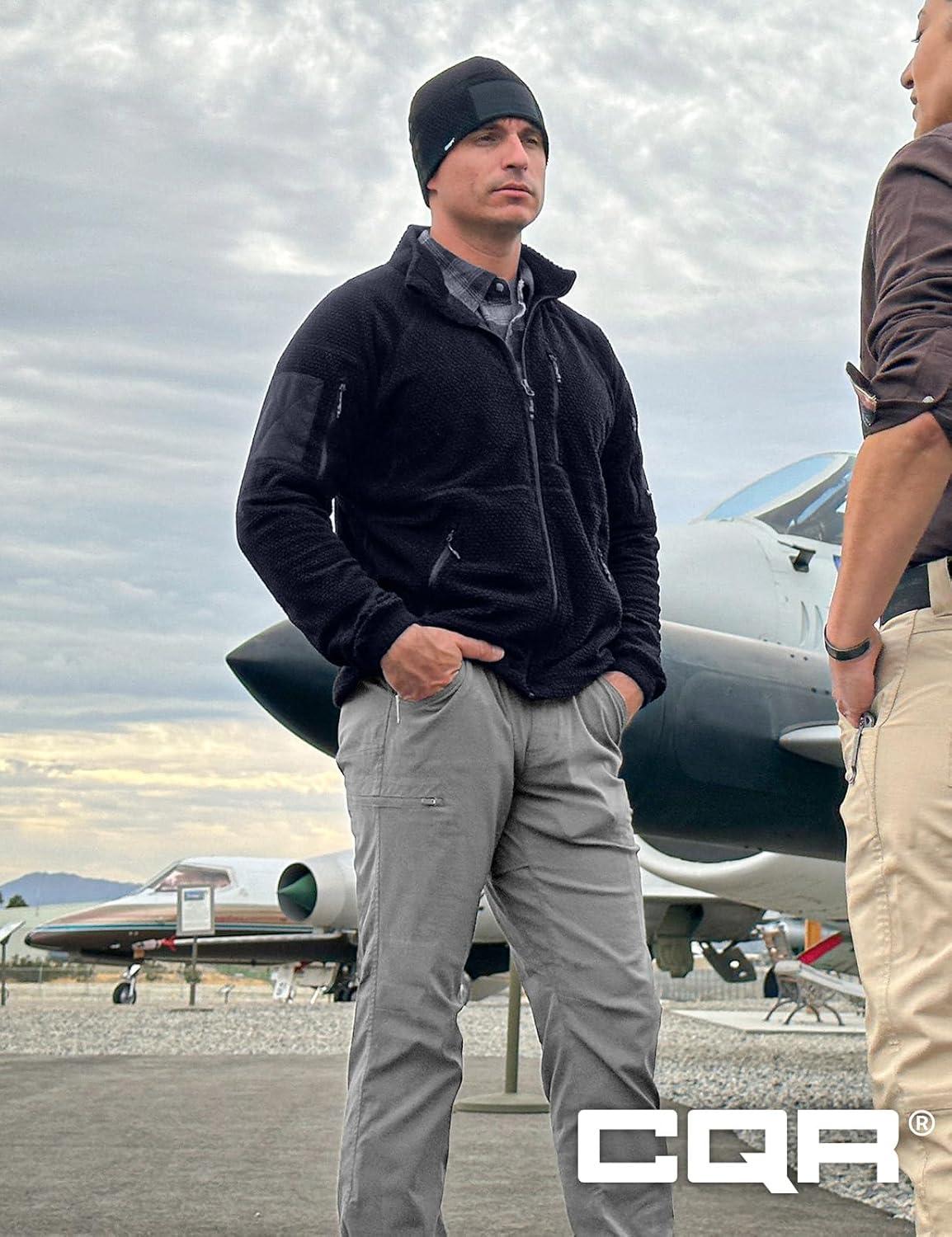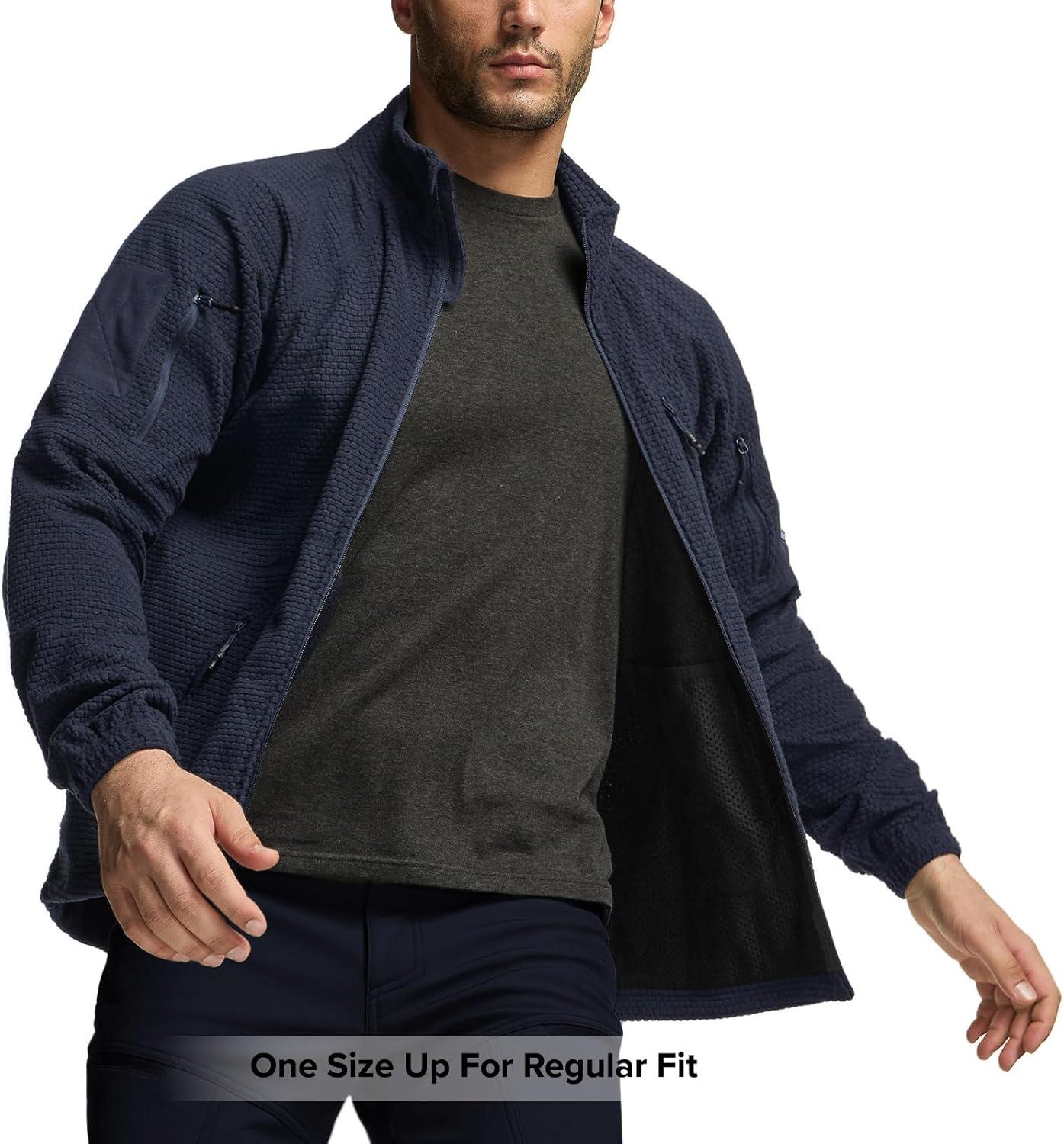 CQR Men’s Full-Zip Tactical Jacket, Soft Warm Military Winter Fleece Jackets, Outdoor Coats with Zipper Pockets(Grid Fleece Operator Navy)