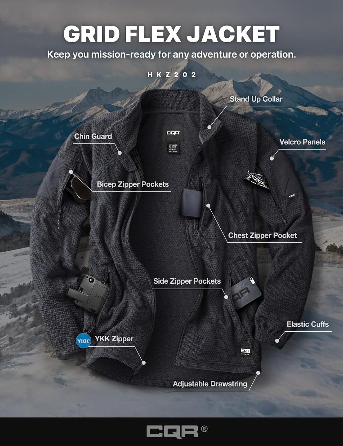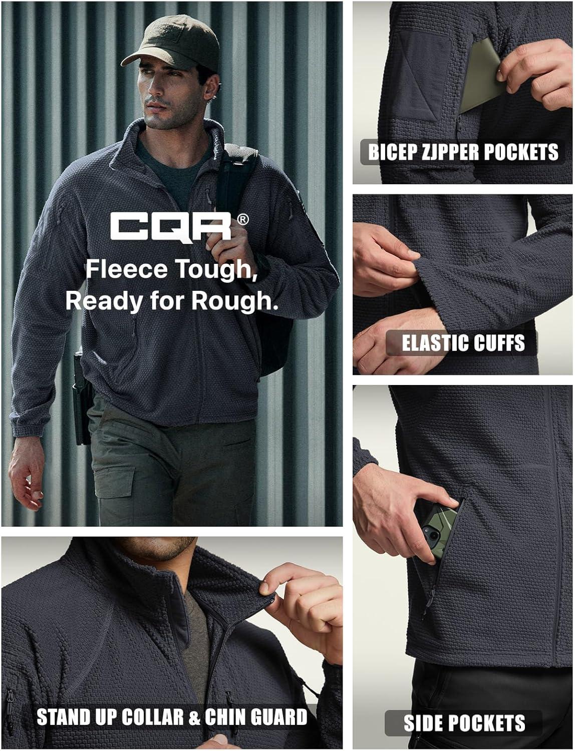 CQR Men’s Full-Zip Tactical Jacket, Soft Warm Military Winter Fleece Jackets, Outdoor Coats with Zipper Pockets(Grid Flex Charcoal)