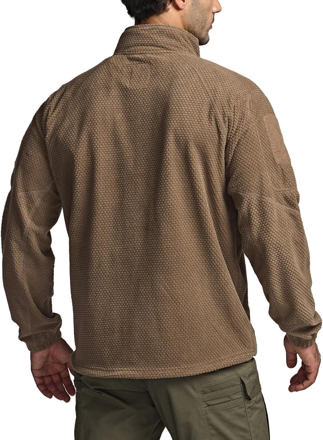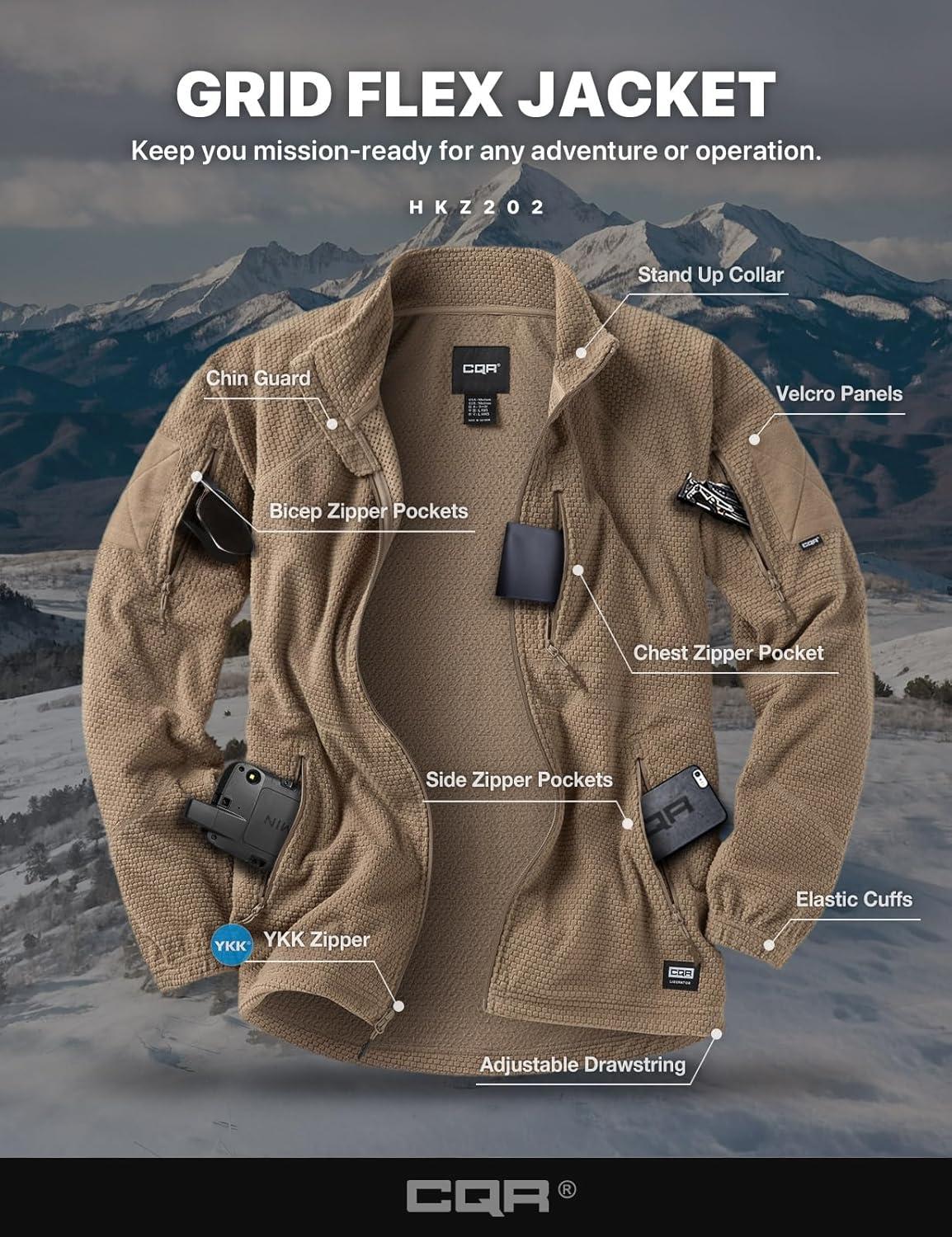 CQR Men’s Full-Zip Tactical Jacket, Soft Warm Military Winter Fleece Jackets, Outdoor Coats with Zipper Pockets(Grid Flex Coyote)