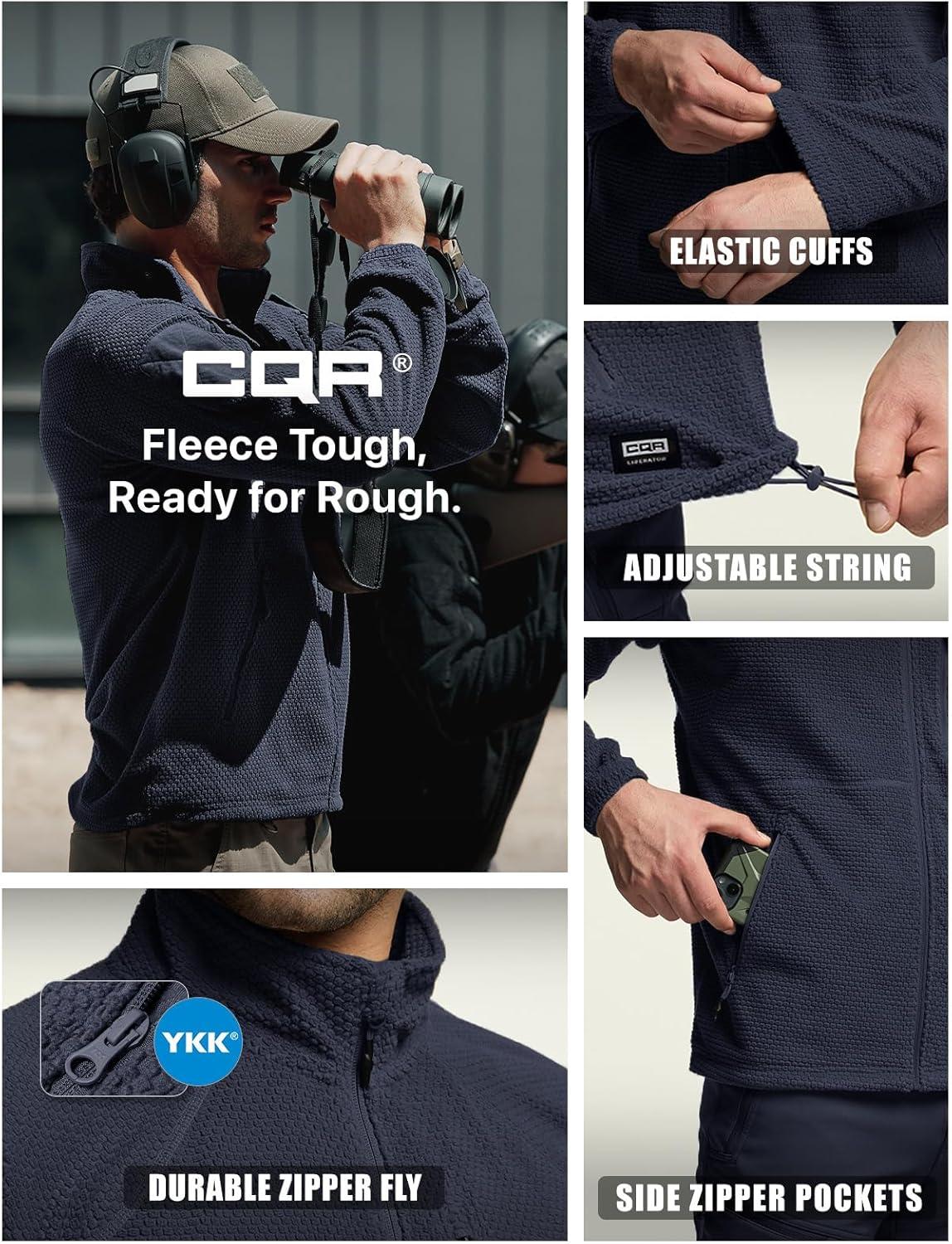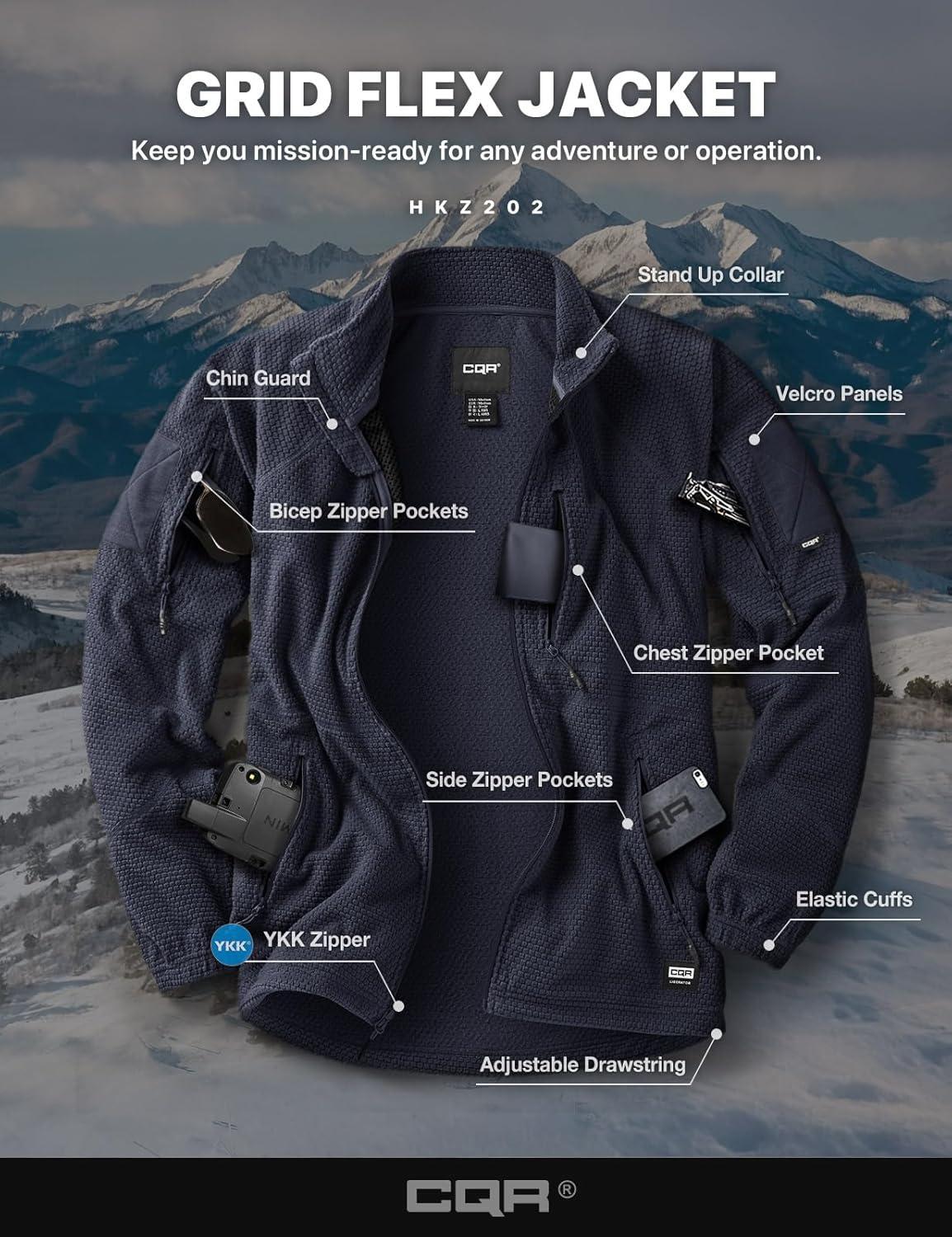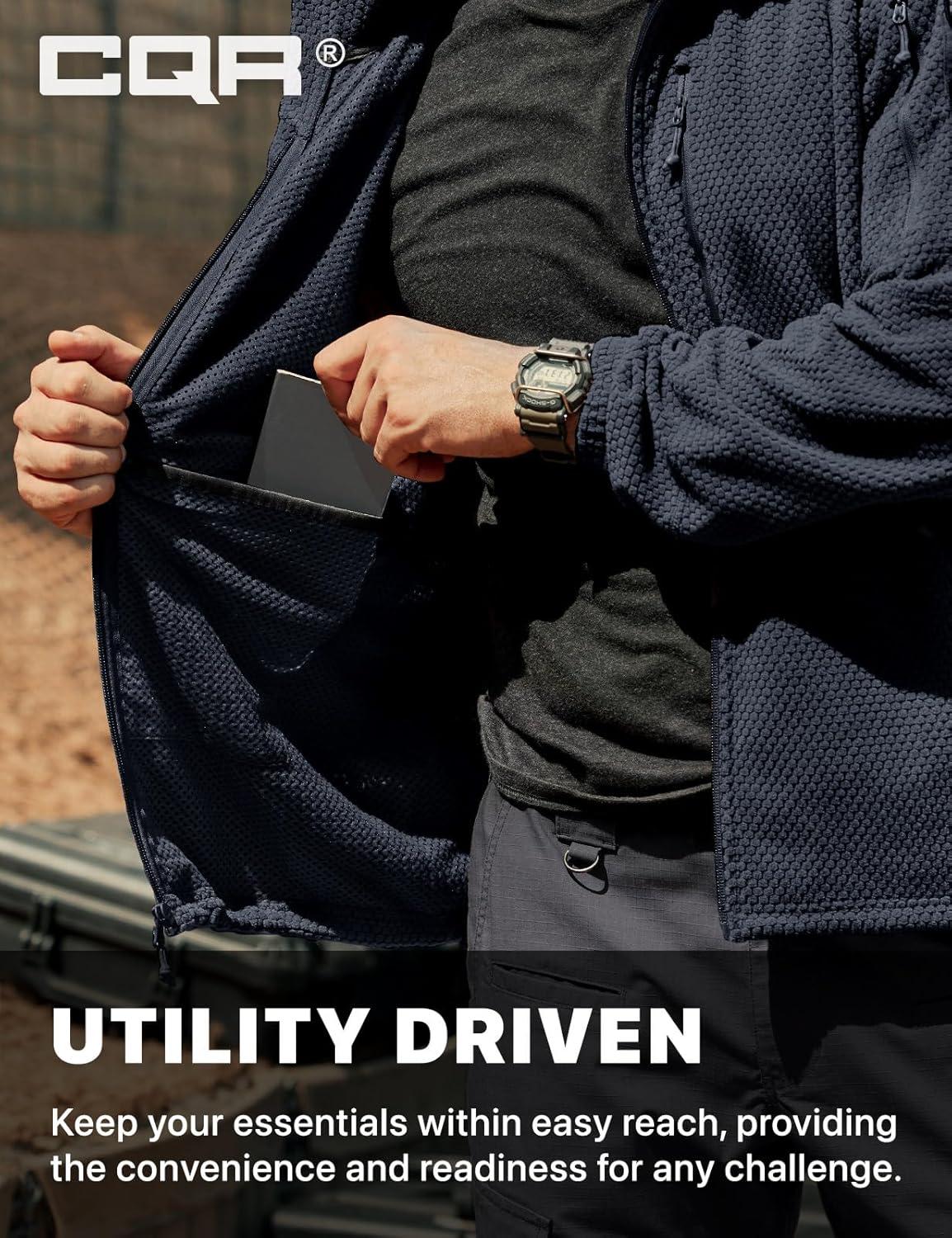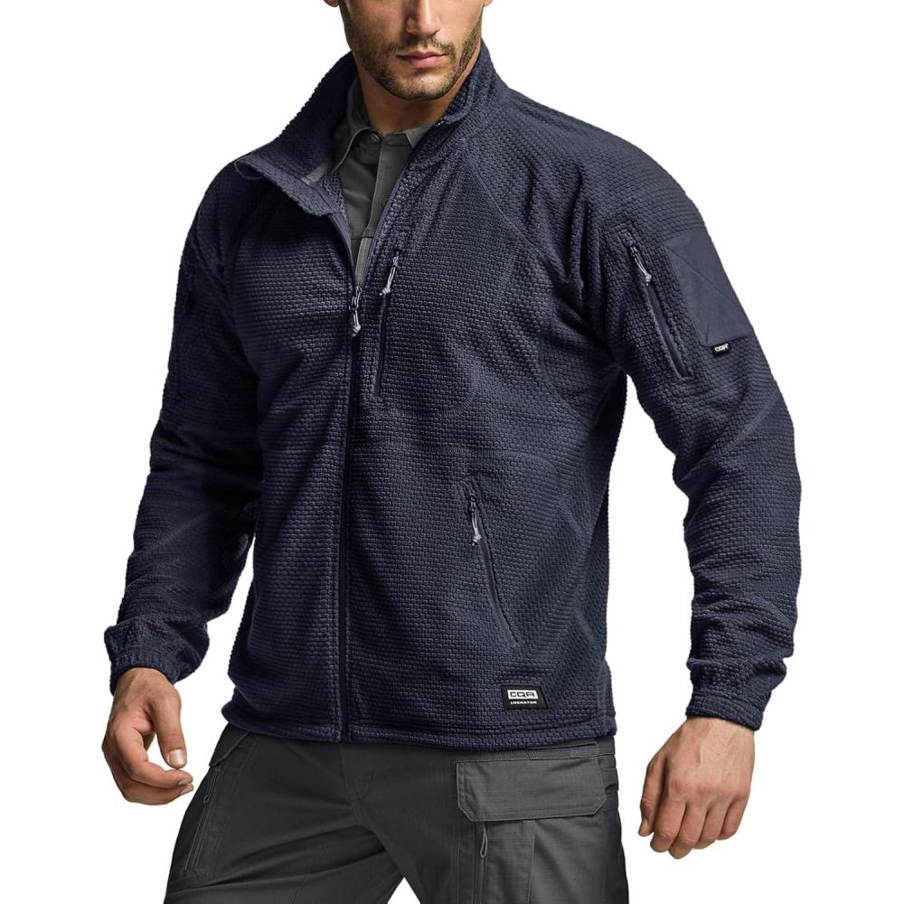 CQR Men’s Full-Zip Tactical Jacket, Soft Warm Military Winter Fleece Jackets, Outdoor Coats with Zipper Pockets(Grid Flex Operator Navy)