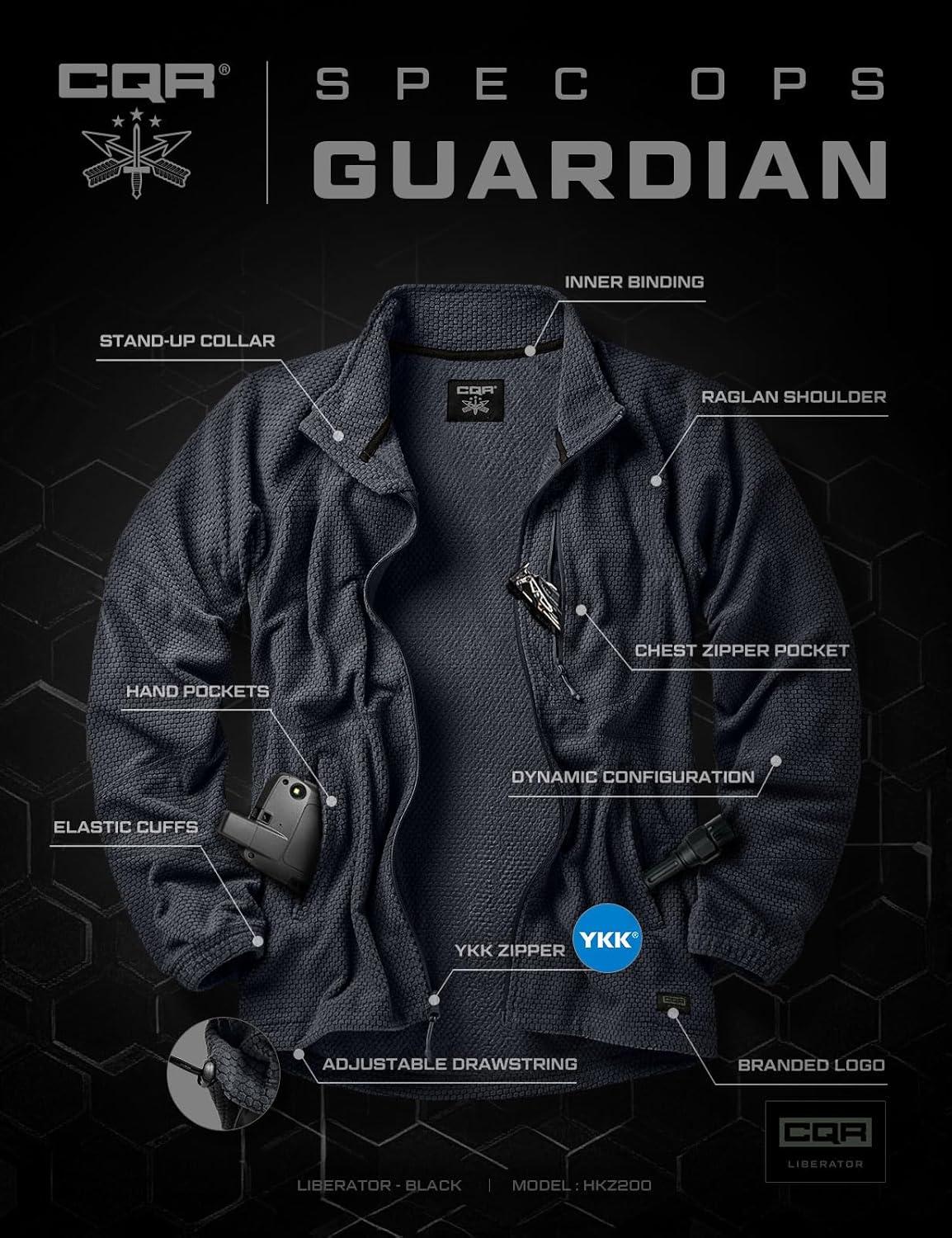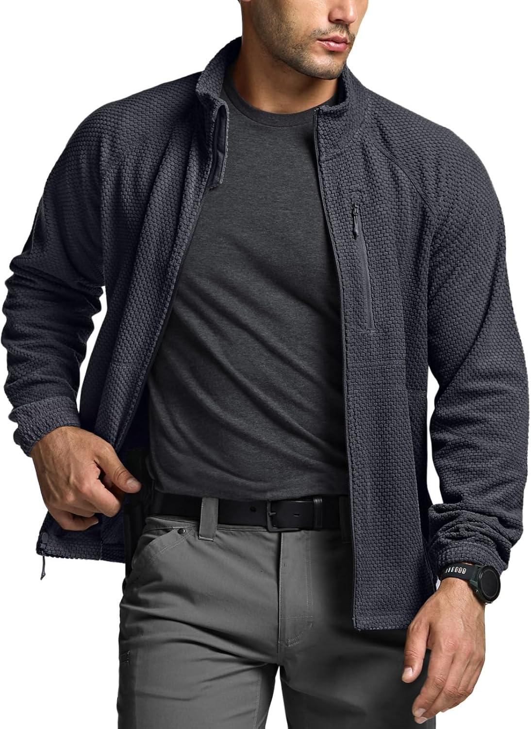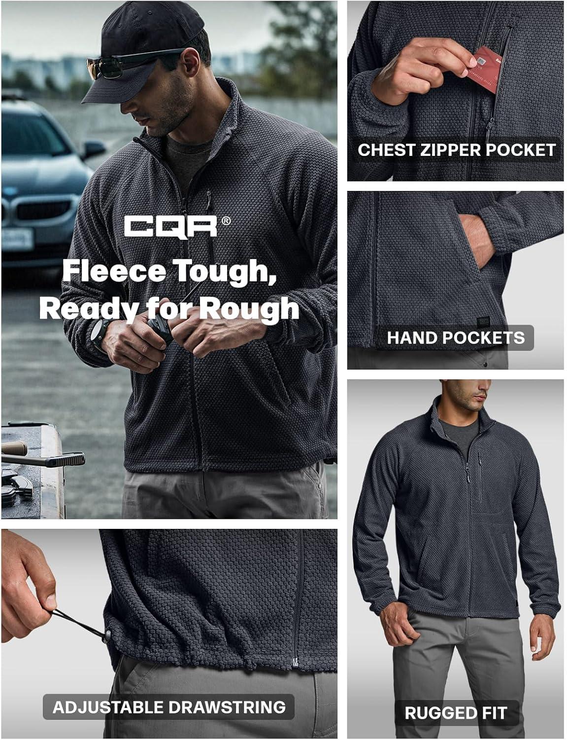 CQR Men’s Full-Zip Tactical Jacket, Soft Warm Military Winter Fleece Jackets, Outdoor Coats with Zipper Pockets(Guardian Charcoal)