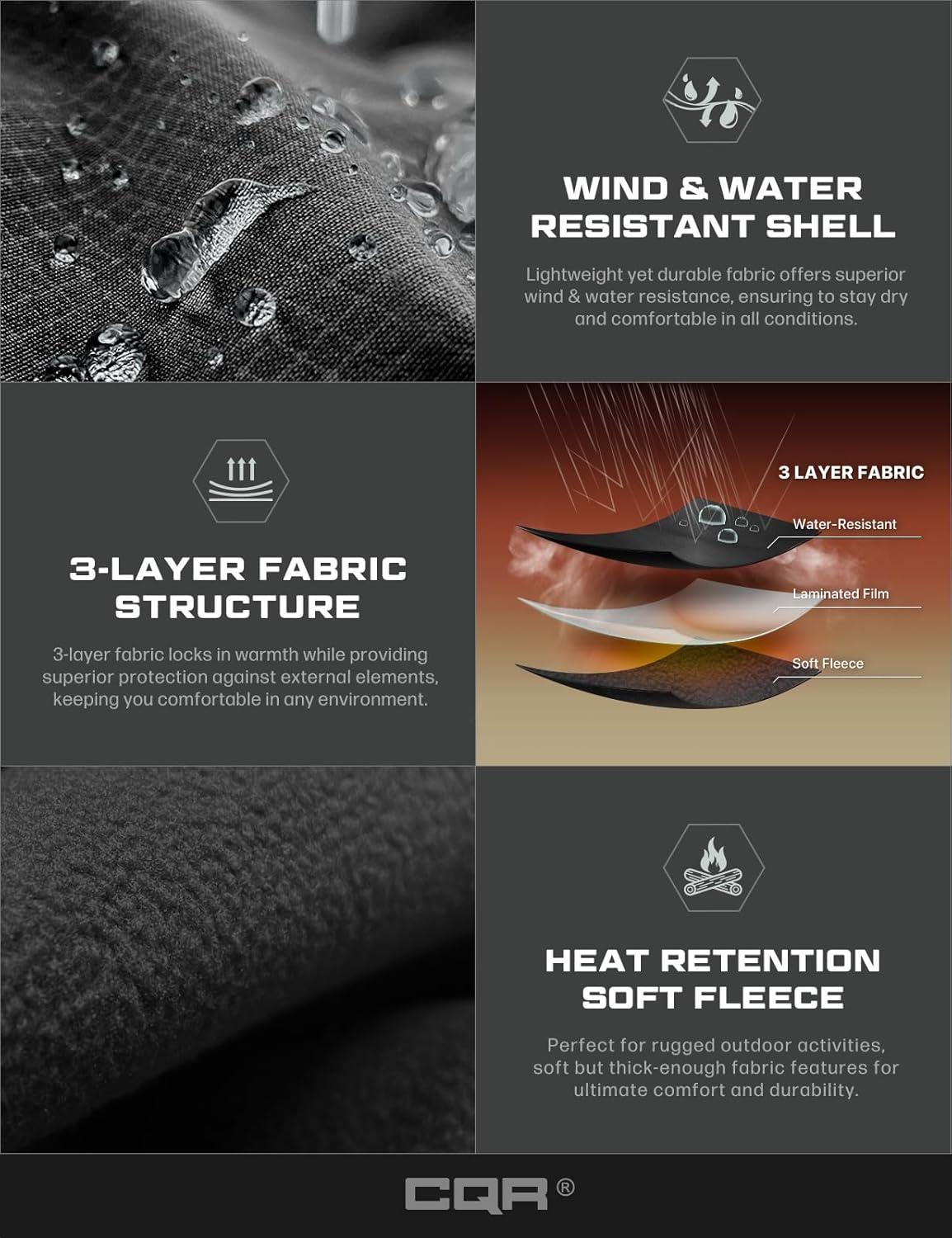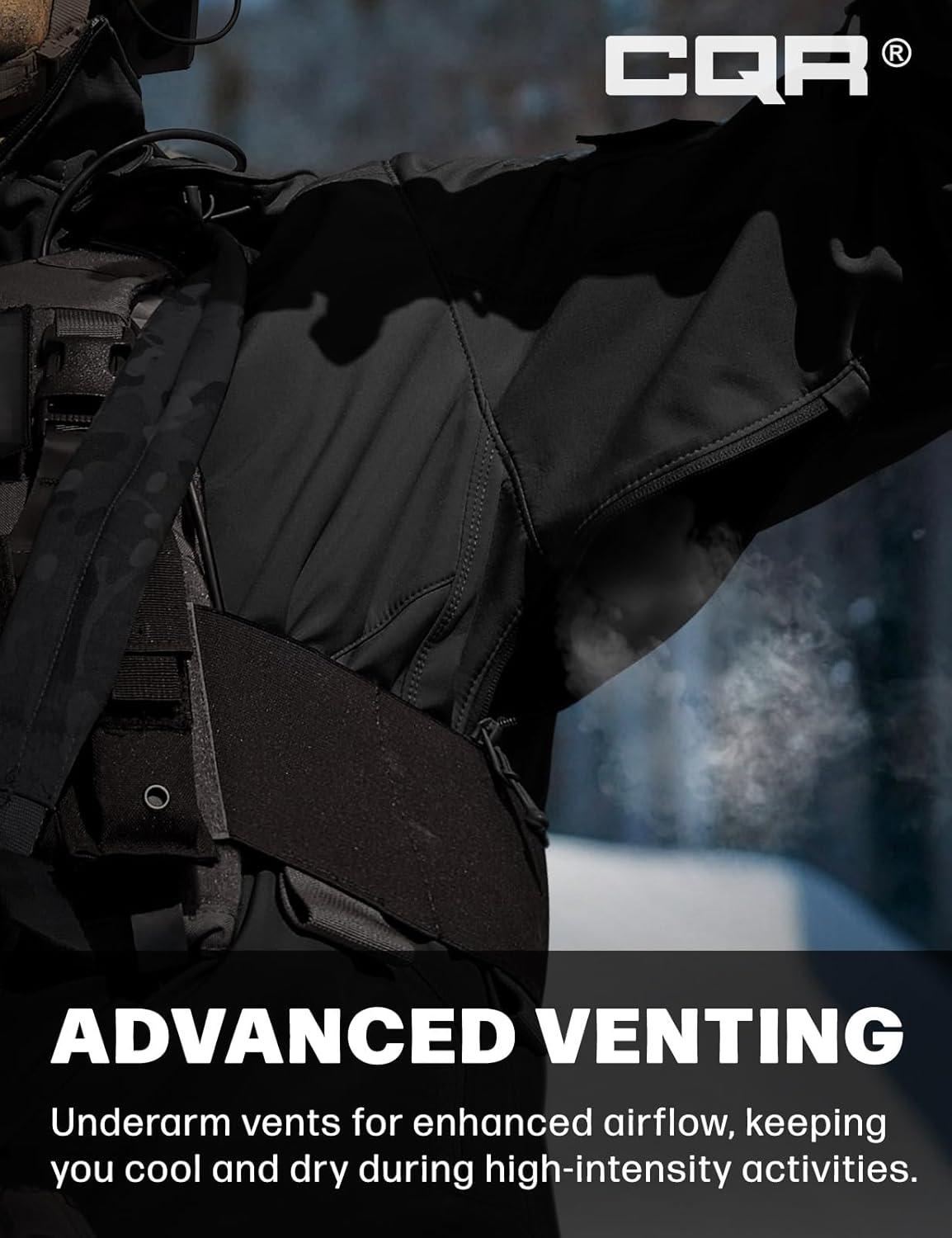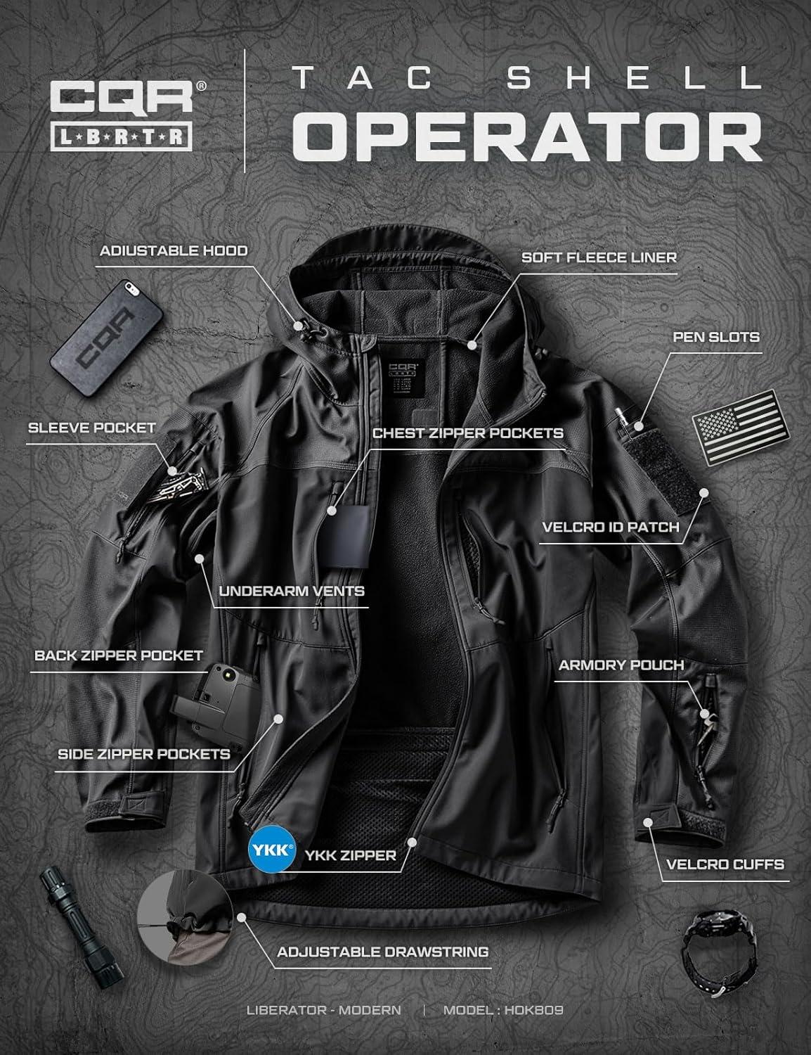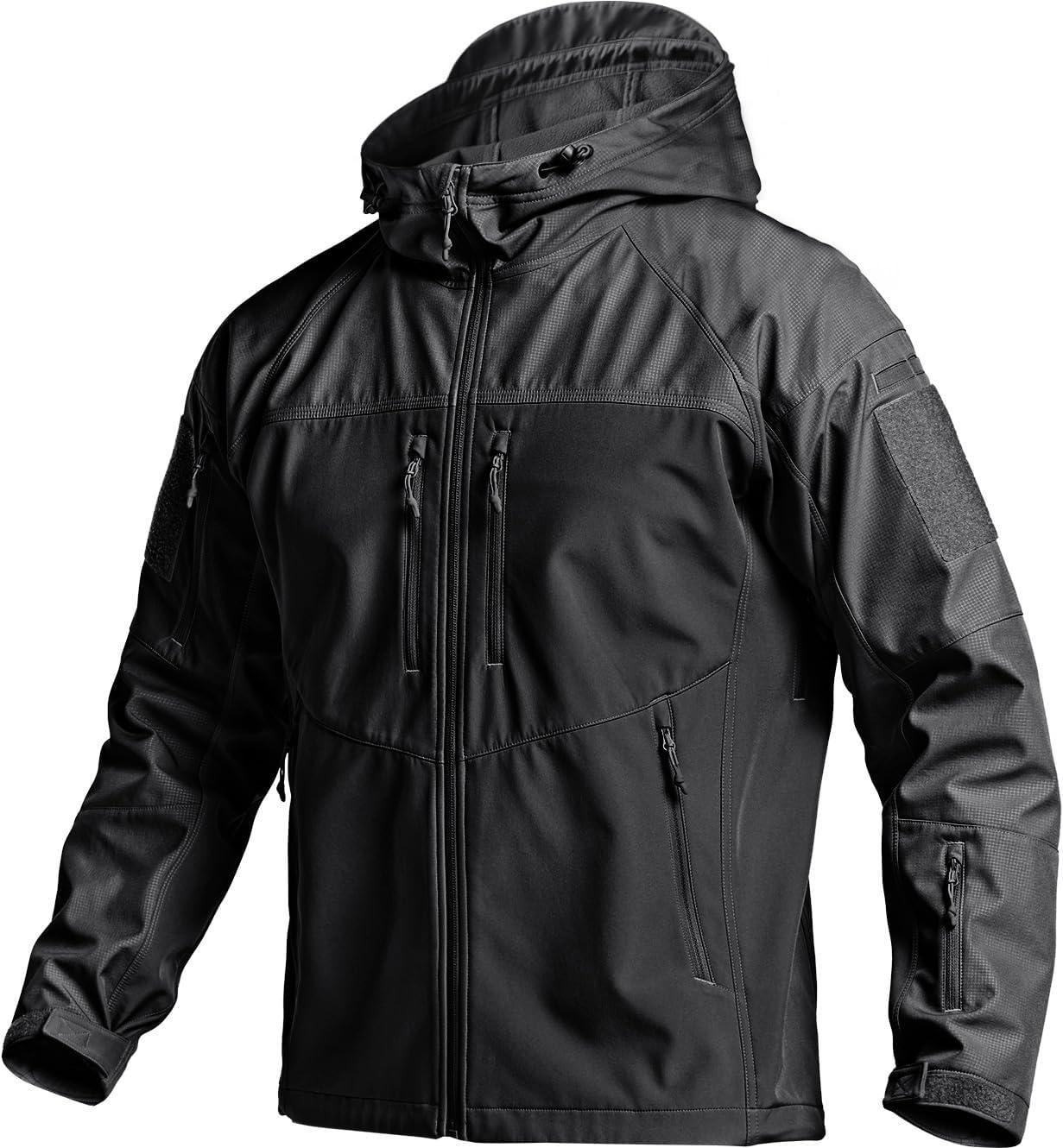 CQR Men’s Hooded Tactical Softshell Jacket, Water Resistant Fleece Lined Hoodie, Winter Outdoor Hunting Hiking Rain Wind(Modern Black)