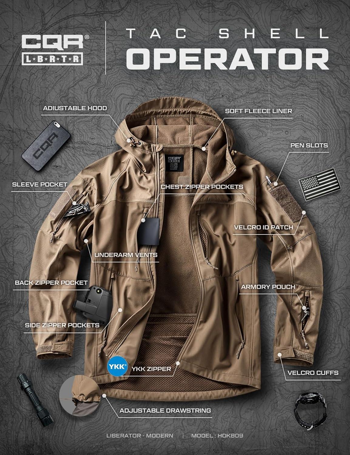 CQR Men’s Hooded Tactical Softshell Jacket, Water Resistant Fleece Lined Hoodie, Winter Outdoor Hunting Hiking Rain Wind(Modern Coyote)