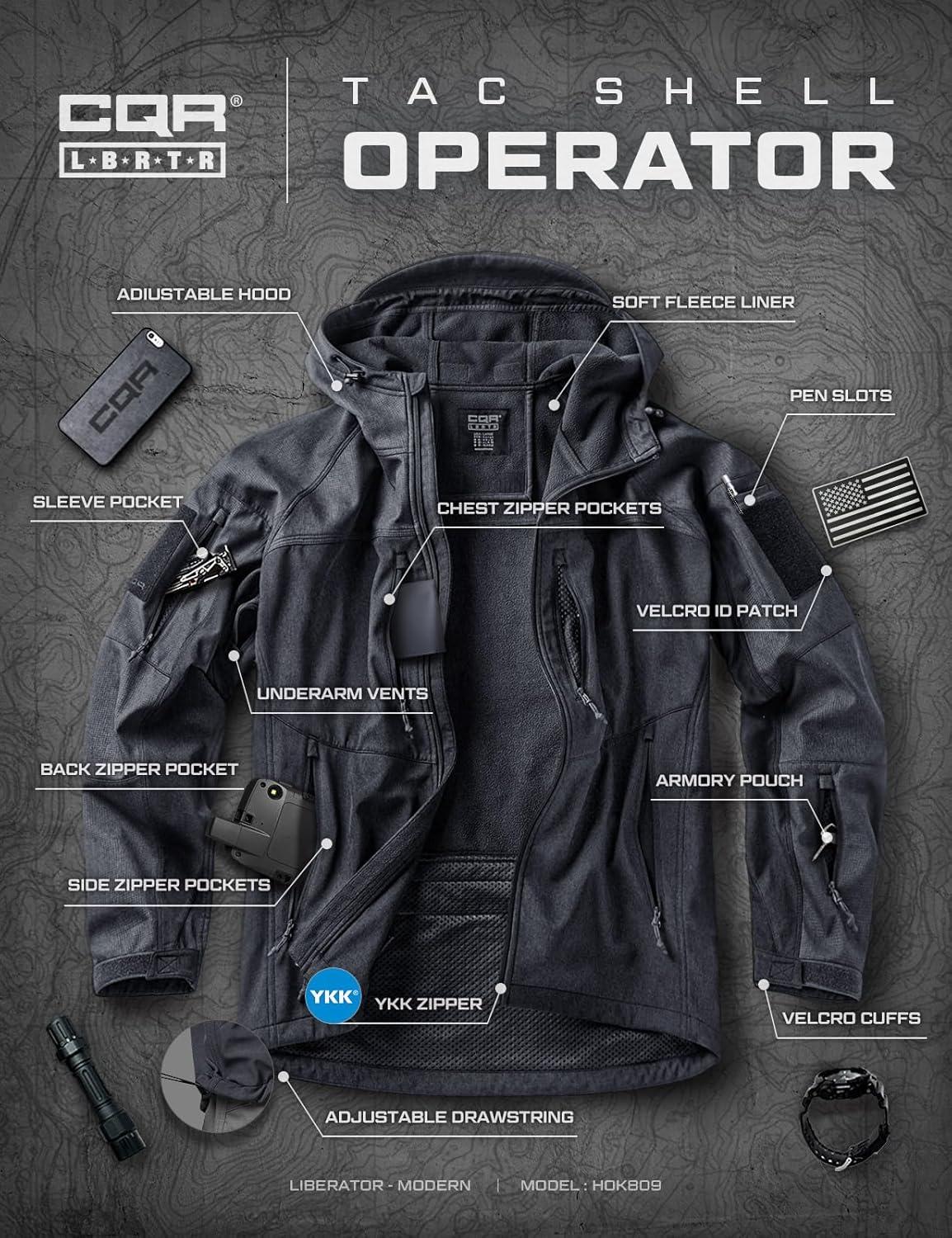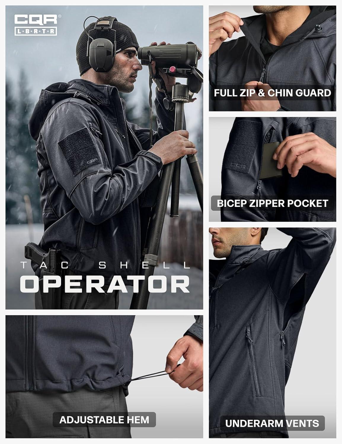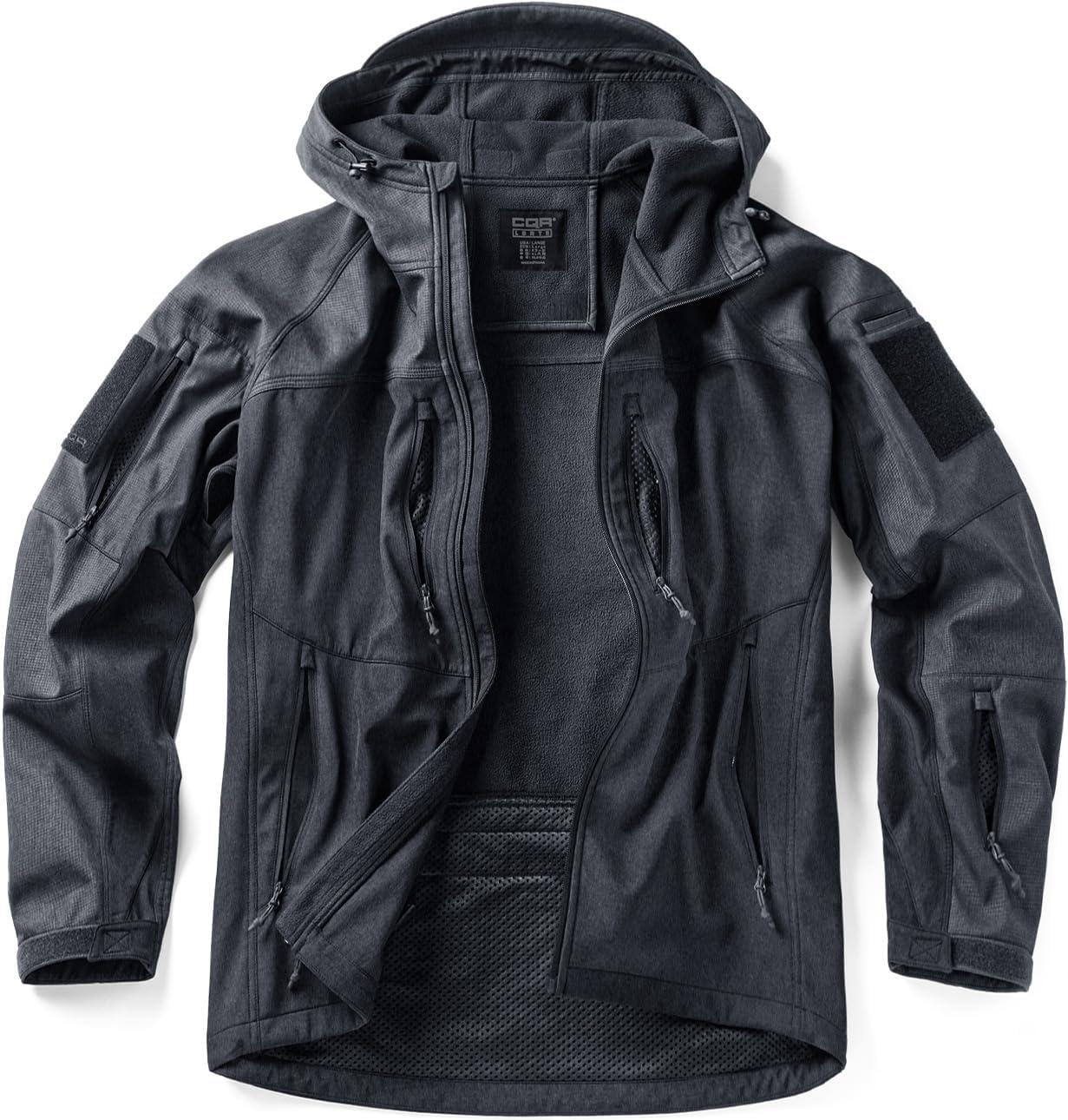 CQR Men’s Hooded Tactical Softshell Jacket, Water Resistant Fleece Lined Hoodie, Winter Outdoor Hunting Hiking Rain Wind(Modern Heather Dark Grey)