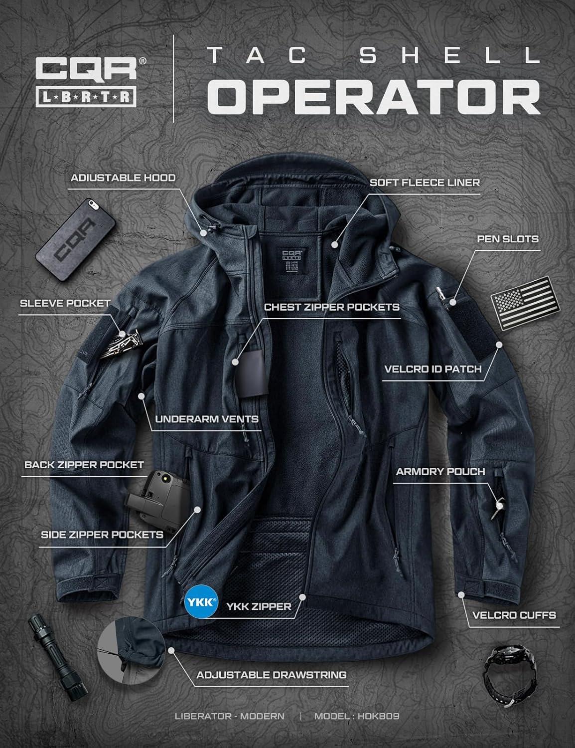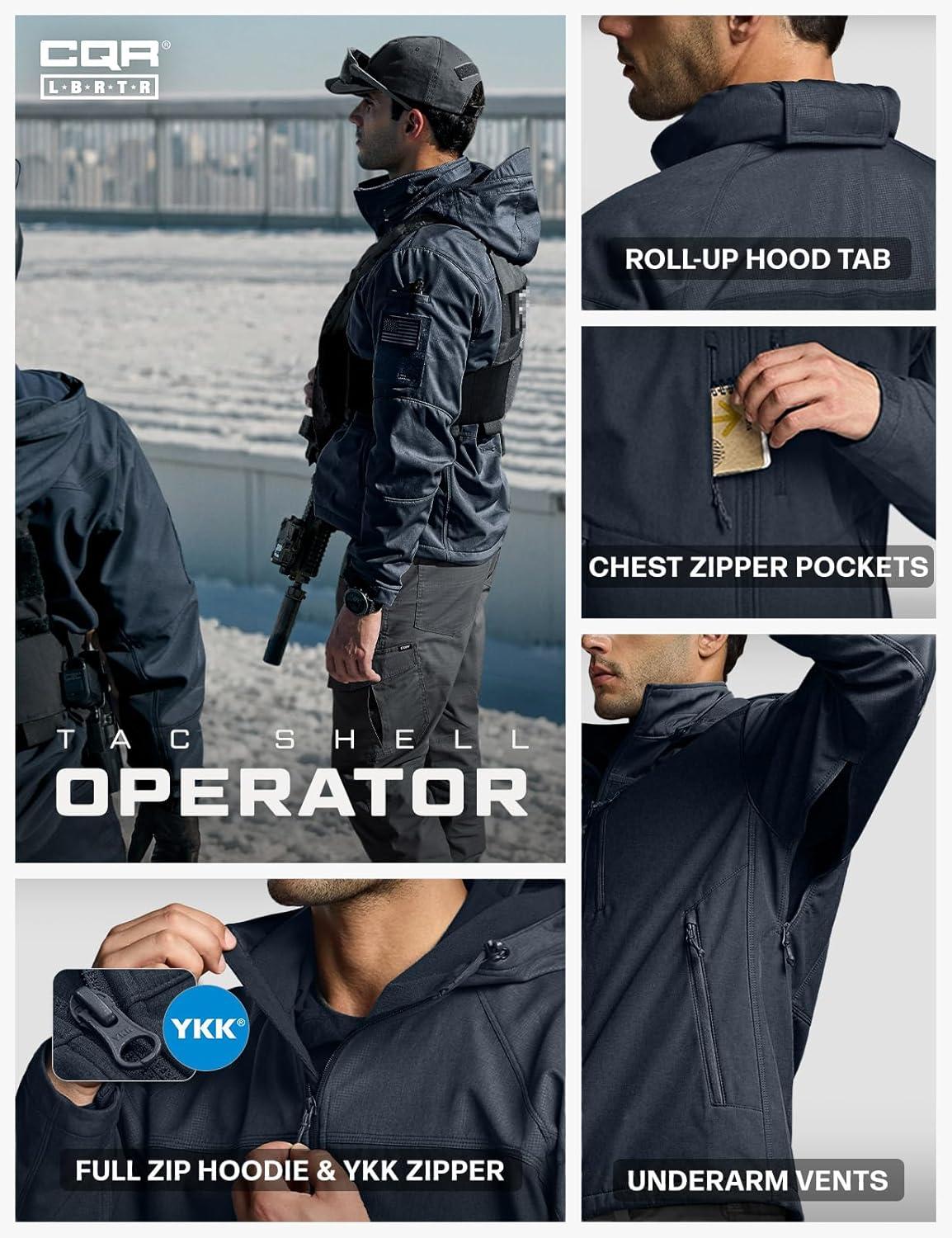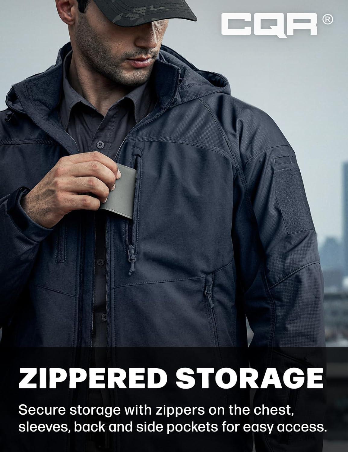 CQR Men’s Hooded Tactical Softshell Jacket, Water Resistant Fleece Lined Hoodie, Winter Outdoor Hunting Hiking Rain Wind(Modern Operator Navy)