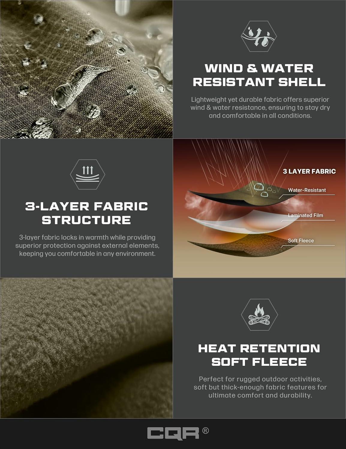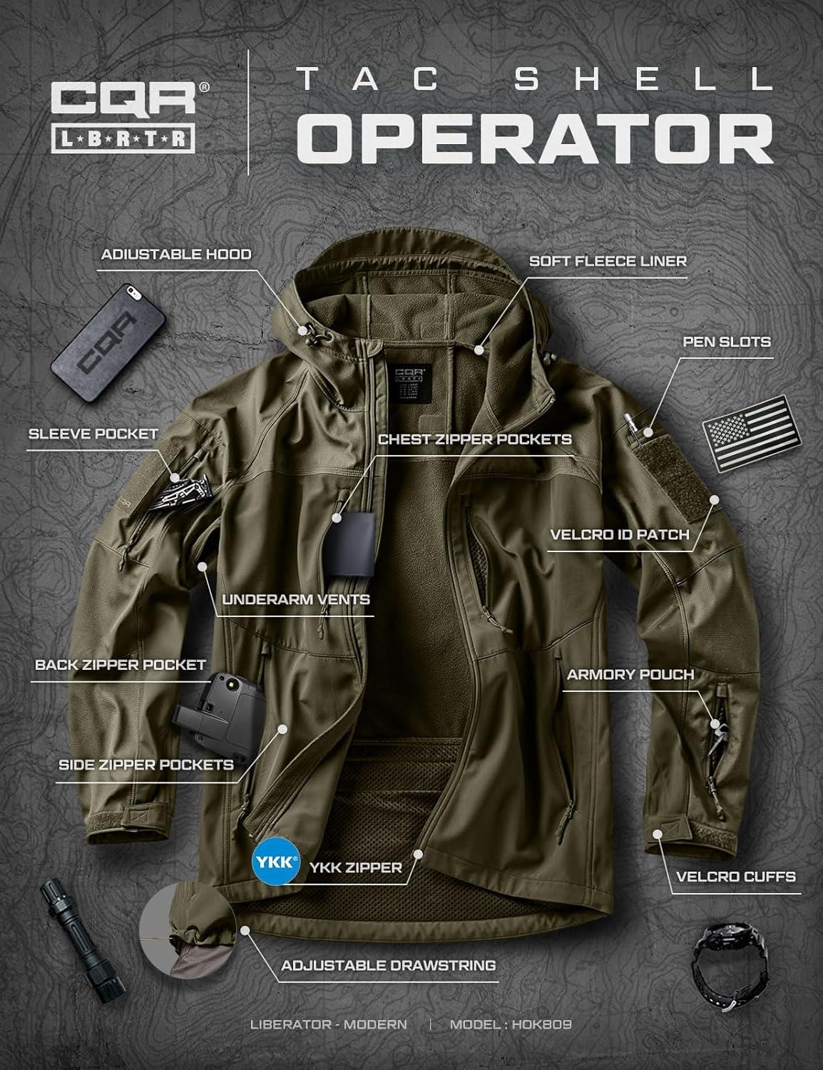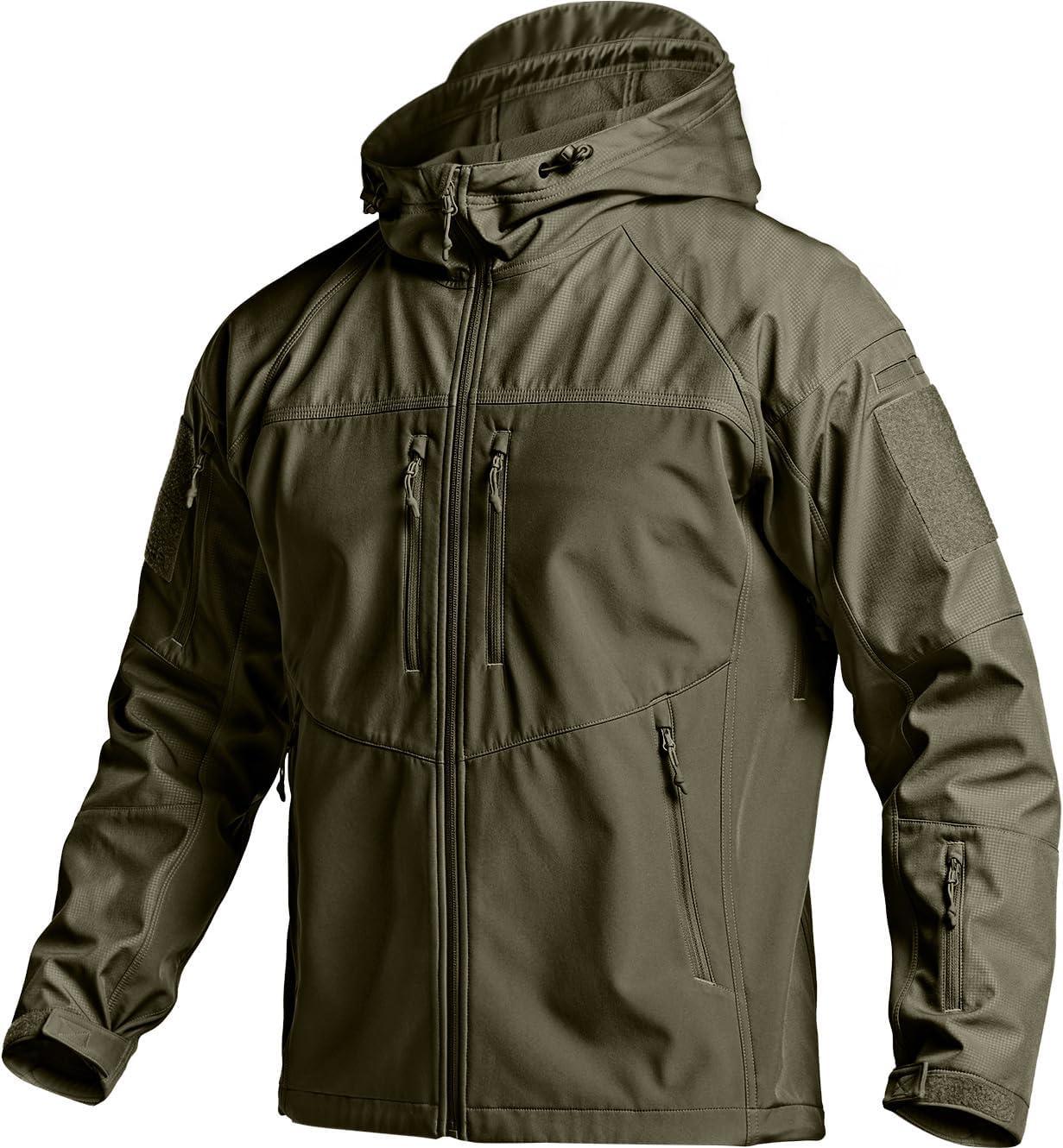 CQR Men’s Hooded Tactical Softshell Jacket, Water Resistant Fleece Lined Hoodie, Winter Outdoor Hunting Hiking Rain Wind(Modern Soil Green)