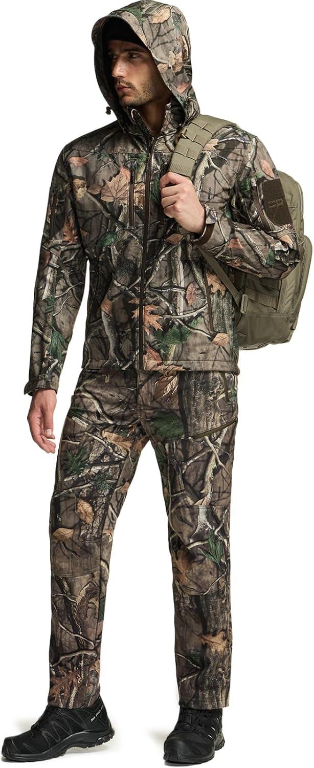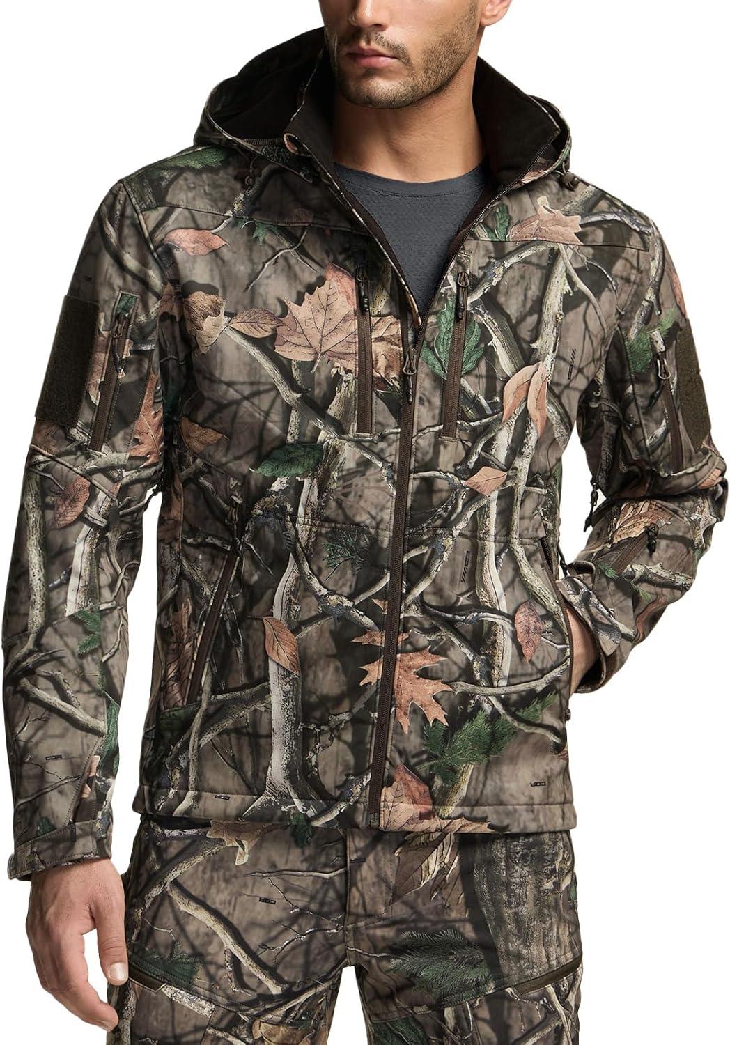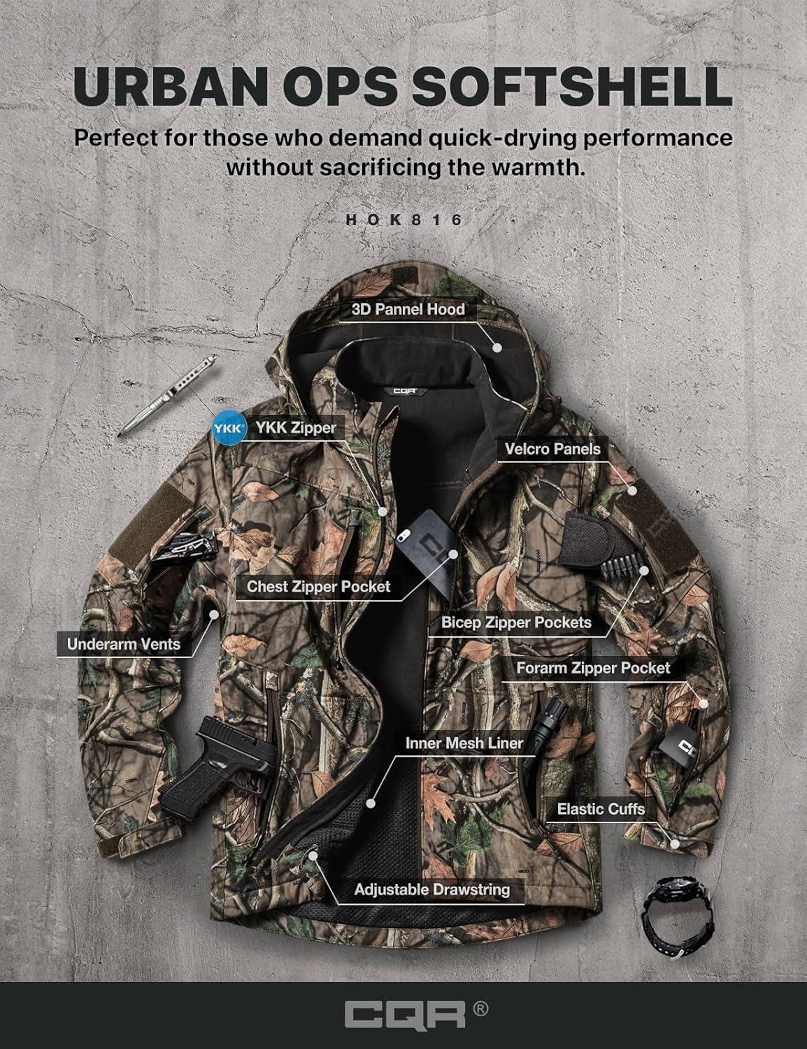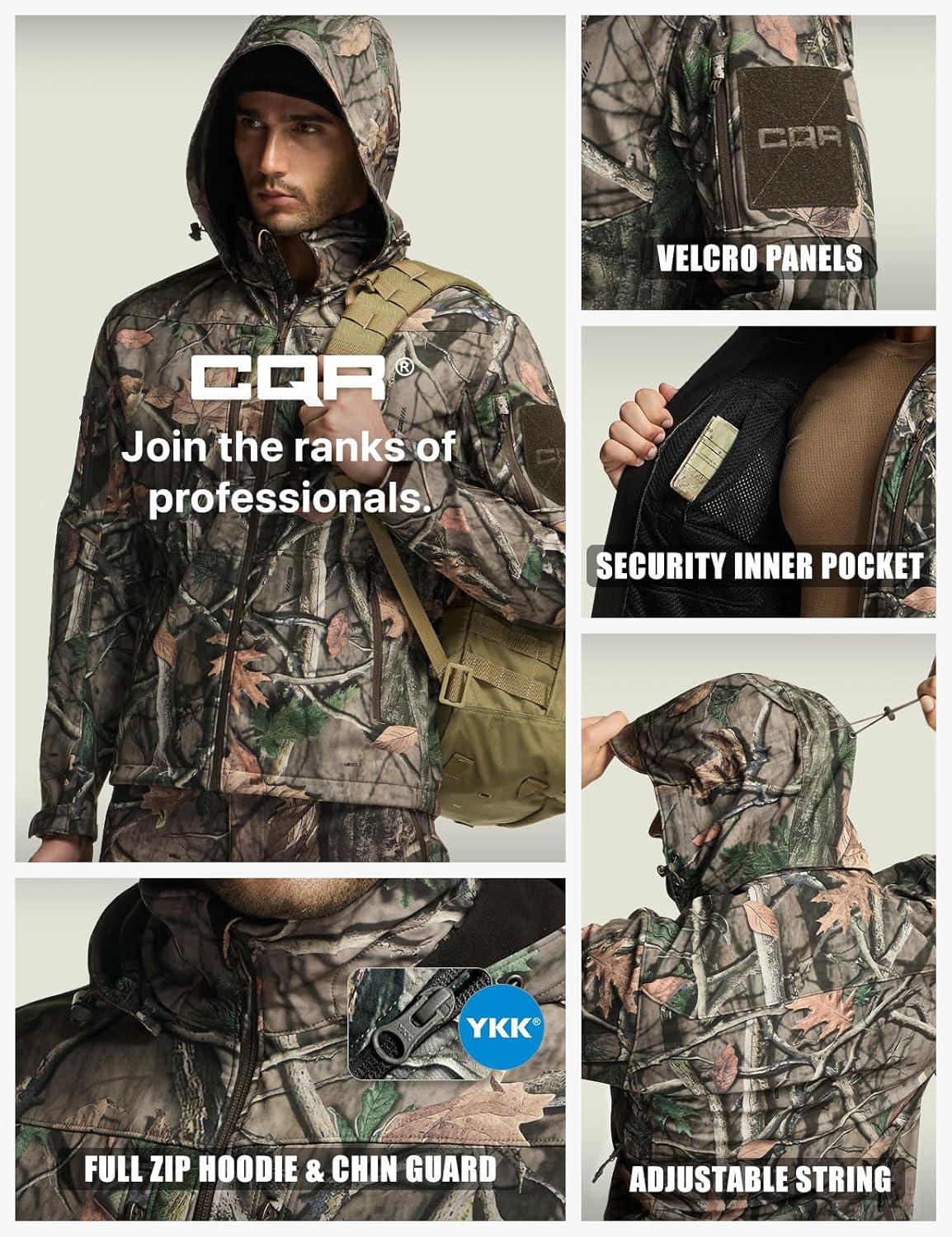 CQR Men’s Hooded Tactical Softshell Jacket, Water Resistant Fleece Lined Hoodie, Winter Outdoor Hunting Hiking Rain Wind(Operator Print Jacket Hunting Camo)