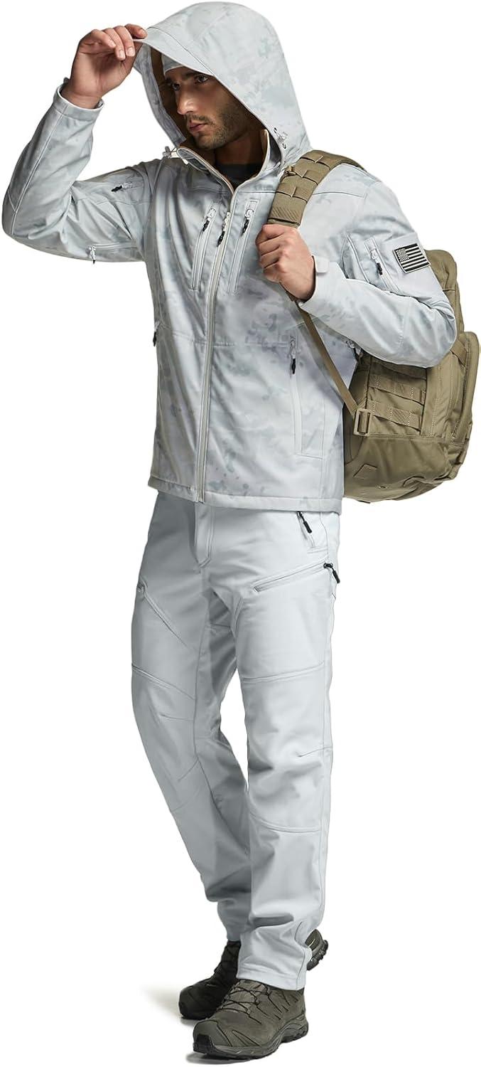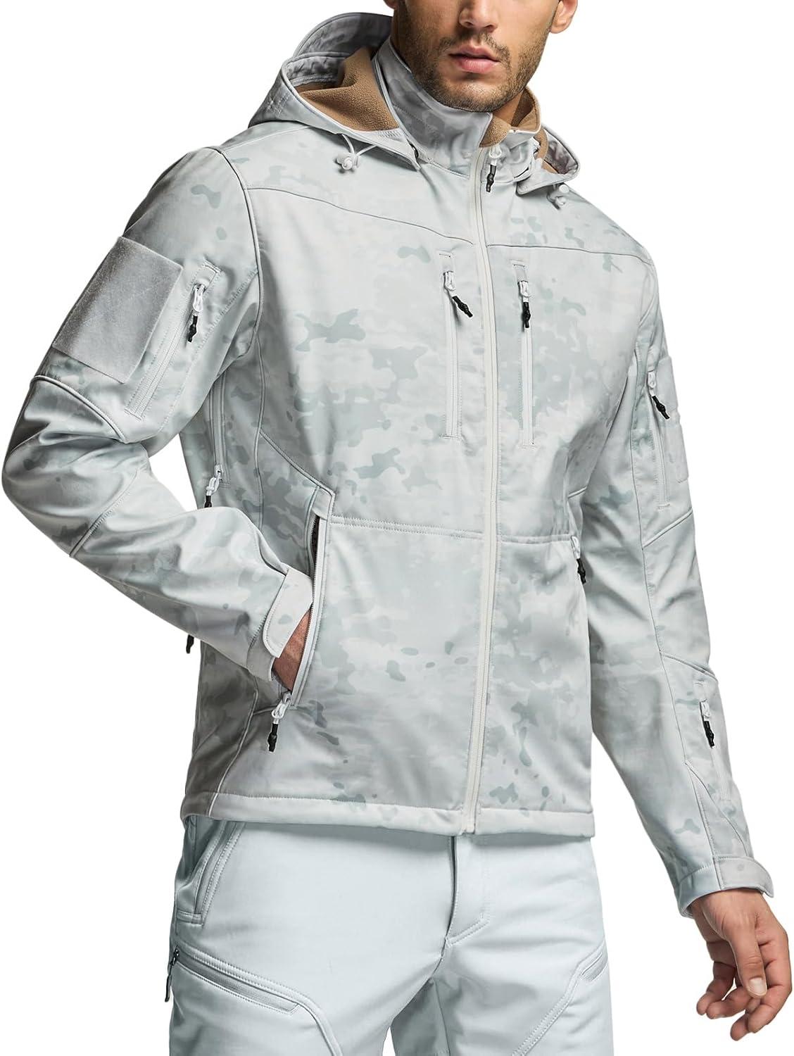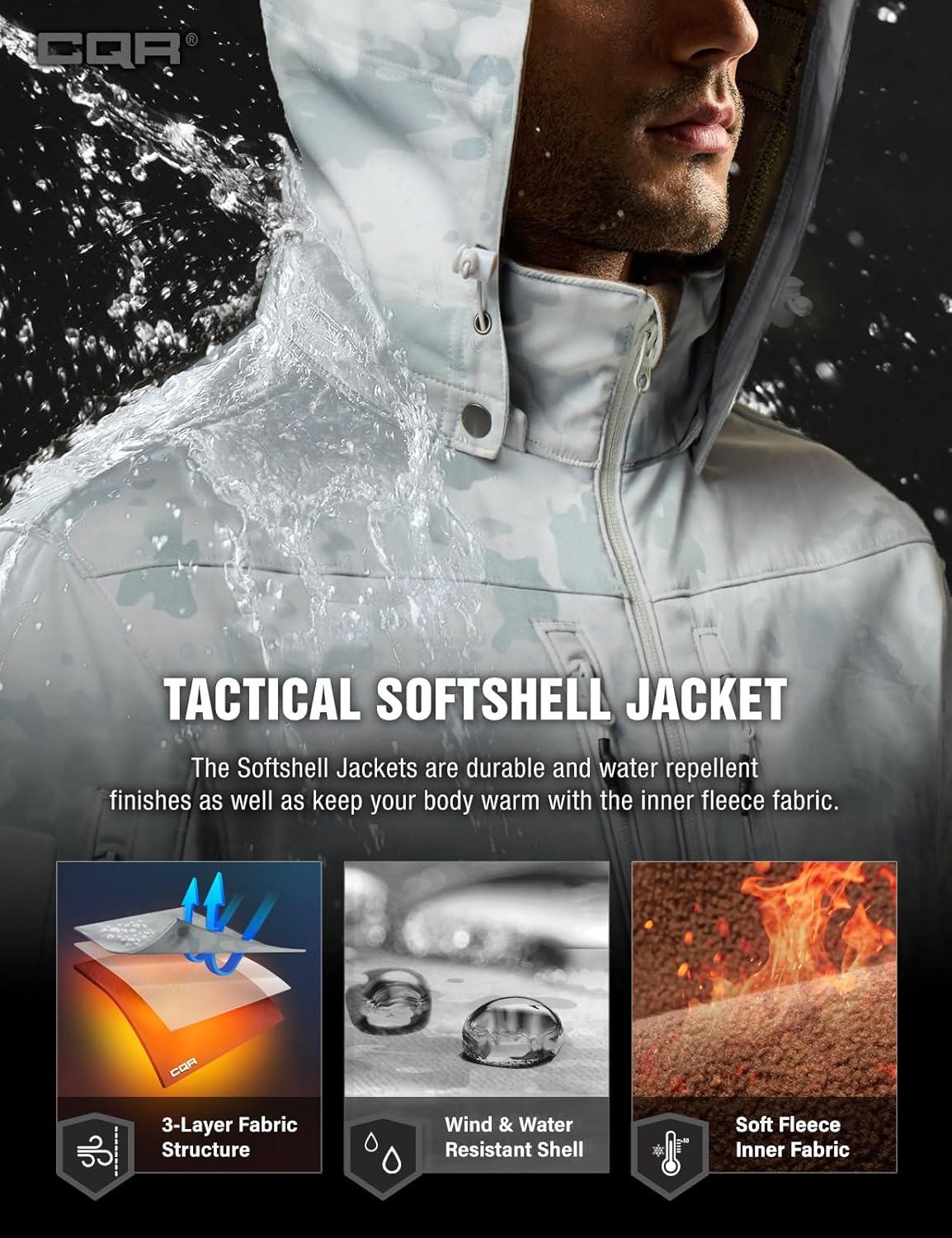 CQR Men’s Hooded Tactical Softshell Jacket, Water Resistant Fleece Lined Hoodie, Winter Outdoor Hunting Hiking Rain Wind(Operator Print Jacket Winter Utility Camo)