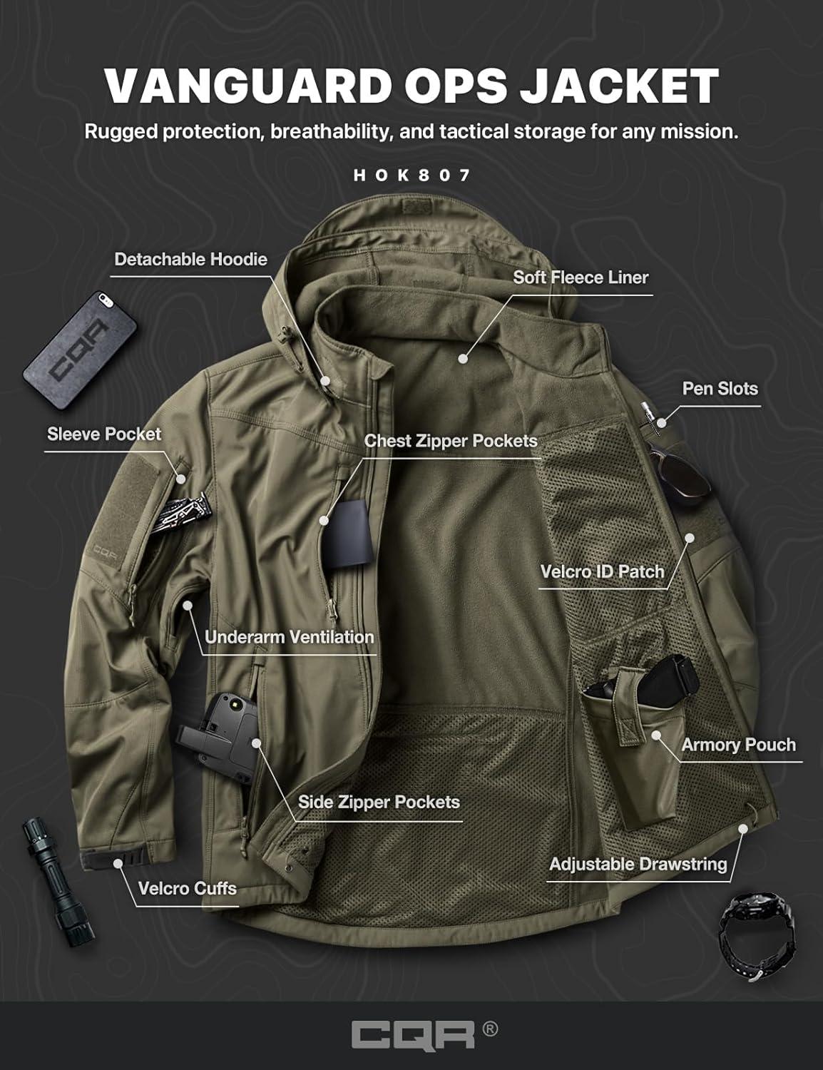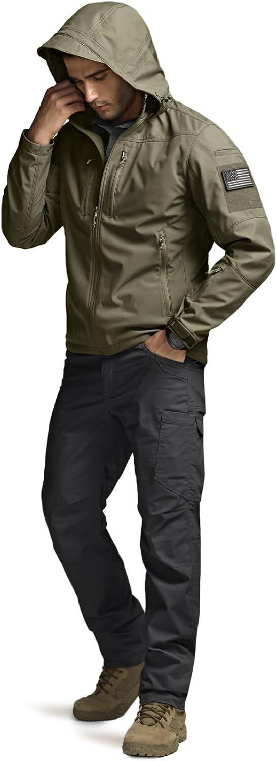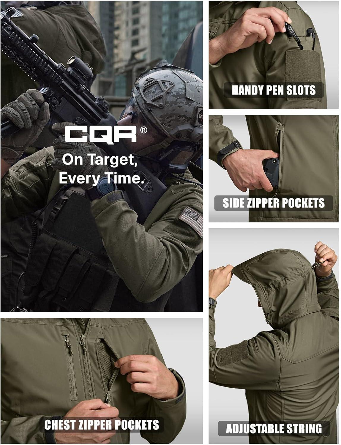 CQR Men’s Hooded Tactical Softshell Jacket, Water Resistant Fleece Lined Hoodie, Winter Outdoor Hunting Hiking Rain Wind(Operator X Pro Soil Green)