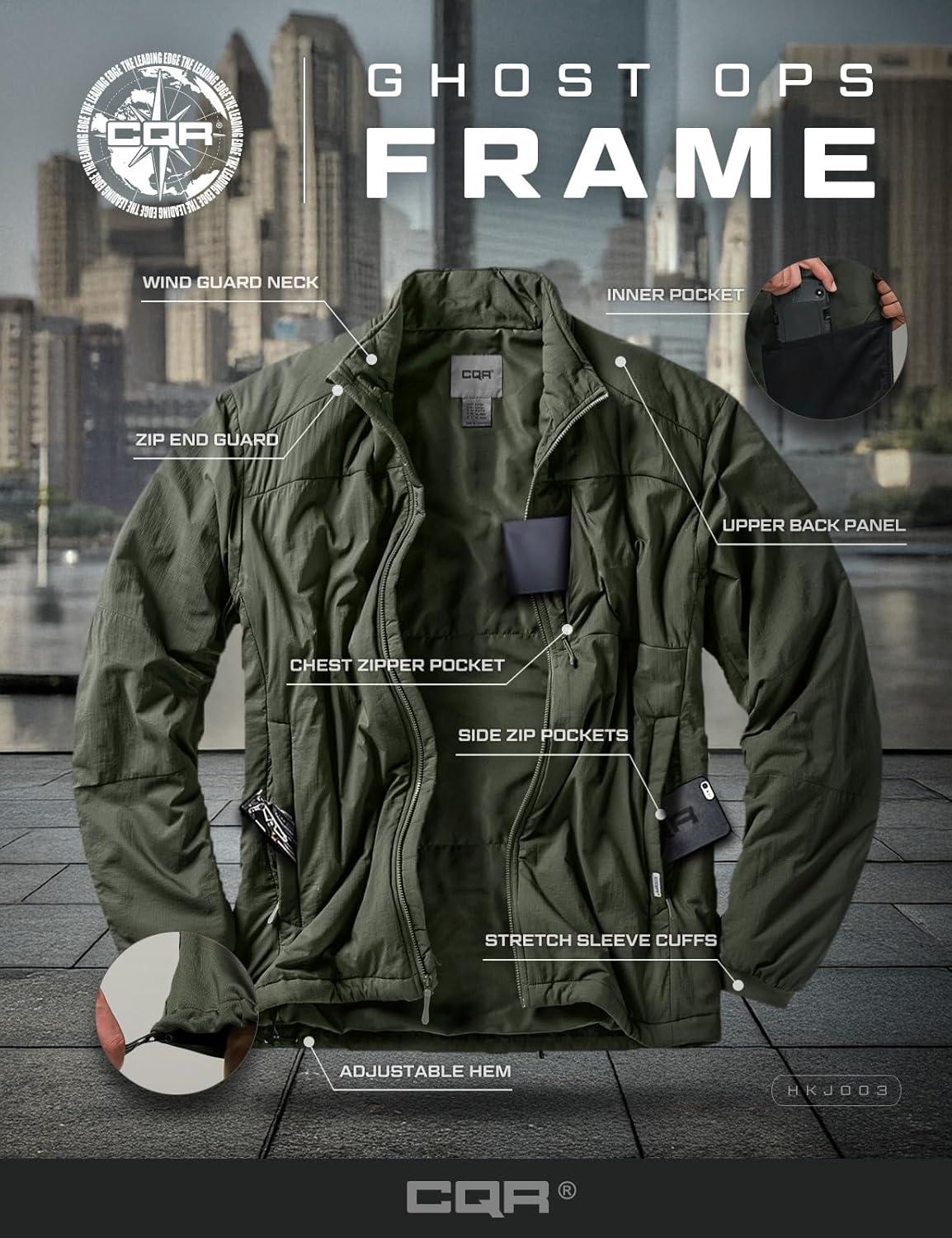CQR Men’s Lightweight Insulated Jacket, Windproof Packable Water Resistant Warm Active Coat for Hiking Work Outdoor Tactical(Frame Army Green)