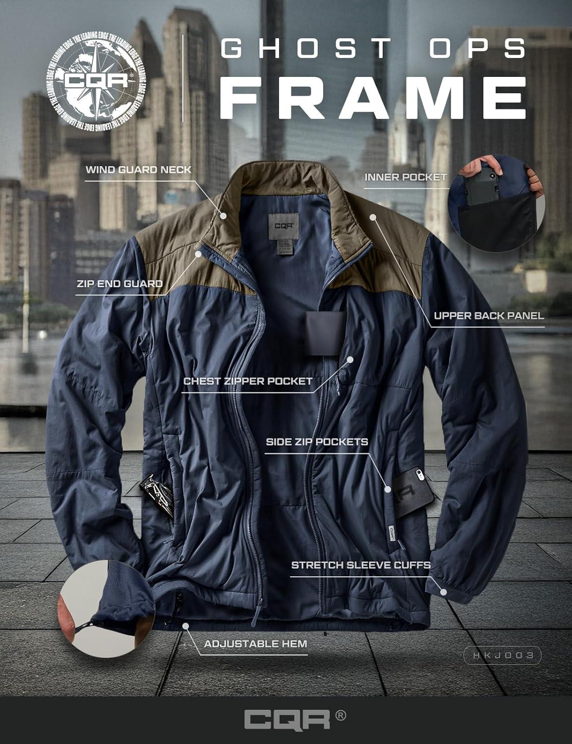 CQR Men’s Lightweight Insulated Jacket, Windproof Packable Water Resistant Warm Active Coat for Hiking Work Outdoor Tactical(Frame Tundra & Navy)