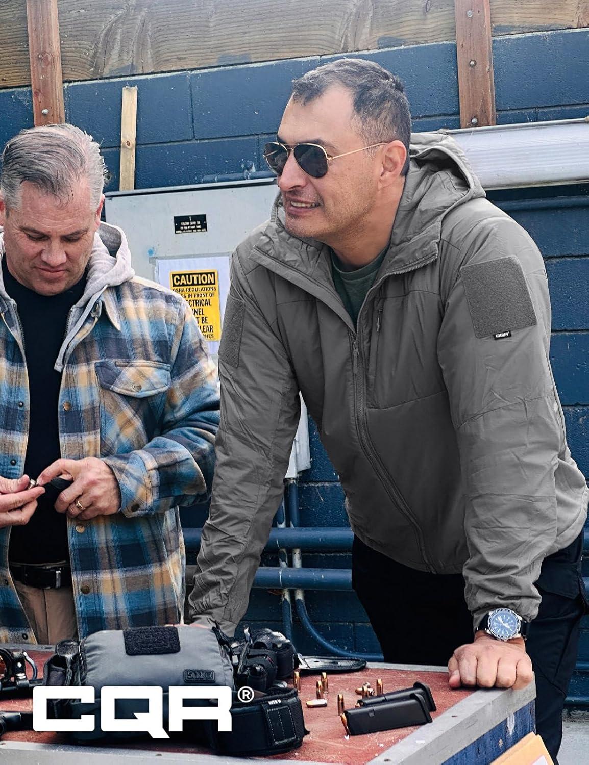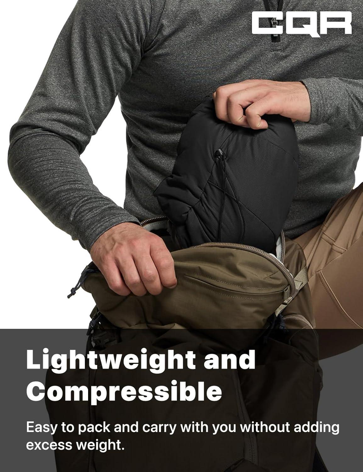 CQR Men’s Lightweight Insulated Jacket, Windproof Packable Water Resistant Warm Active Coat for Hiking Work Outdoor Tactical(Lightweight Black)