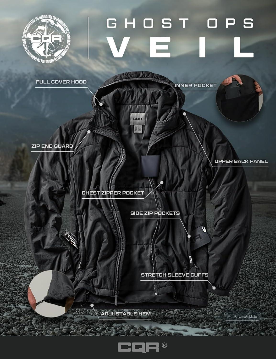 CQR Men’s Lightweight Insulated Jacket, Windproof Packable Water Resistant Warm Active Coat for Hiking Work Outdoor Tactical(Veil Navy)