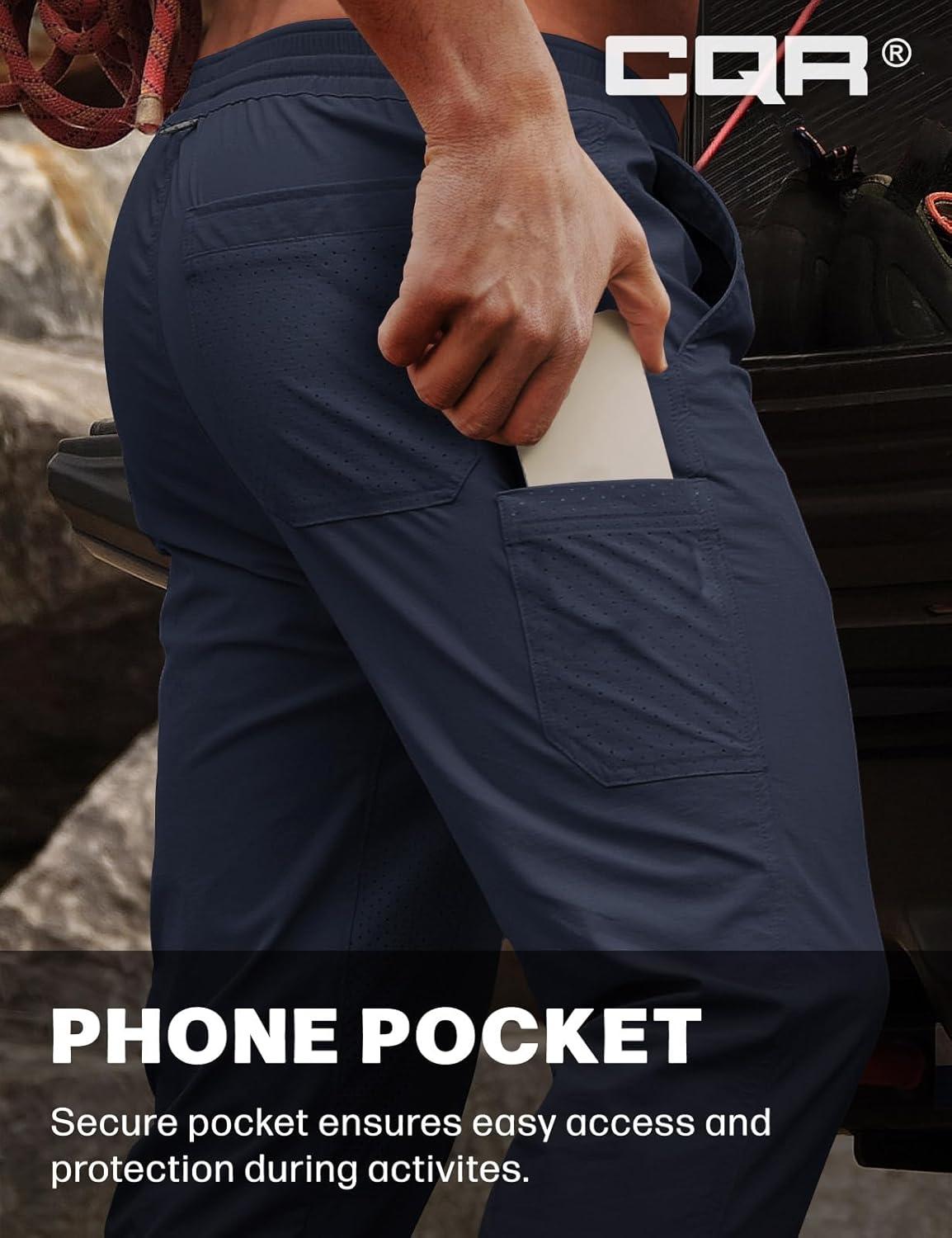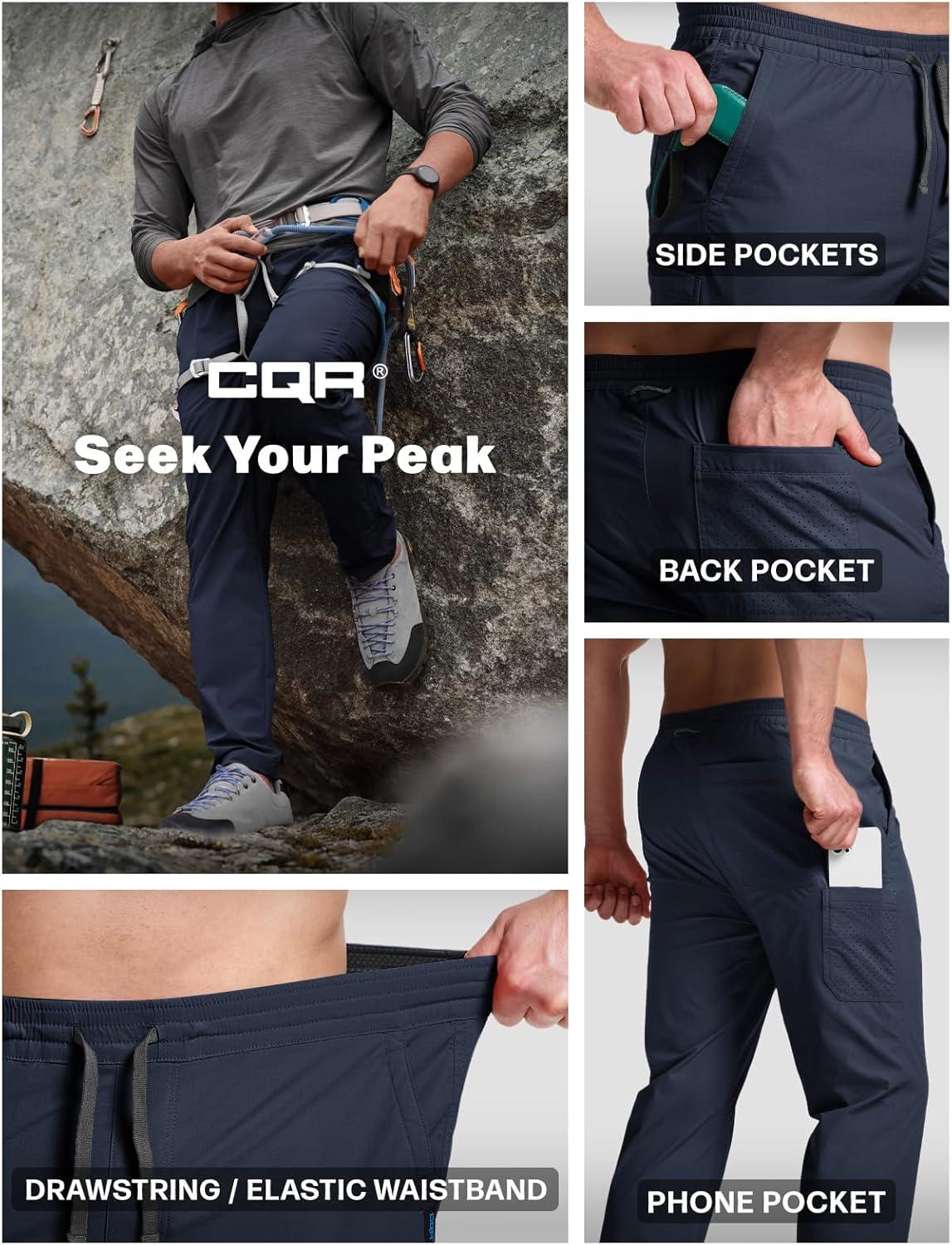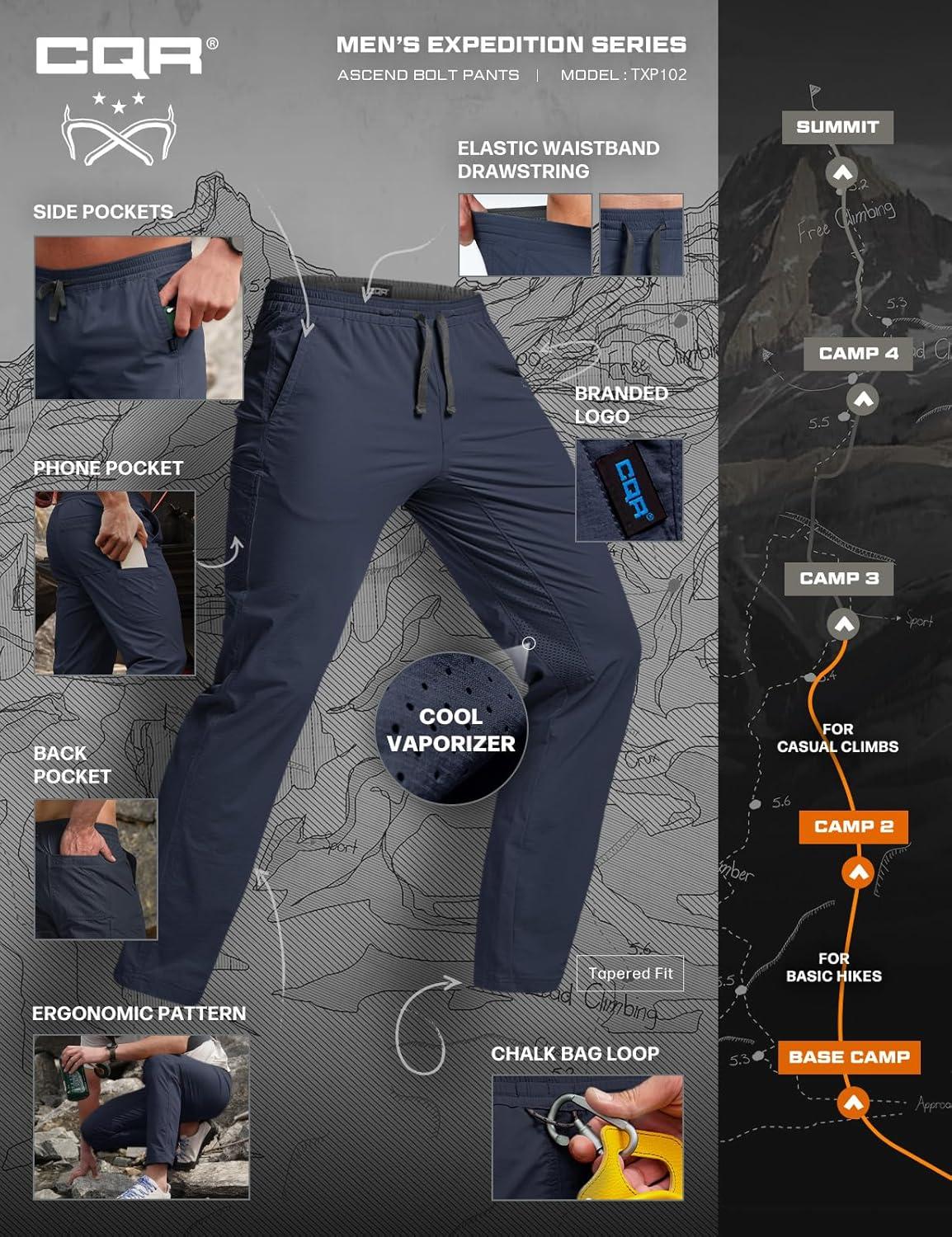 CQR Men’s Lightweight Vent Hiking Pants, Water-Resistant & Breathable Sports Outdoor Athletic Pants with Elastic Waist(Ascend Bolt Polar Navy)