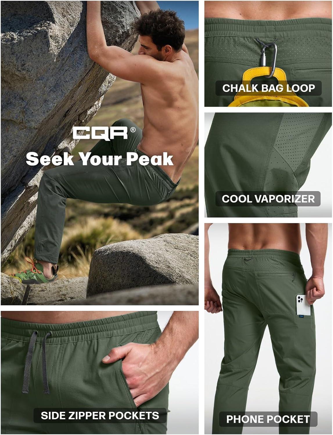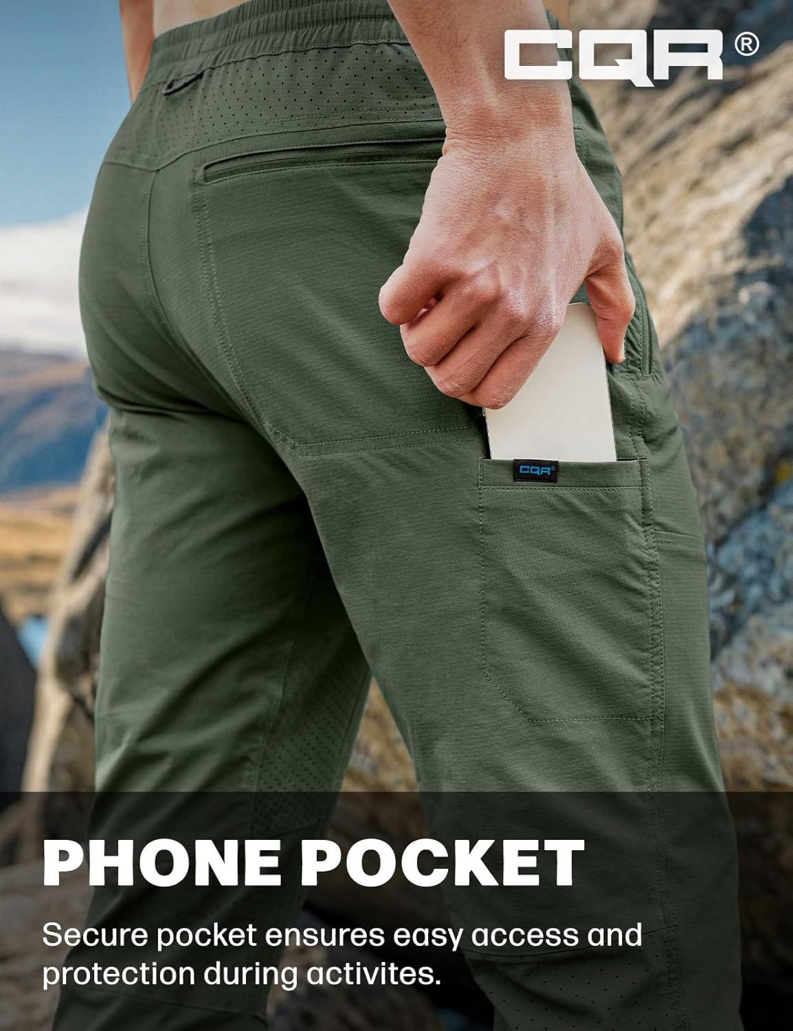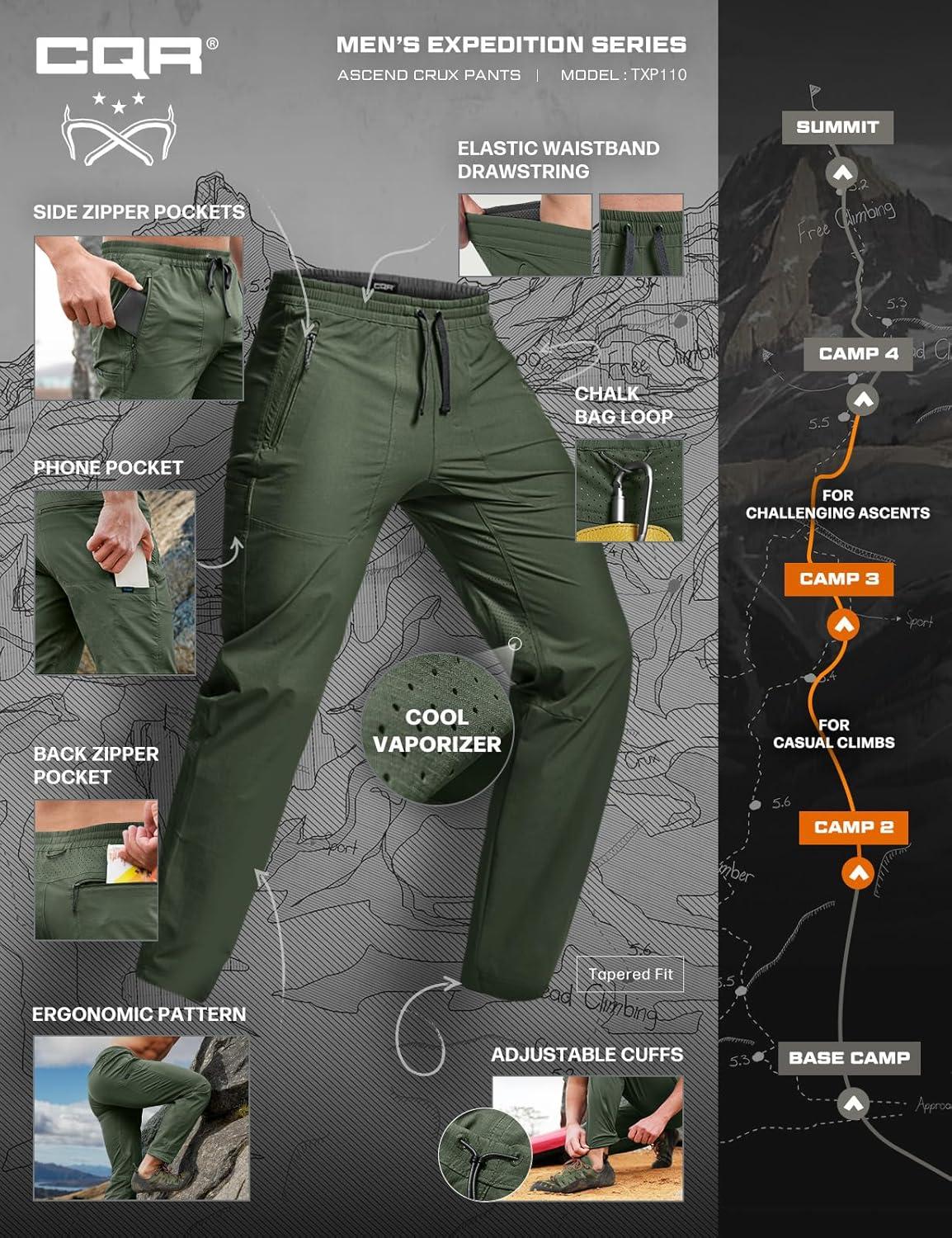 CQR Men’s Lightweight Vent Hiking Pants, Water-Resistant & Breathable Sports Outdoor Athletic Pants with Elastic Waist(Ascend Crux Lichen)