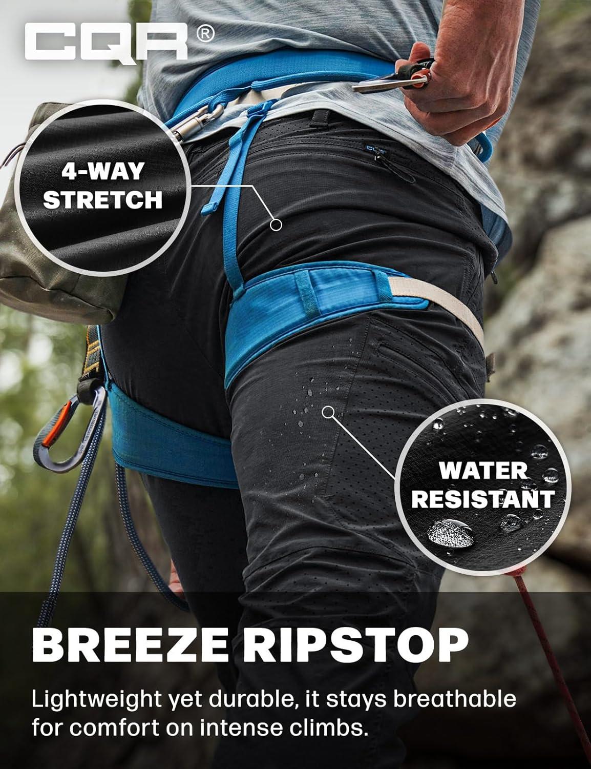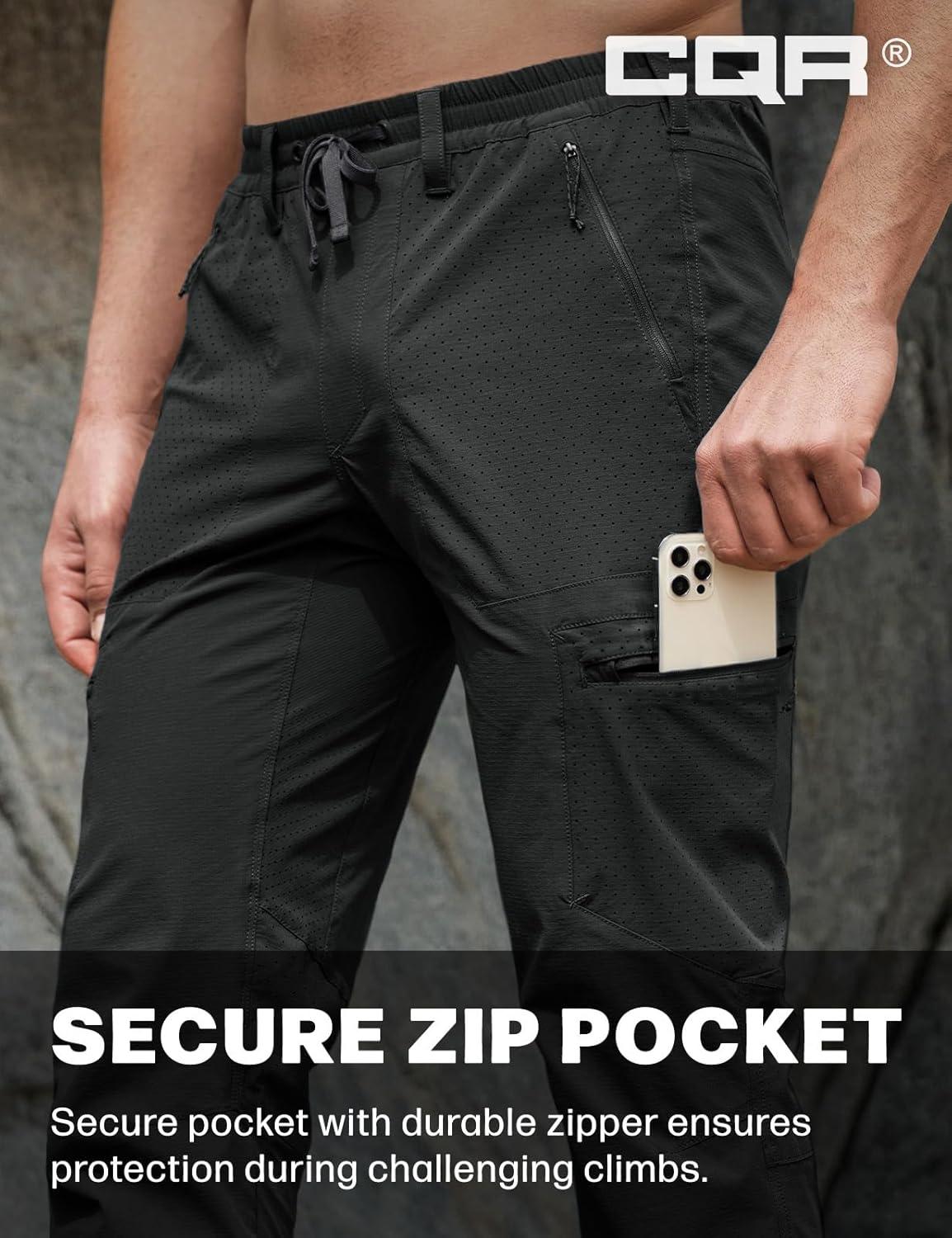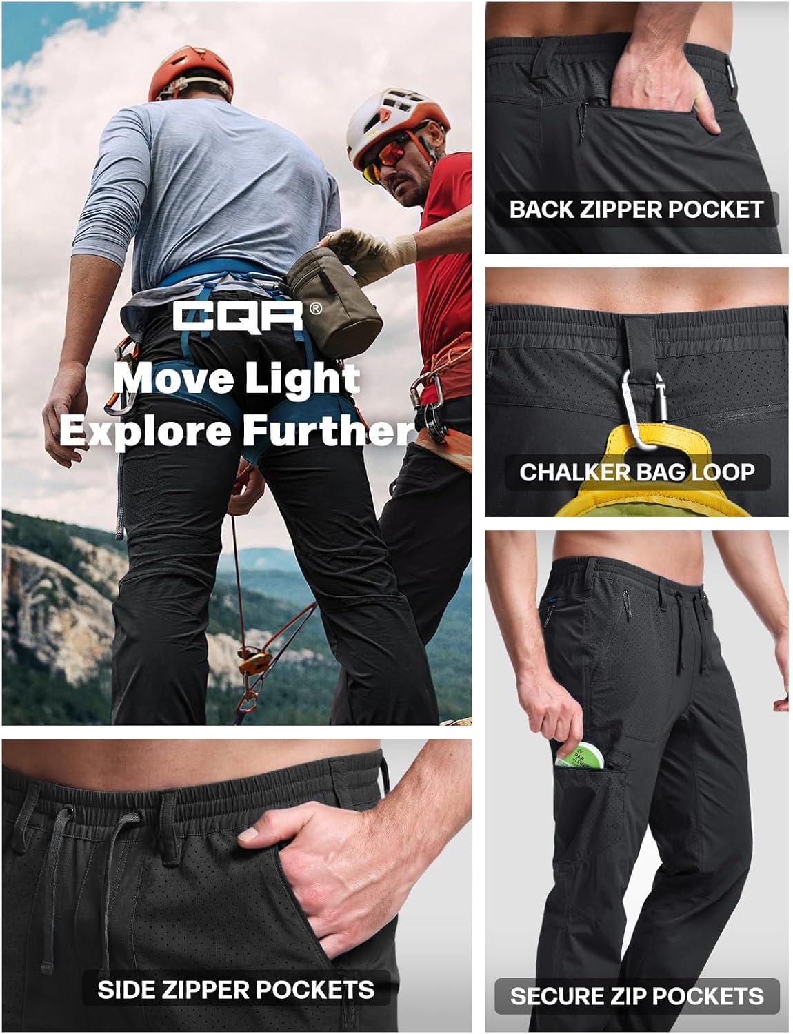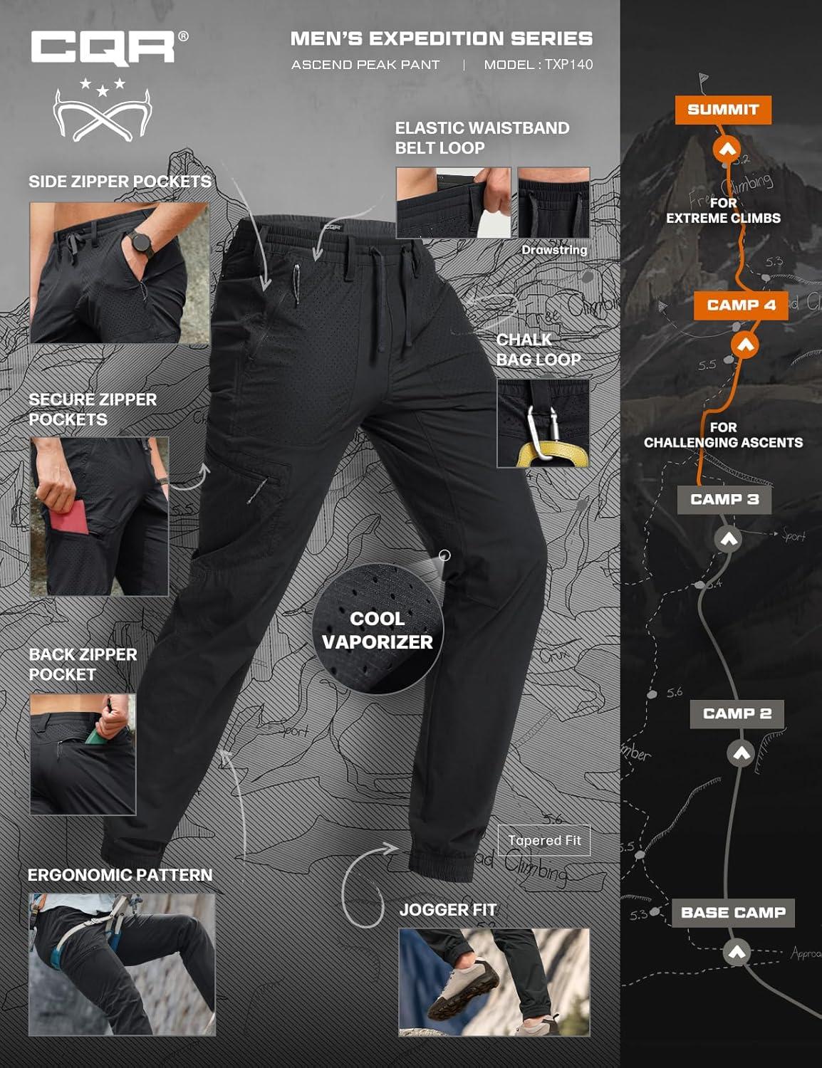 CQR Men’s Lightweight Vent Hiking Pants, Water-Resistant & Breathable Sports Outdoor Athletic Pants with Elastic Waist(Ascend Peak Black)