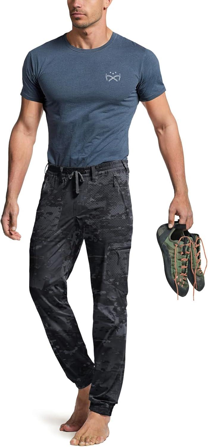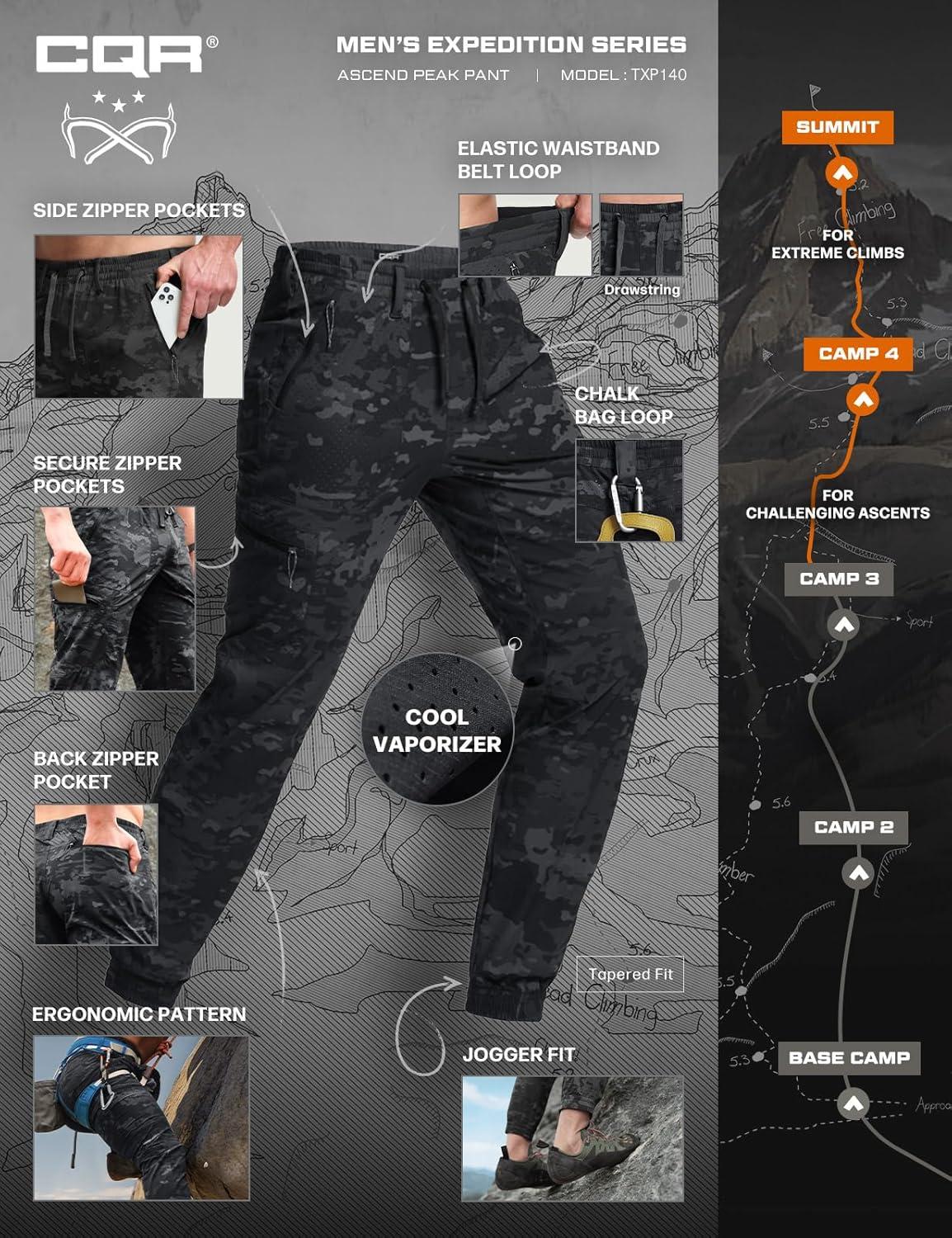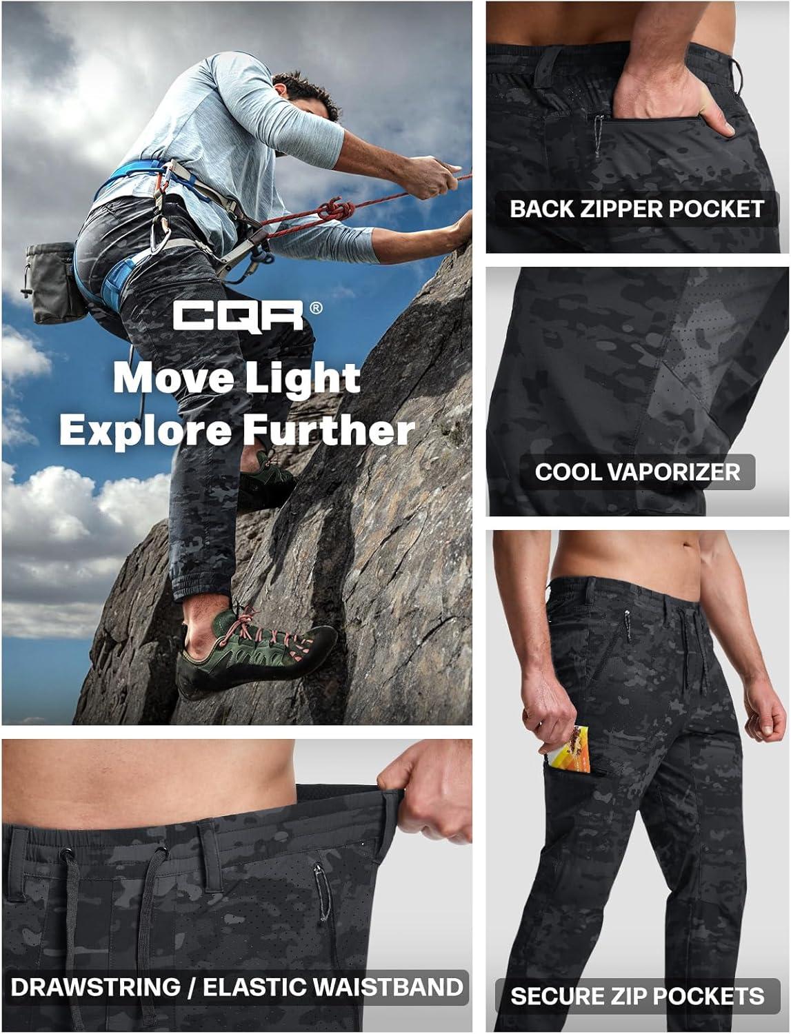 CQR Men’s Lightweight Vent Hiking Pants, Water-Resistant & Breathable Sports Outdoor Athletic Pants with Elastic Waist(Ascend Peak Utility Camo Black)