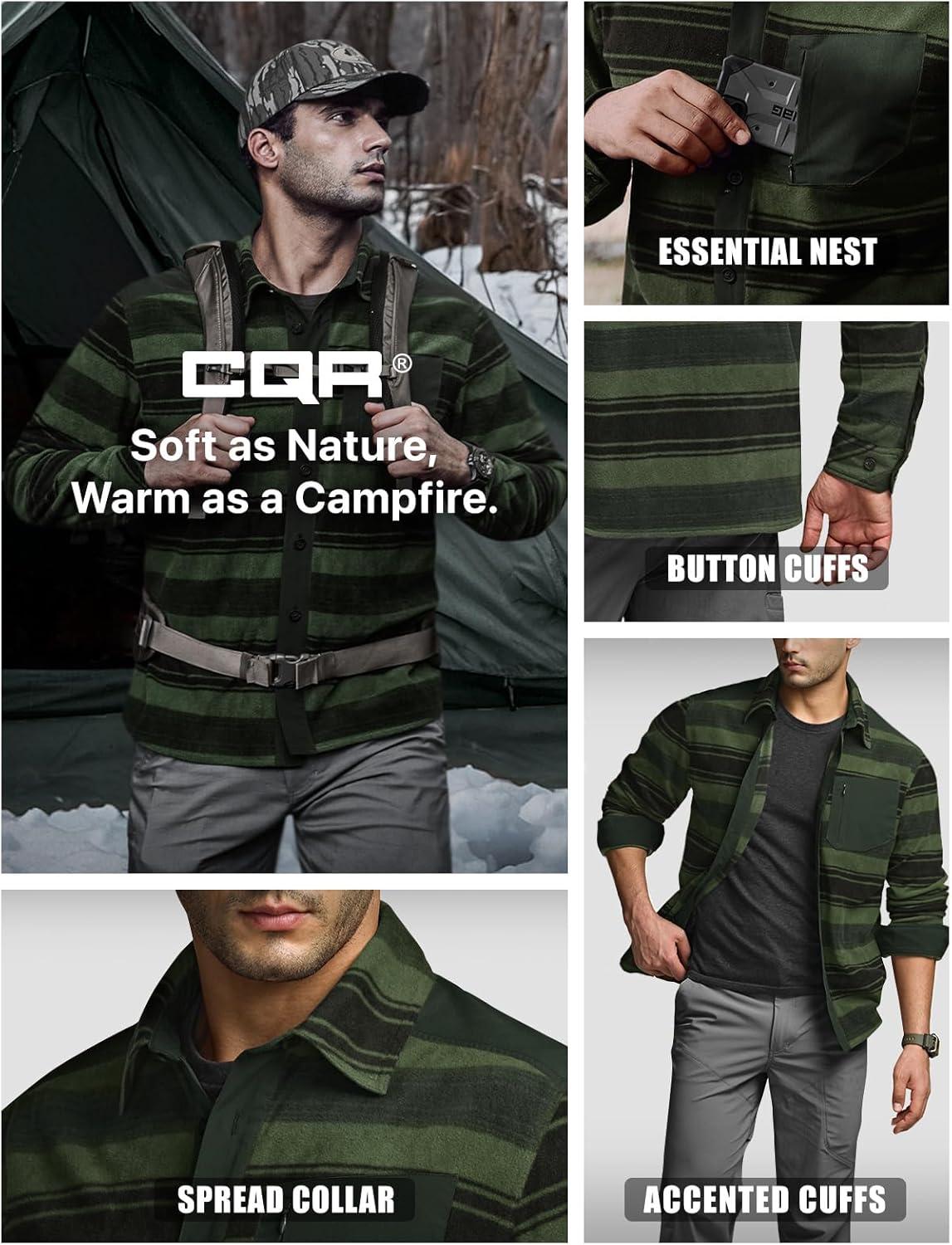 CQR Men’s Long Sleeve Heavyweight Fleece Shirts, Plaid Button Up Shirt, Warm Outdoor Casual Shirt with Pockets(Bush Blend Wild Forest)