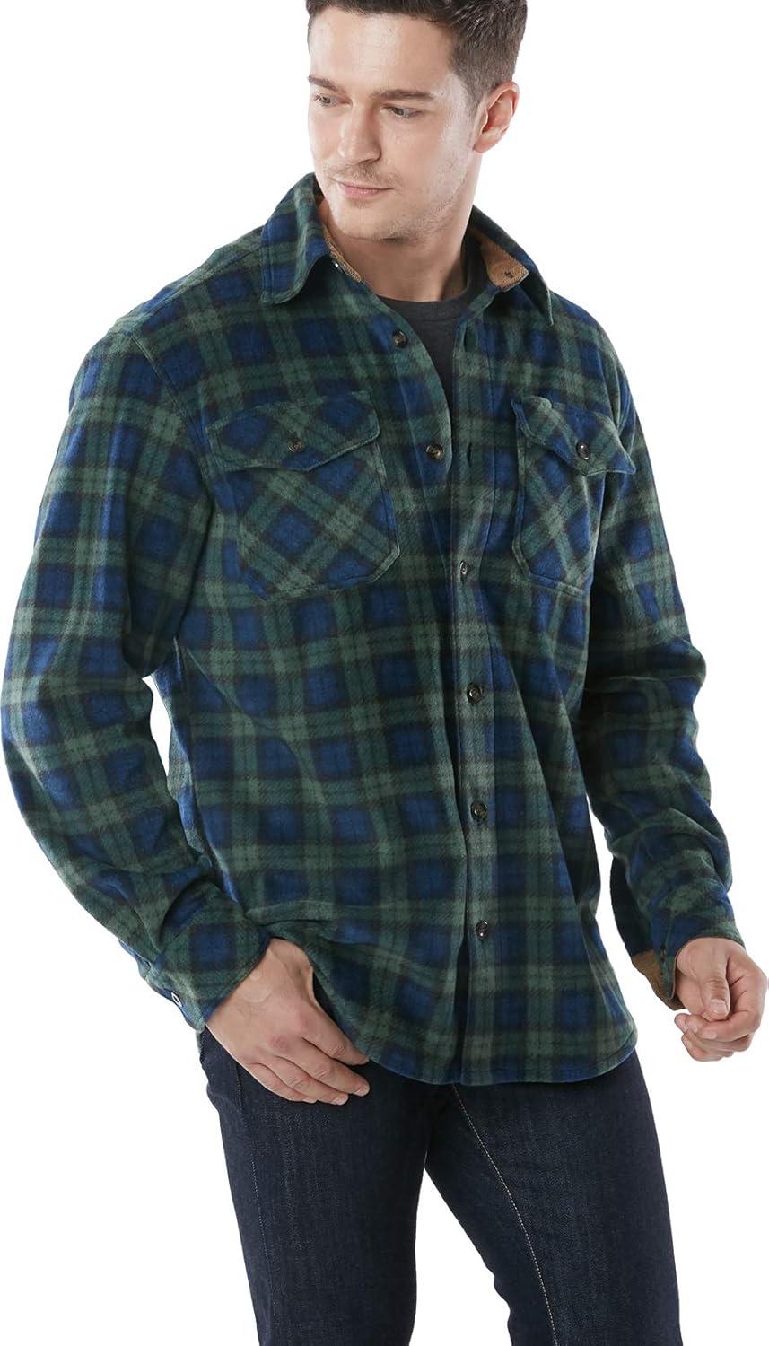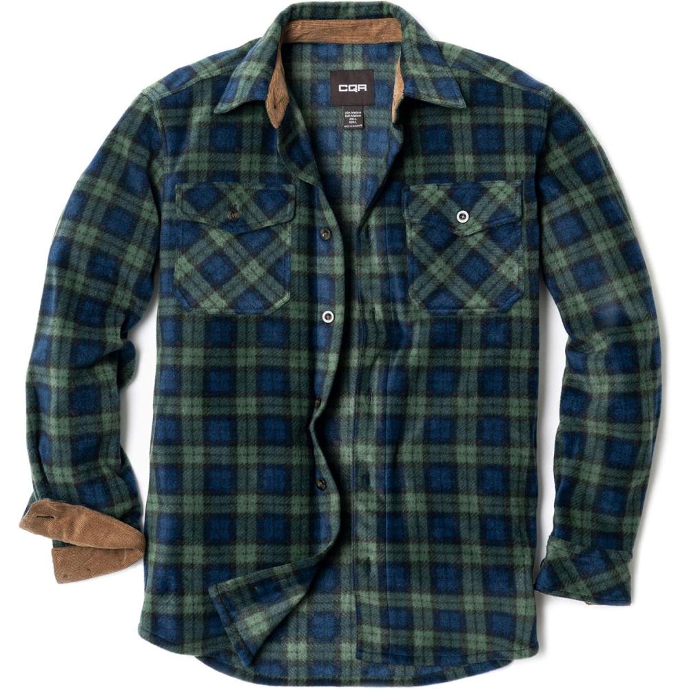 CQR Men’s Long Sleeve Heavyweight Fleece Shirts, Plaid Button Up Shirt, Warm Outdoor Casual Shirt with Pockets(Polar Fleece Green)