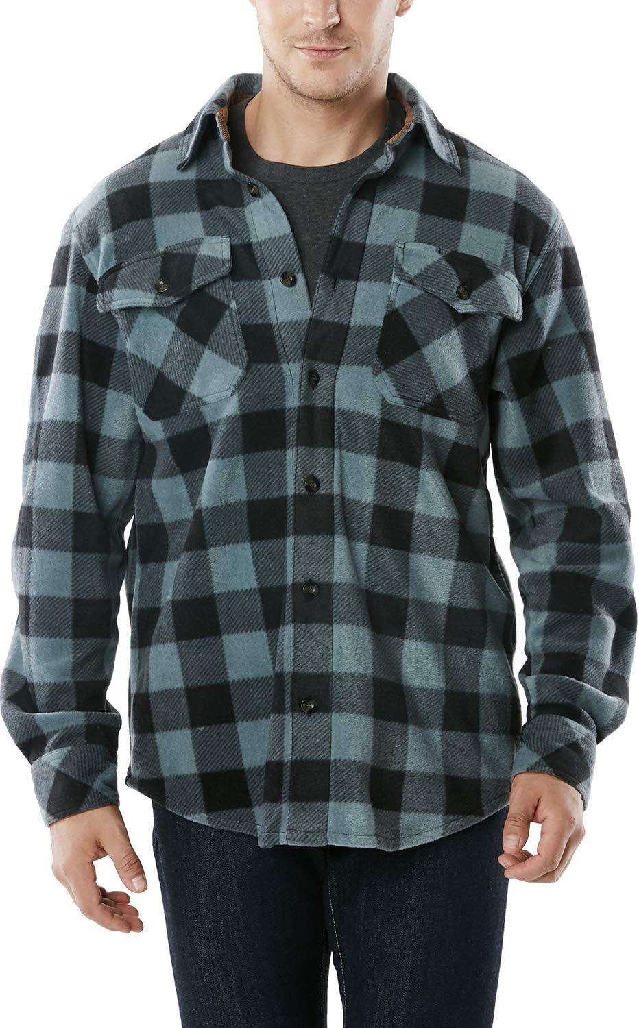 CQR Men’s Long Sleeve Heavyweight Fleece Shirts, Plaid Button Up Shirt, Warm Outdoor Casual Shirt with Pockets(Polar Fleece Grey)